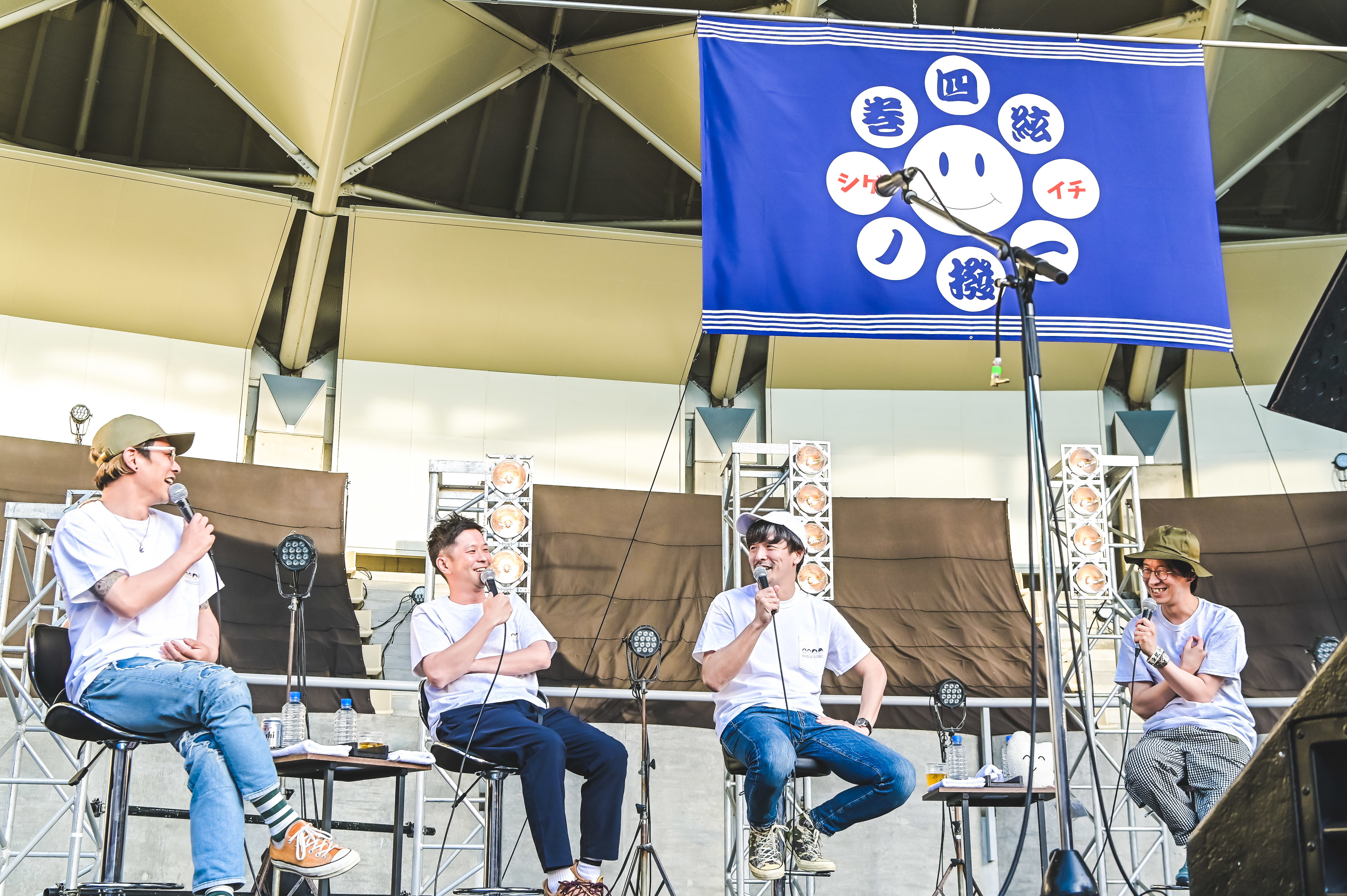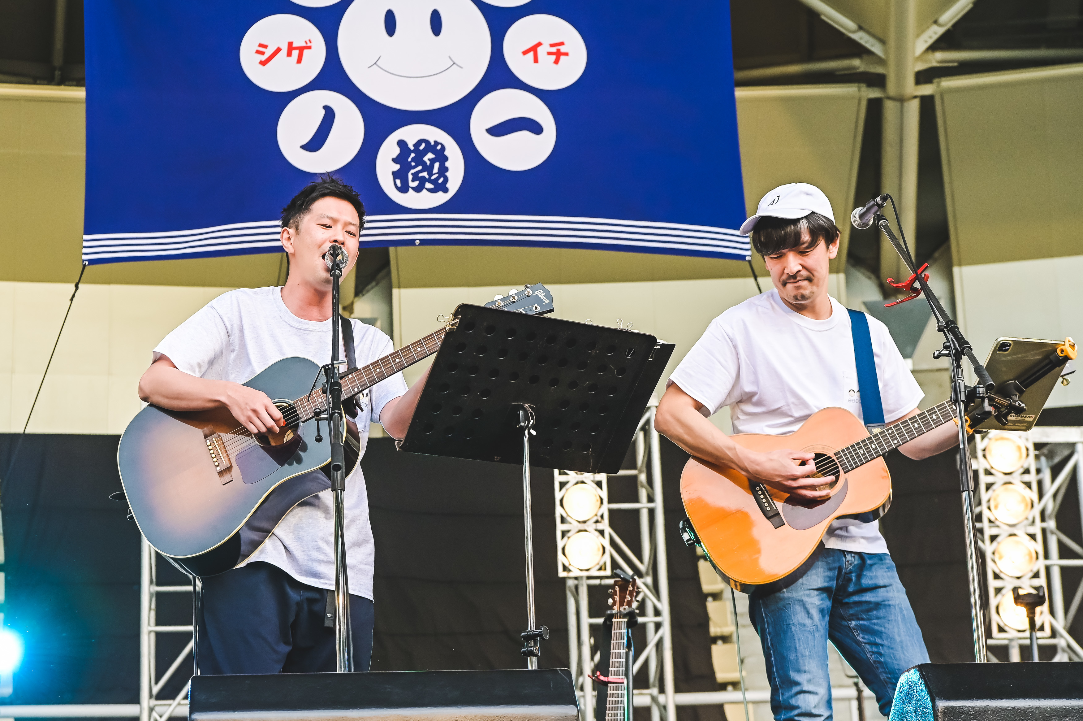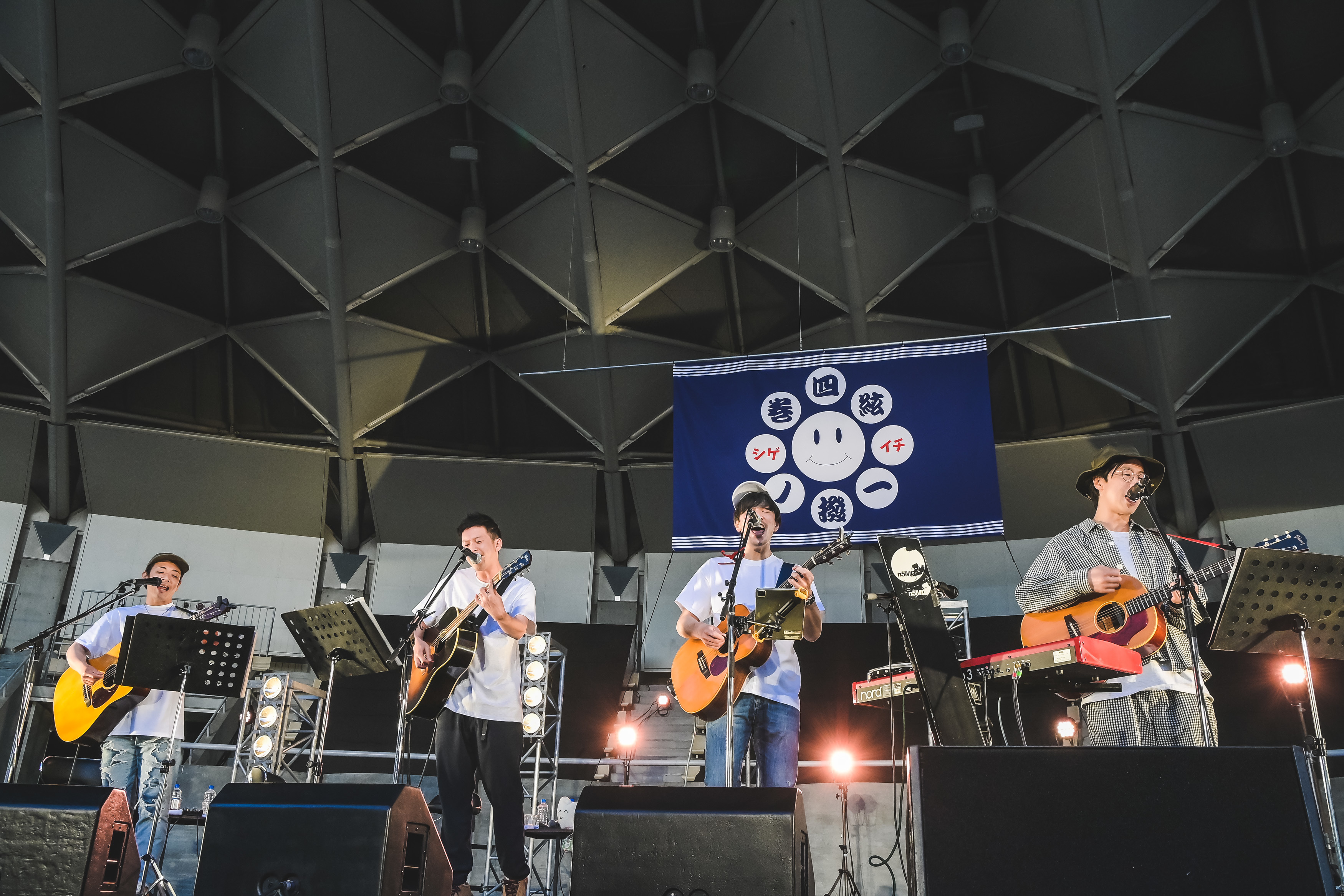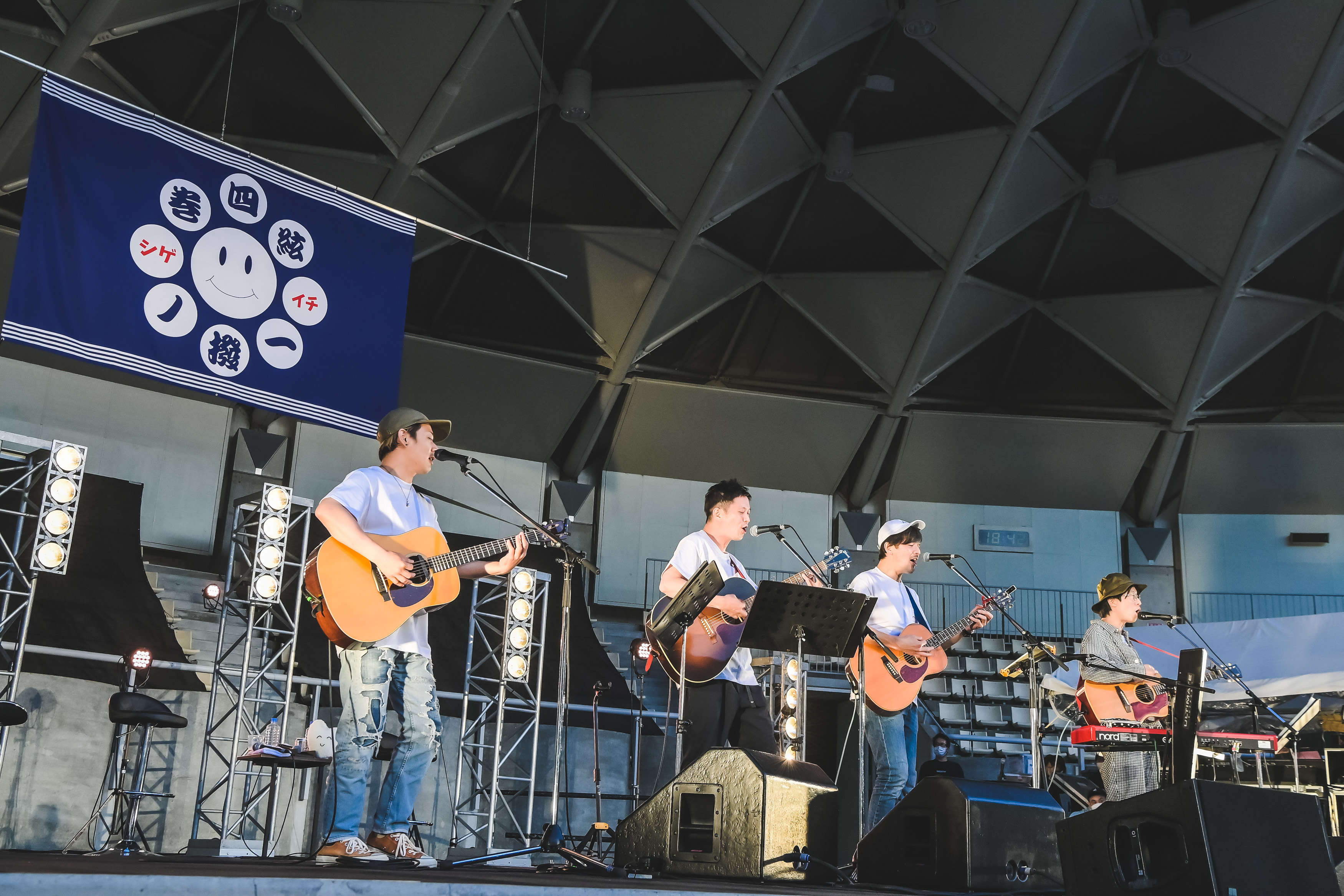 『四絃一撥ノ巻』(通称:シゲイチ)は、2017年に東京・TSUTAYA O-EASTで開催されたアコースティックライブ『虎渓三笑ノ巻』を発端に、2018年から毎年開催されてきた人気イベント。ギターとともに全国各地を気ままに行脚してきた4人がついに大阪へ初上陸した。関西公演は、2019年の神戸以来となり、さらにシゲイチ初の野外開催とあって、眩い新緑に包まれた服部緑地野外音楽堂はお祭りムードに。