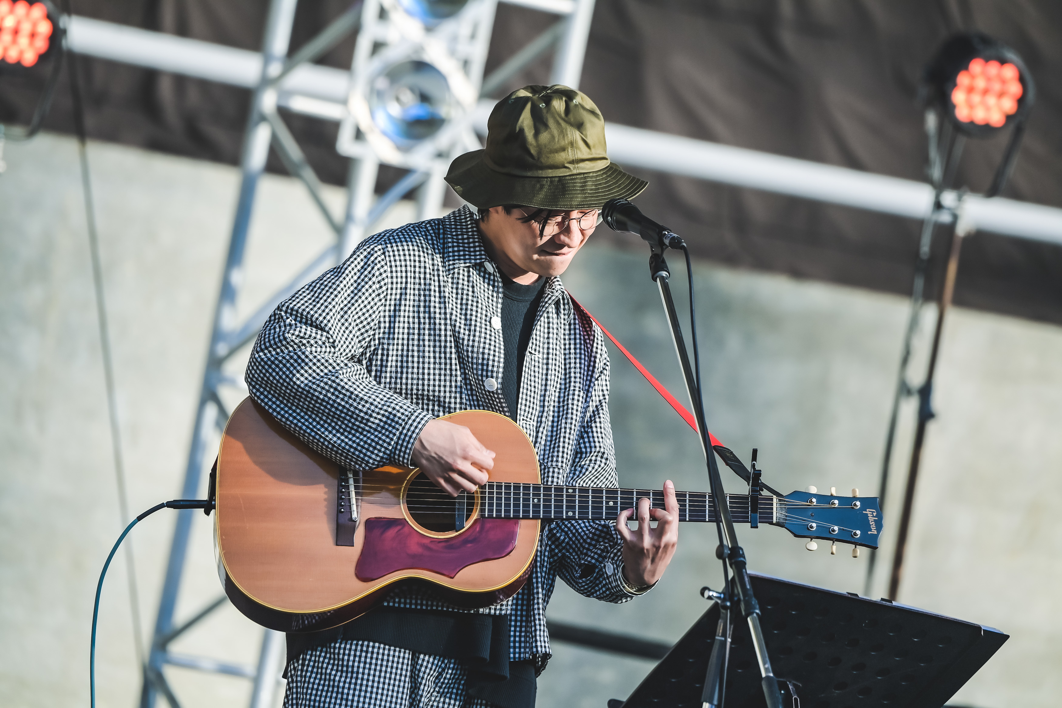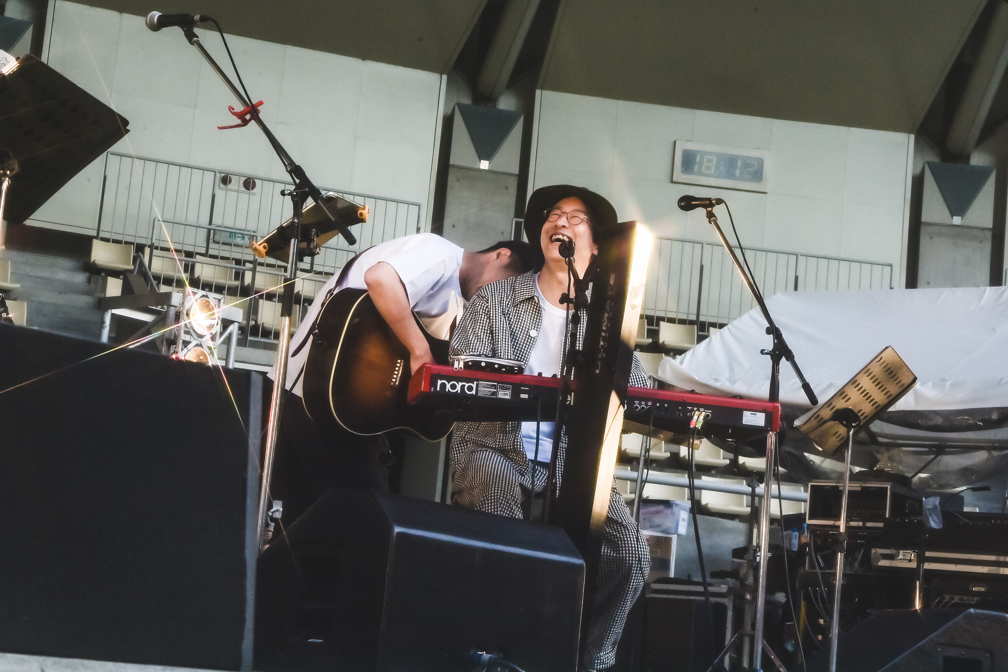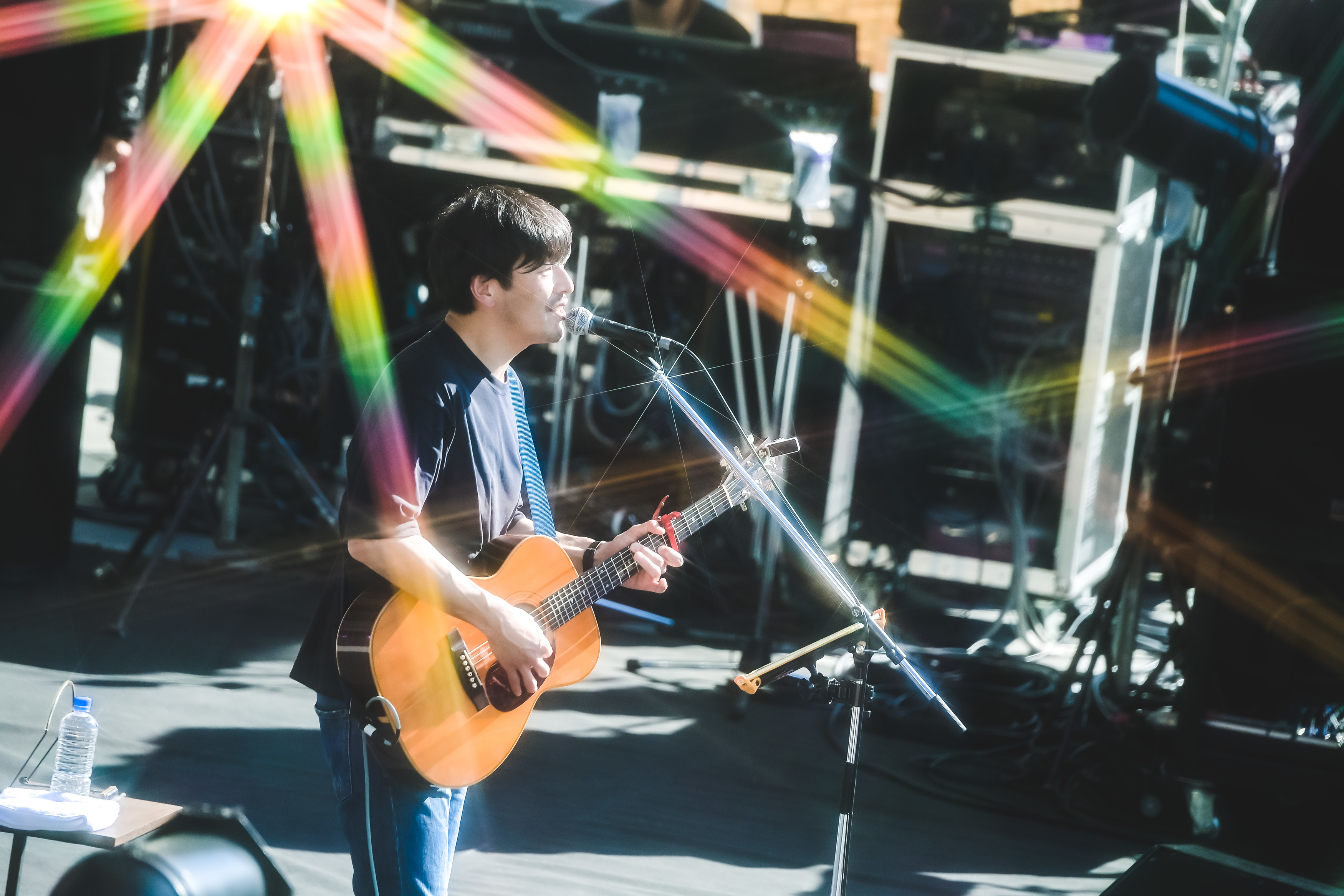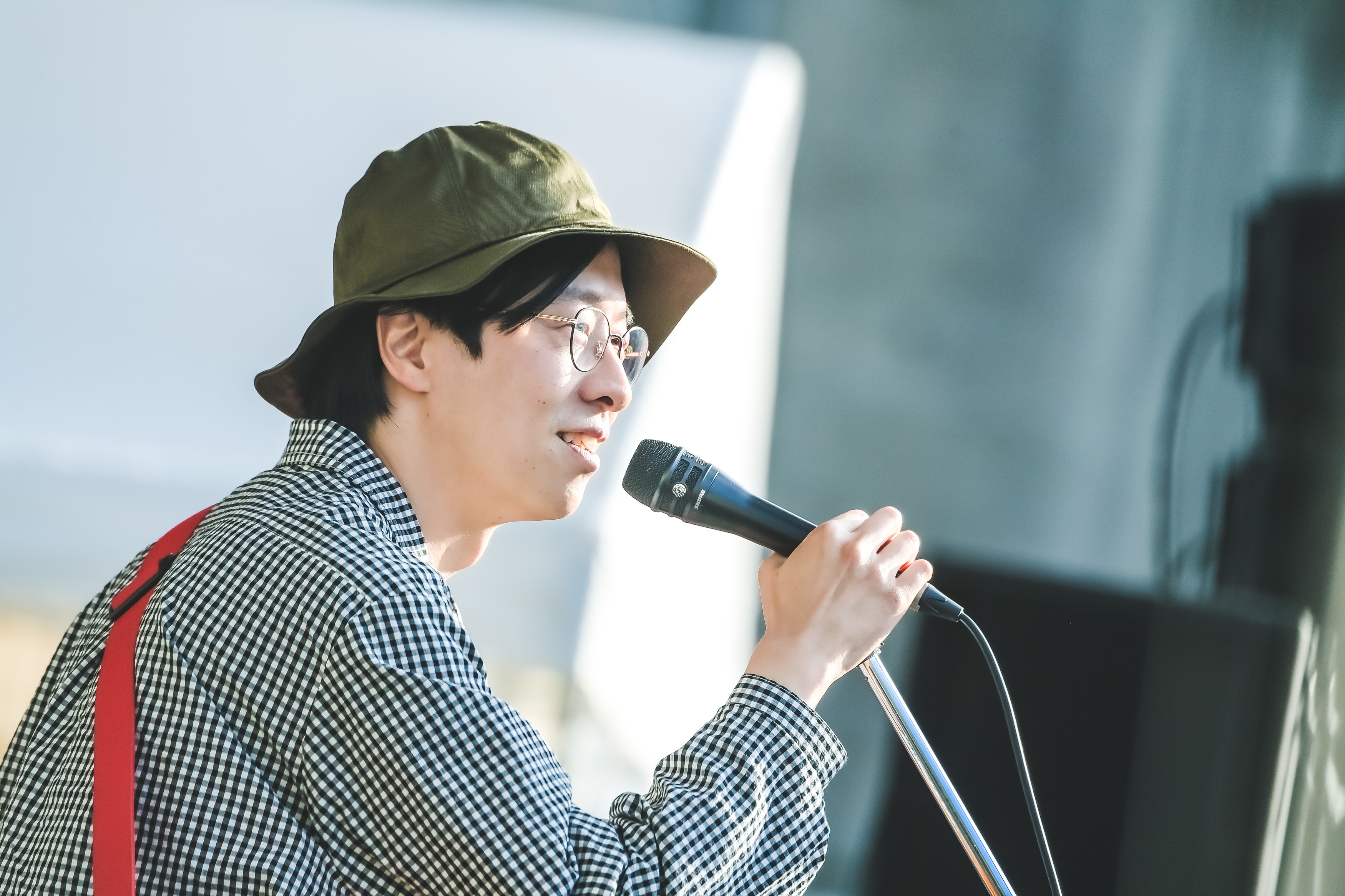 the band apartの1stシングルに収録されている「disappearing man」日本語セルフカバーなど、音源化されていないレアなナンバーも交えつつ、MC中に鳴くカラスにまでツッコみ、終始爆笑をかっさらう。そんなお喋りの面白さと繊細なギターの音色・甘い美声のギャップに頭が追い付かない。喋りすぎによる遅延で残り時間に焦りながらも、最後はソロ曲の「希望」でビシっときめた。