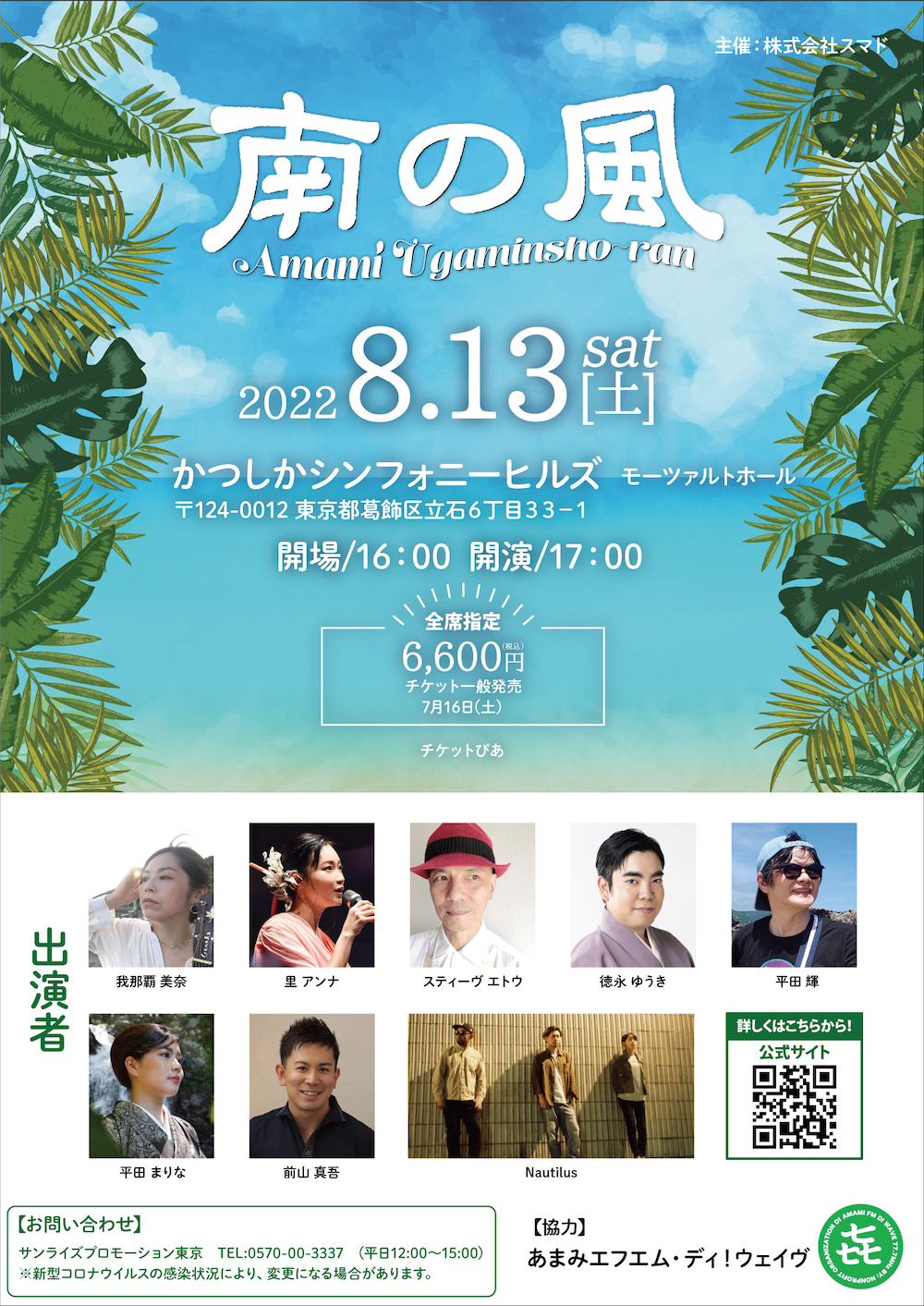 2022年8月13日(土)に東京・かつしかシンフォニーヒルズで、音楽イベント『南の風~AMAMI Ugaminsho〜ran〜』が開催される。
