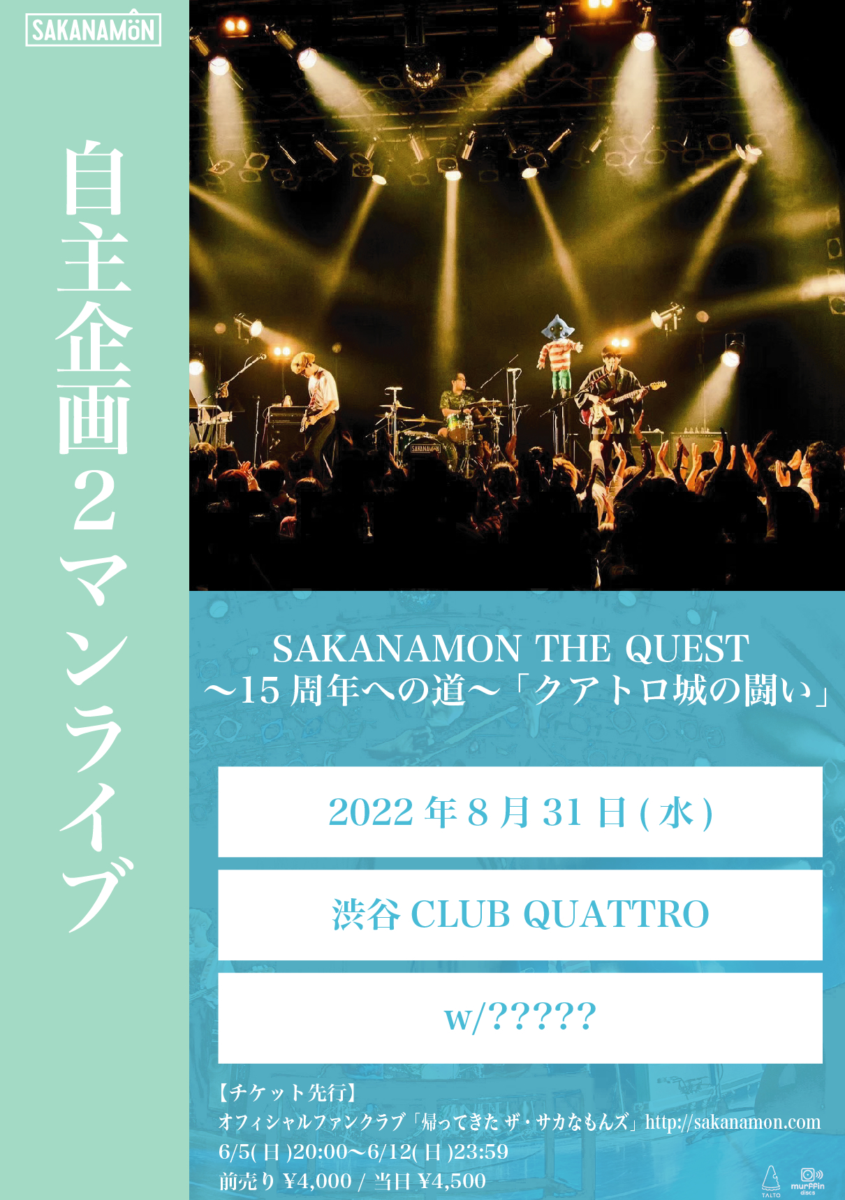 今年11月に結成15周年を向かえるSAKANAMONが8月31日(水)に、渋谷CLUB QUATTROにて自主企画2マンライブ『SAKANAMON THE QUEST 〜15周年への道〜 「クアトロ城の闘い」』を開催する。