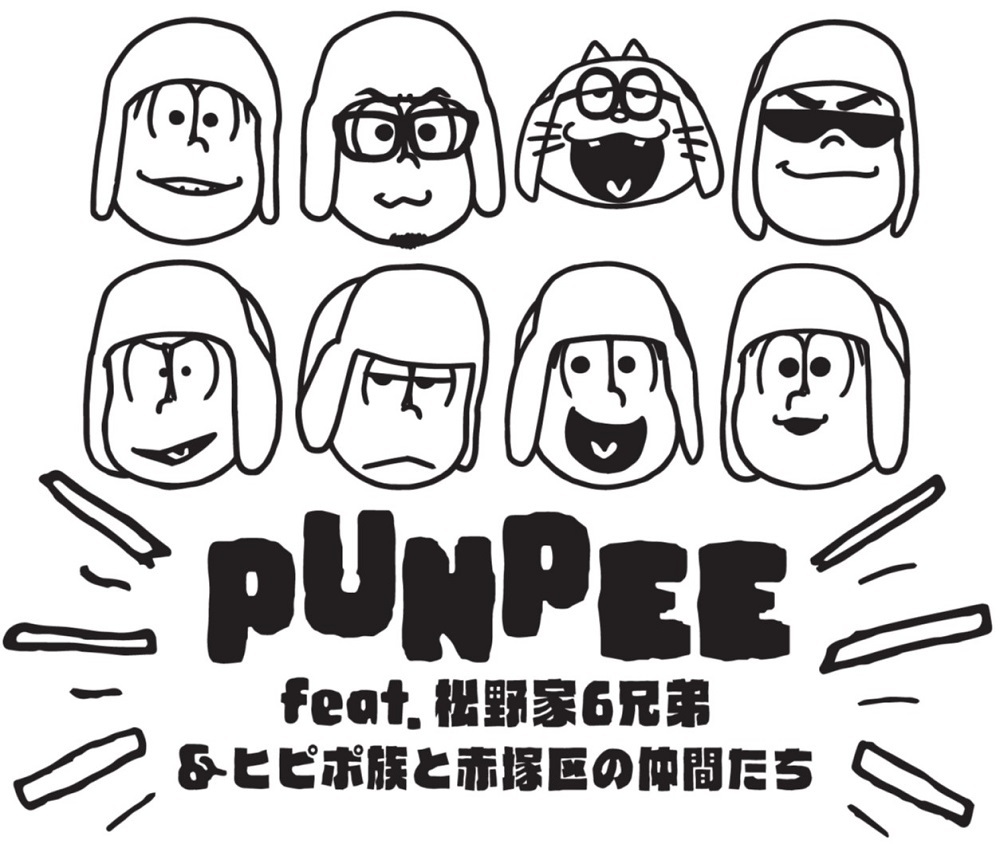 この度ED主題歌を手がけさせていただいたPUNPEEと申します。オリジナルであるおそ松くんは自分の親世代だったりがドンピシャだったりしたので当時の時代背景を聞いてリサーチしたり、文庫本を読んで古き良き笑いに心温まらせていただきました。その上で臨んだおそ松さん。どんなタライが落ちてくるんだろう?と構えた結果, 下からタライが飛び出してきて局部をぶん殴られたような気分になりました(笑)。その気持ちを曲にしました。6つ子とその仲間たちにはこれからもマンガの世界で楽しくやって欲しいものです。うらやましいなあ、たまに遊びにいかせておくれ!