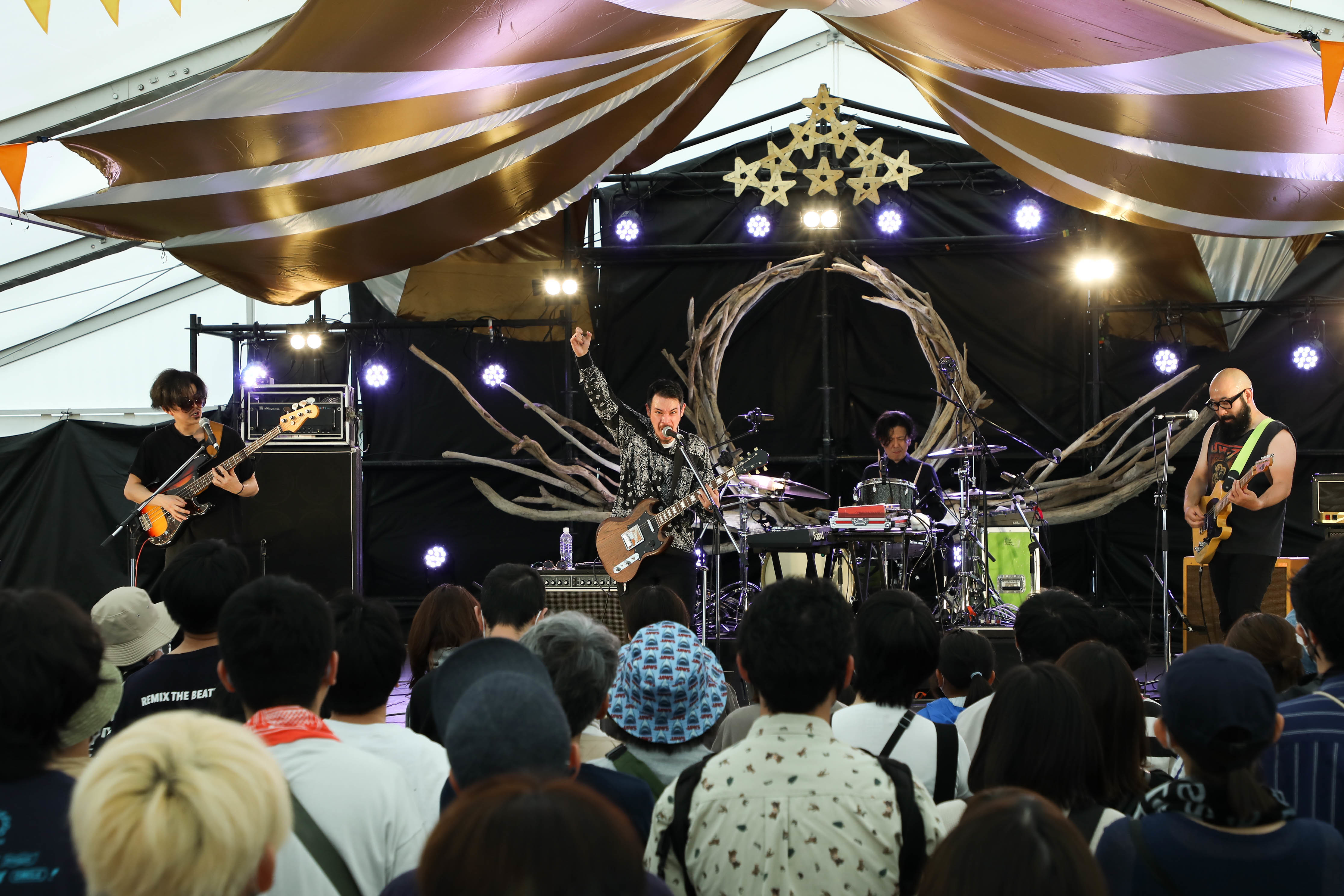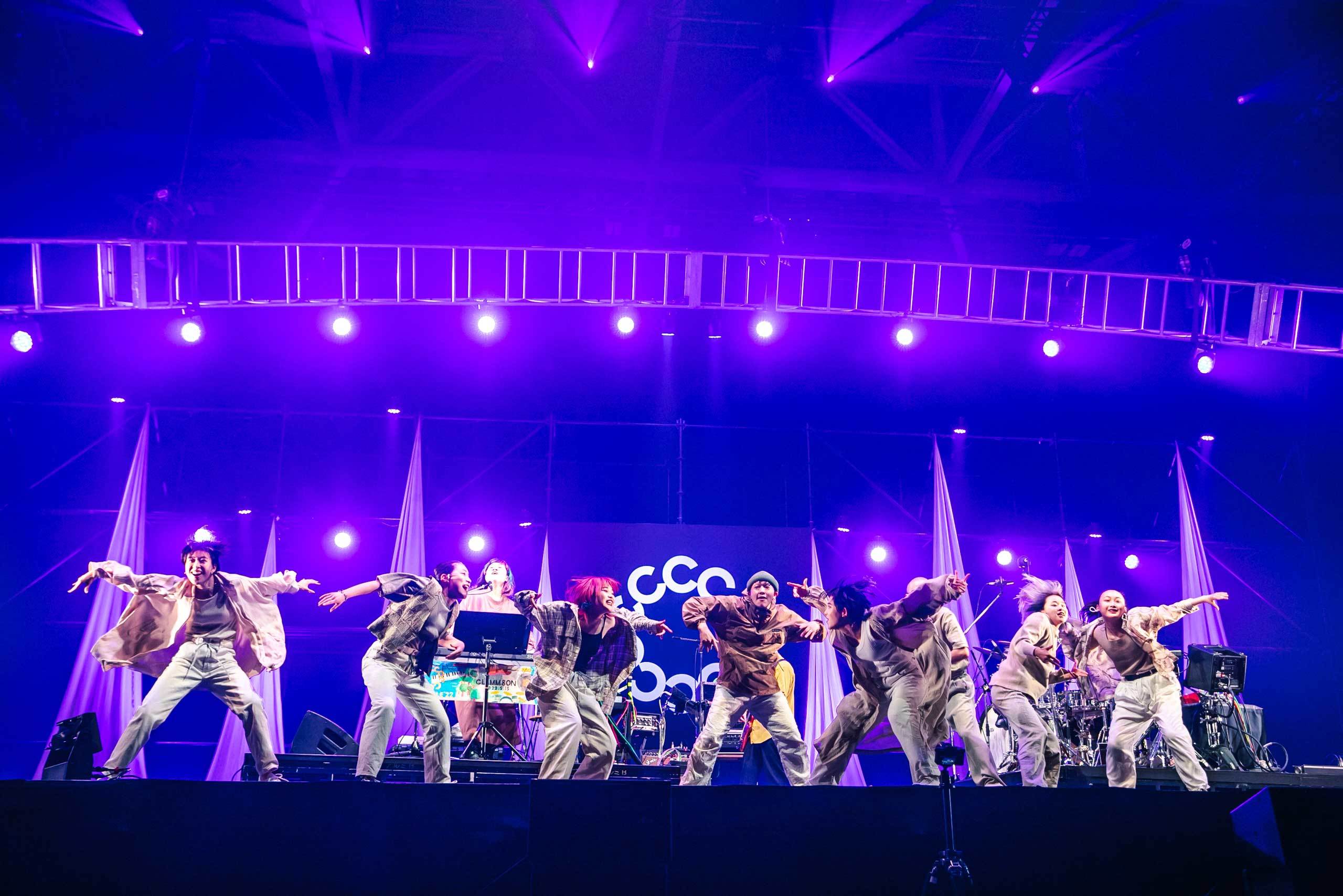 野外と室内では音響環境も大きく異なる訳だが、ミトが「CIRCLE STAGE」について「このグワングワン(とした音の反響)は最初で最後だと思うし!」と未来を見据えて言うのも明るい気持ちになれた。福岡のダンサー・Yurinasia率いるダンサーチーム8人と共に、「福岡の海辺と言えば!」と「波よせて」も披露。これぞ福岡でしか見れないコラボレーションであり、とてもスペシャル感がある。何と言っても最後の原田による「次、向井秀徳へ急げ!」と福岡バトン、CIRCLEバトンが完璧に繋がれた瞬間であった。