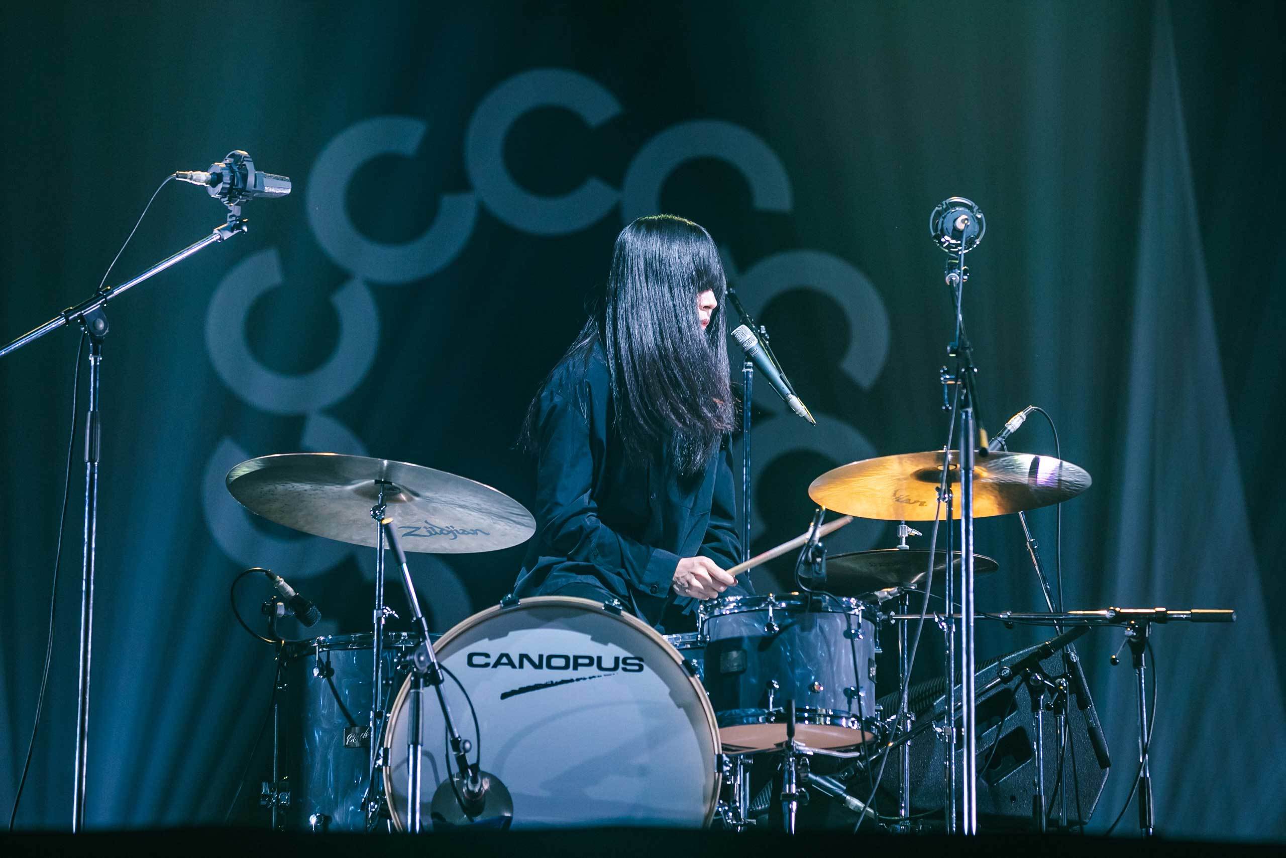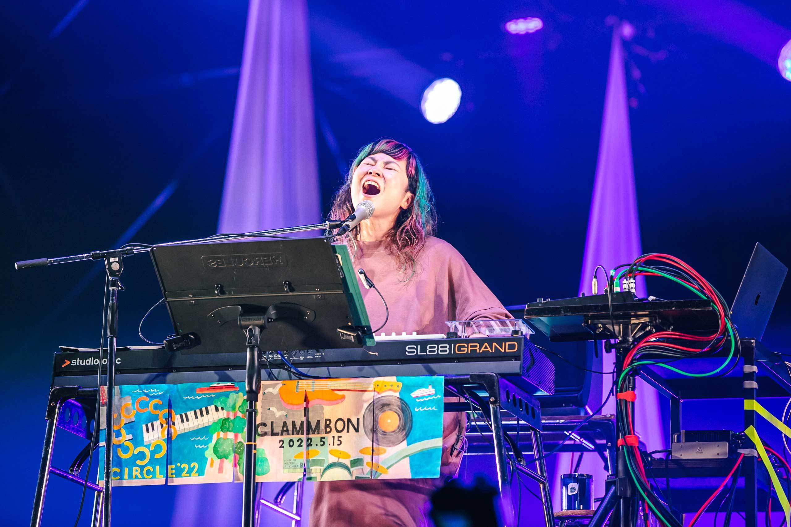 3日目にもなると時間が経つのを異様に早く感じる。すっかり『CIRCLE』の時間感覚に慣れ親しめているのだろう。夕方17時20分。終盤に差し迫ってきたところで、『CIRCLE』の歴史において、重要な2組が登場する。クラムボンと向井秀徳アコースティック&エレクトリック。2007年の初年度に出演した2組であり、原田郁子はソロとして2012年再開催年度にも出演している。そして、原田と向井は共に福岡市博多区出身ということ。この日も実家から来たという原田が、福岡で3年ぶりに開催ができたことについて、「ただいま~!」と喜ぶ姿も可愛らしかった。