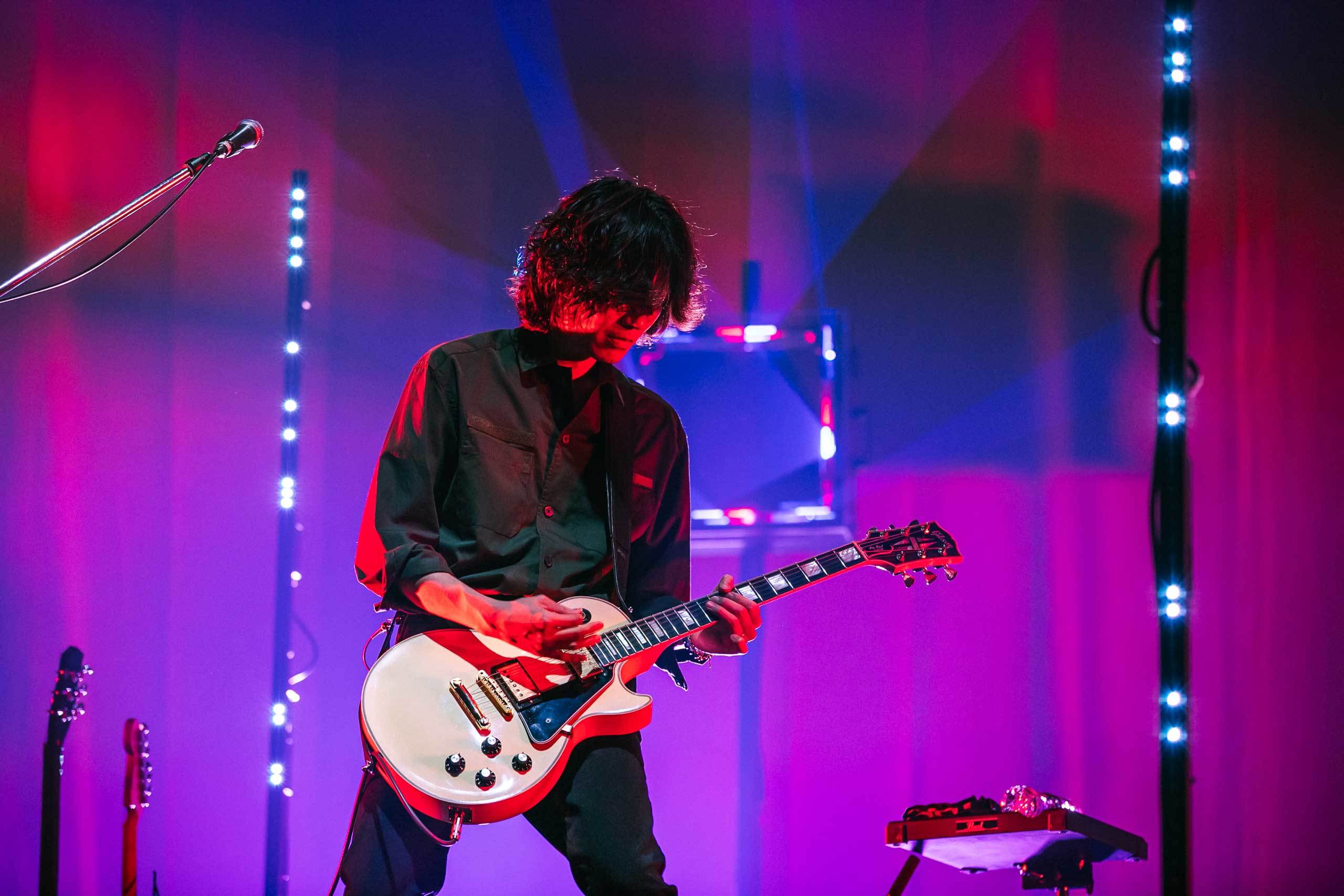 昼下がりの「KOAGARI STAGE」にLEO IMAIとして登場して、「みなさん、ところでZAZEN BOYSはお好きでしょうか?」と「ポテトサラダ」を激しく鳴らしたのは、本当に粋だった。「去年は東京から配信だったんですけど、ハートだけは福岡にいる気持ちで、今年はハートも体も福岡に来れて嬉しいです」という言葉に、彼の全ての想いが表現されていた。なので、「CIRCLE STAGE」での大トリにTESTSETの一員として登場して、メンバー4人横一列でクールな演奏を、クールな映像と共にMC一切無くクールに魅せたのも、彼のギャップある両極端を観れた様で大満喫することができた。