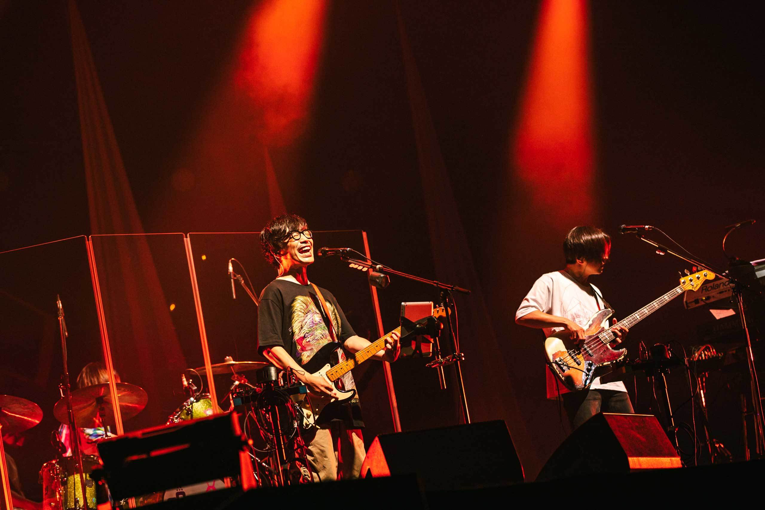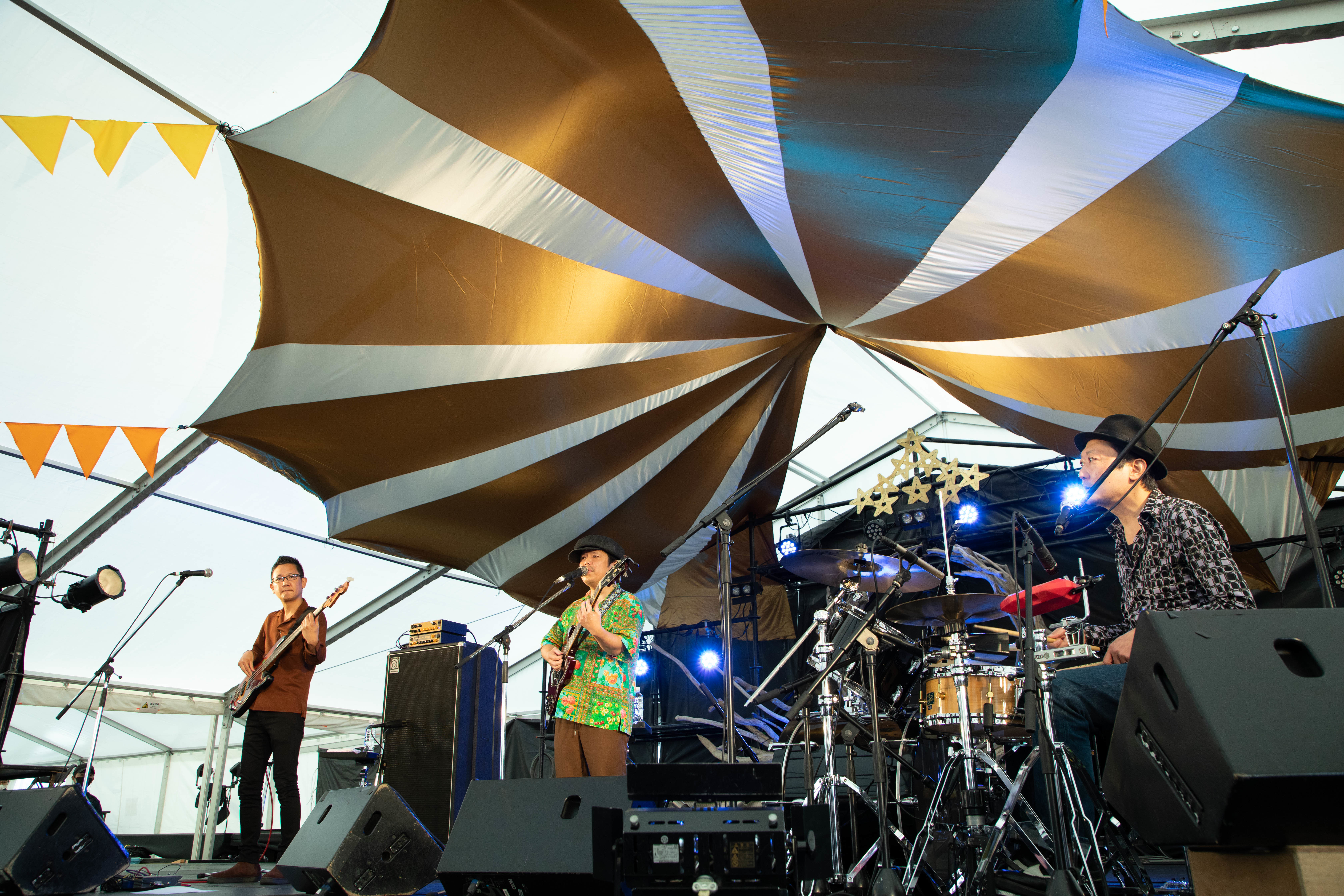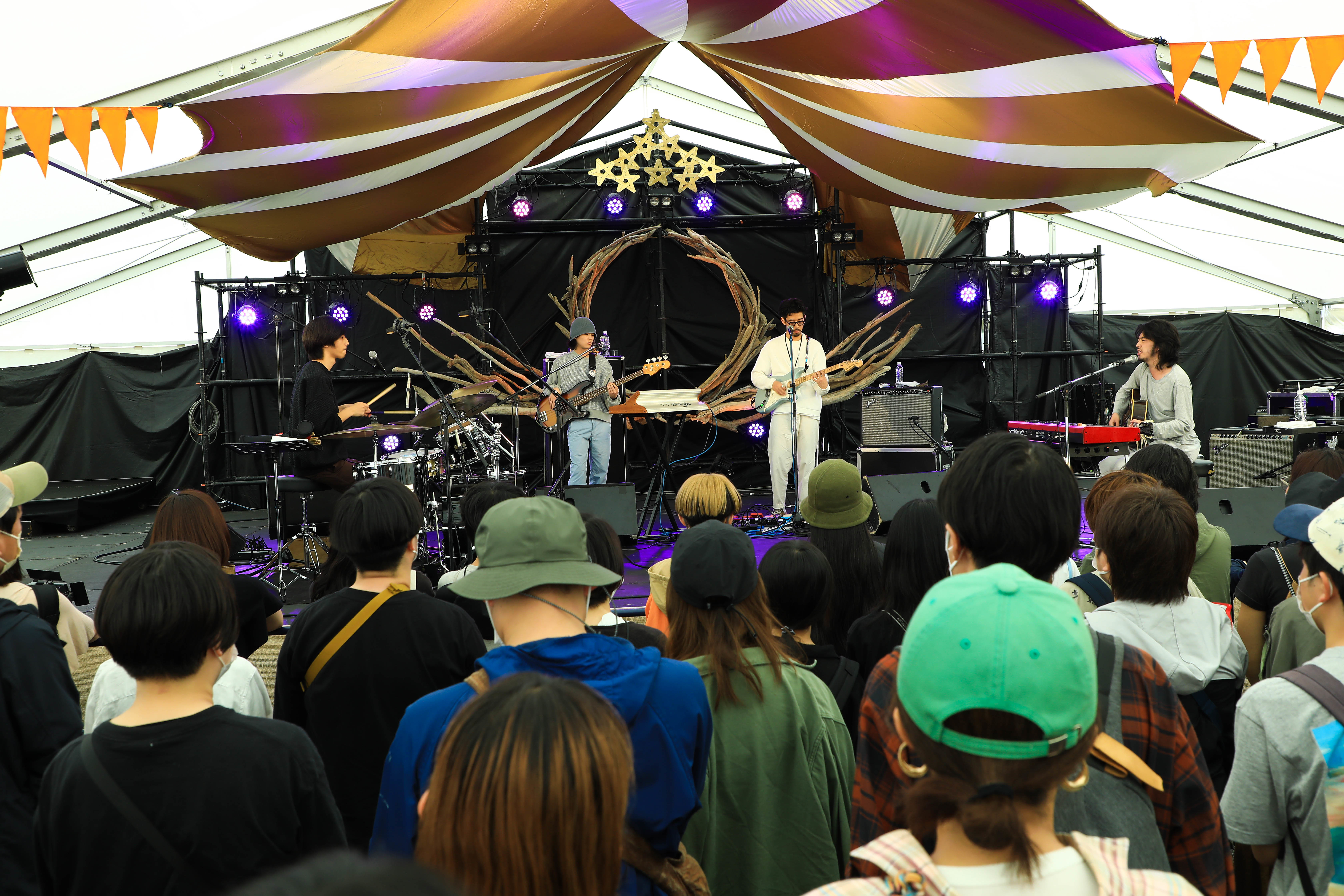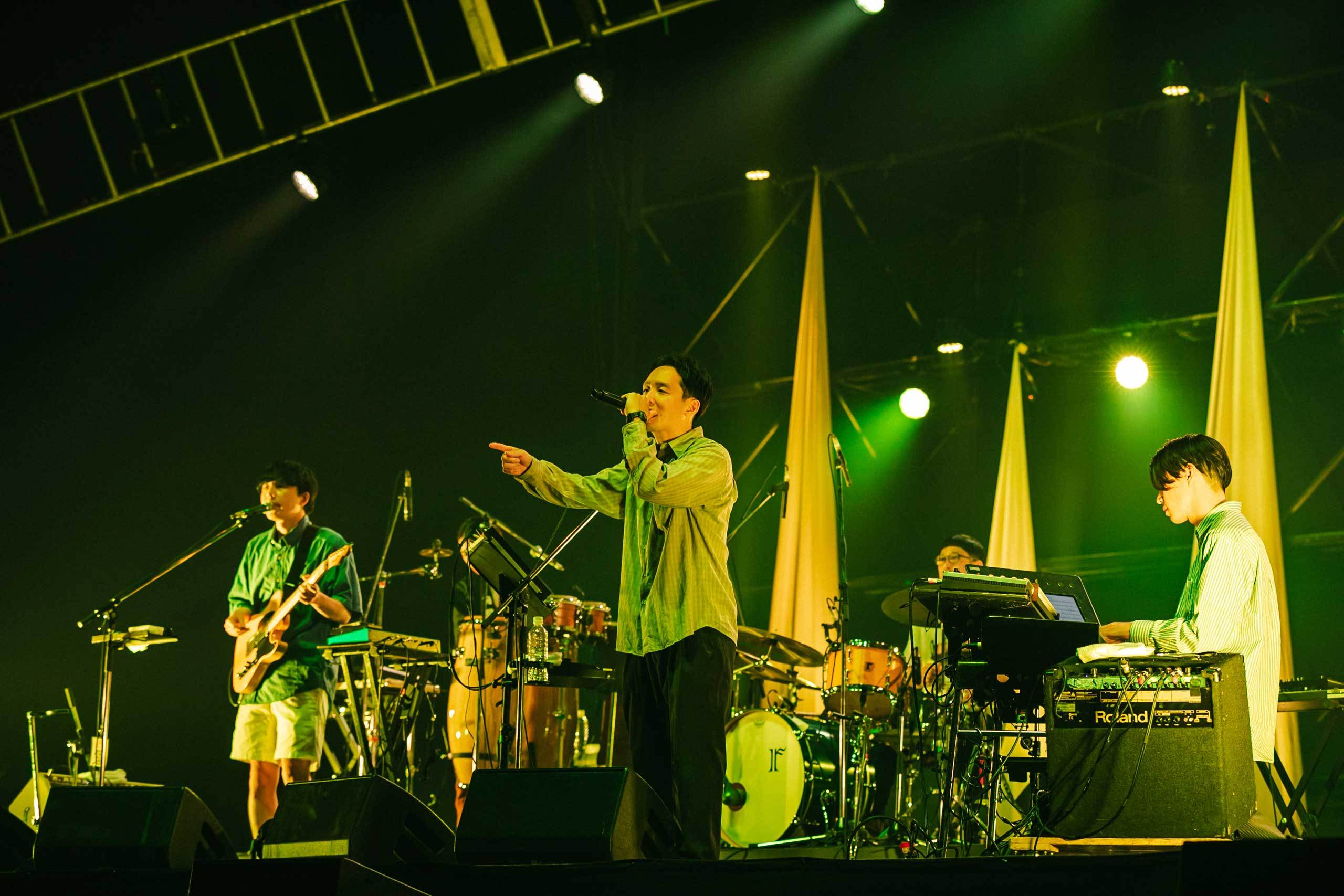 さて、この日の「KOAGARI STAGE」のトップバッターは、昨年配信では出演したものの今年福岡で念願の初出演を果たしたyonawo。それも彼らは福岡出身。「出てきた瞬間、心が躍りました!」というMCのとおり、地元の若手バンドにとって憧れの登竜門になっているのだろう。同世代であろう女の子たちが「友達の友達らしいよ!」と話しながら嬉しそうに眺めている姿も、地元ならではのリアルな光景でほっこりした。