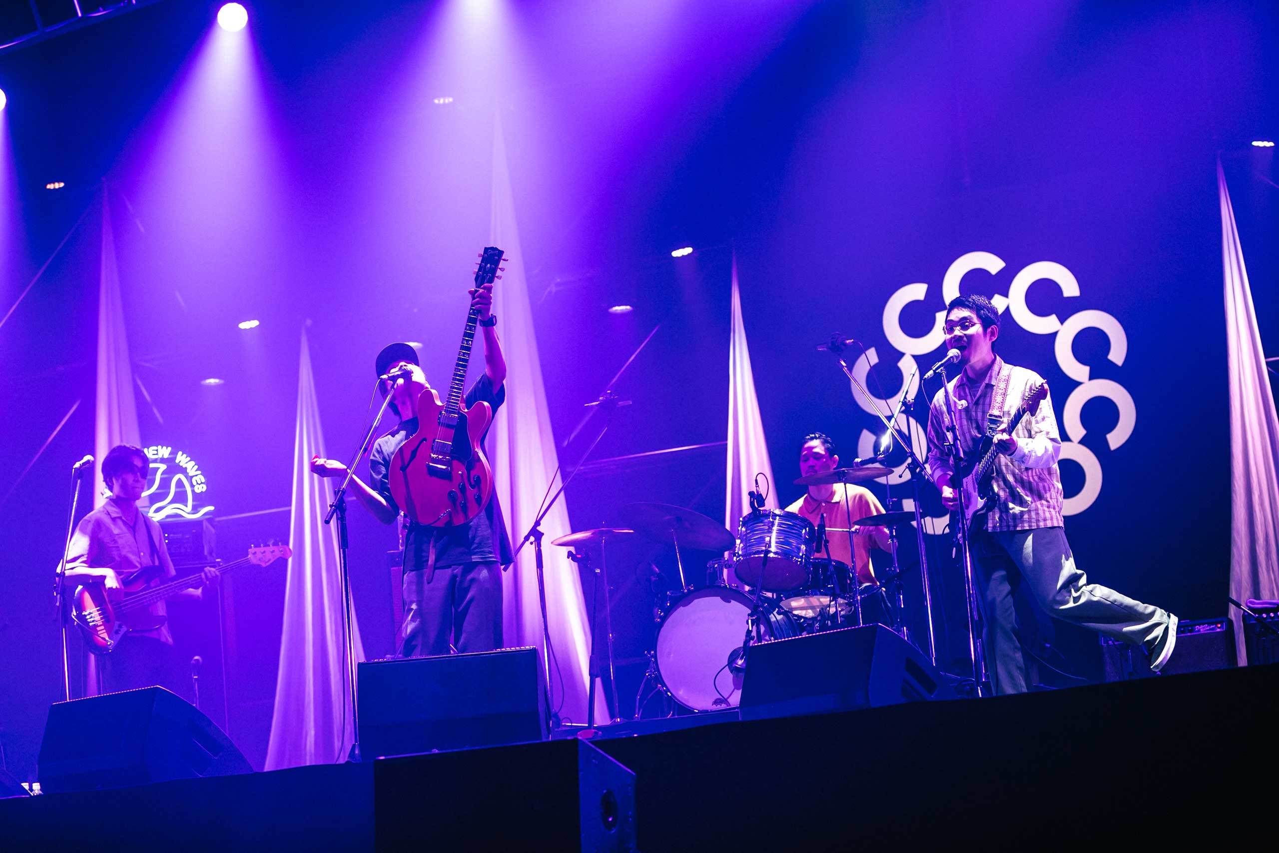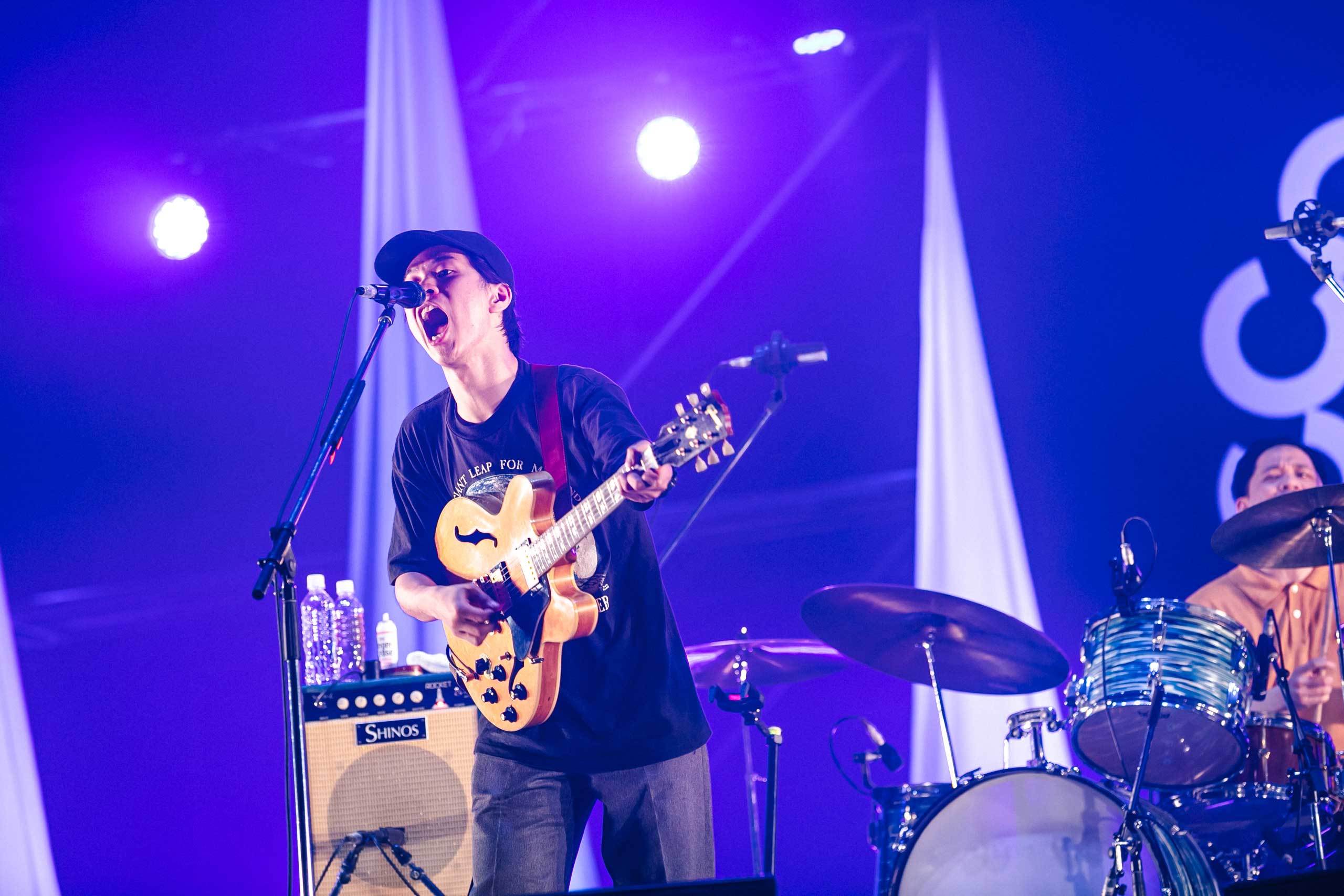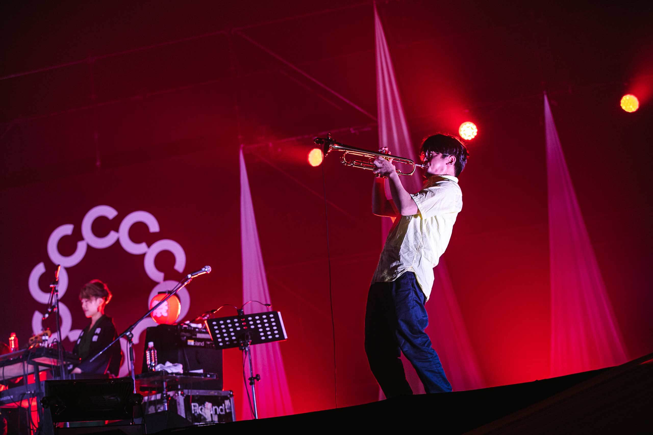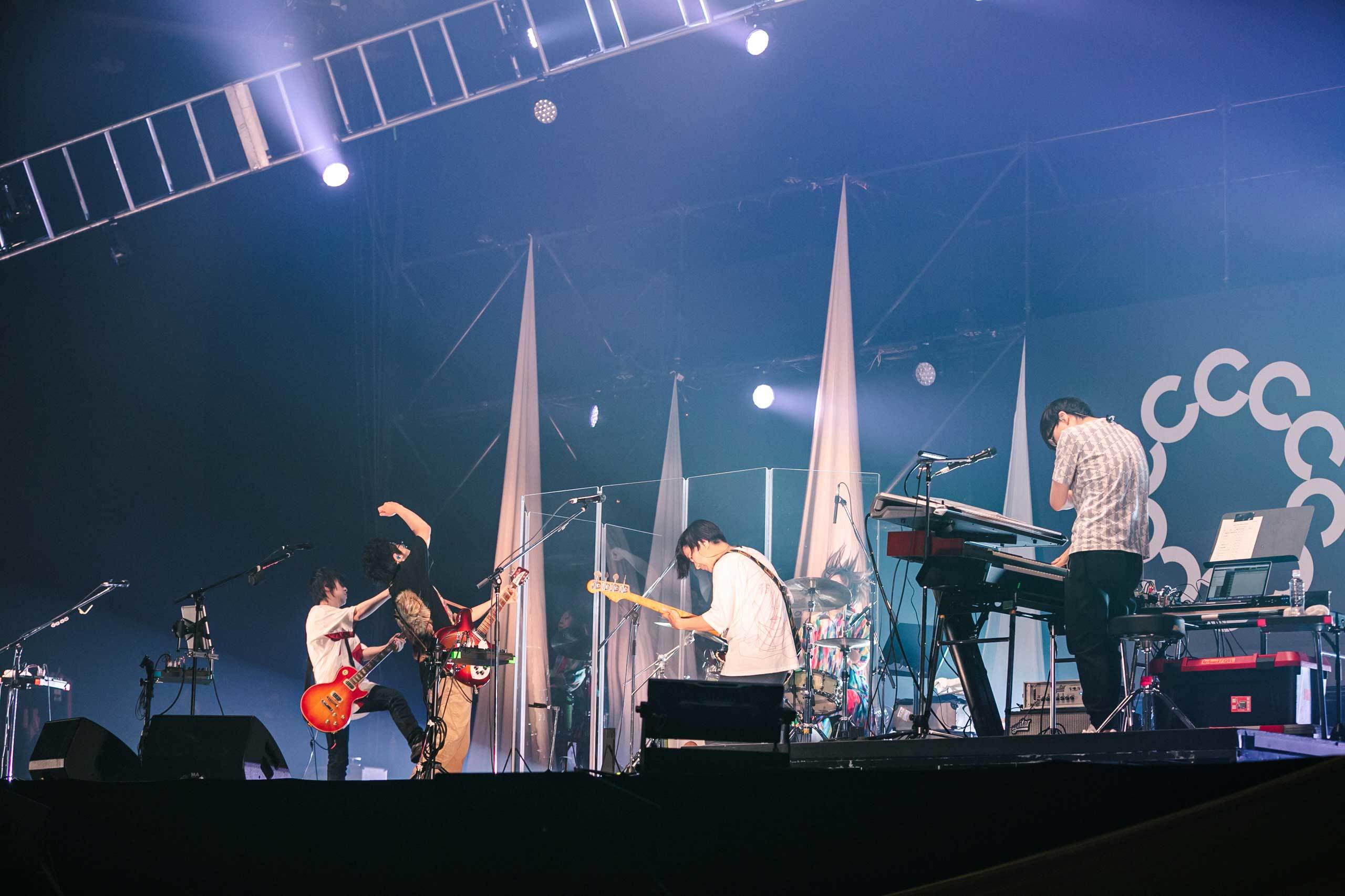 さて、この日の「KOAGARI STAGE」のトップバッターは、昨年配信では出演したものの今年福岡で念願の初出演を果たしたyonawo。それも彼らは福岡出身。「出てきた瞬間、心が躍りました!」というMCのとおり、地元の若手バンドにとって憧れの登竜門になっているのだろう。同世代であろう女の子たちが「友達の友達らしいよ!」と話しながら嬉しそうに眺めている姿も、地元ならではのリアルな光景でほっこりした。