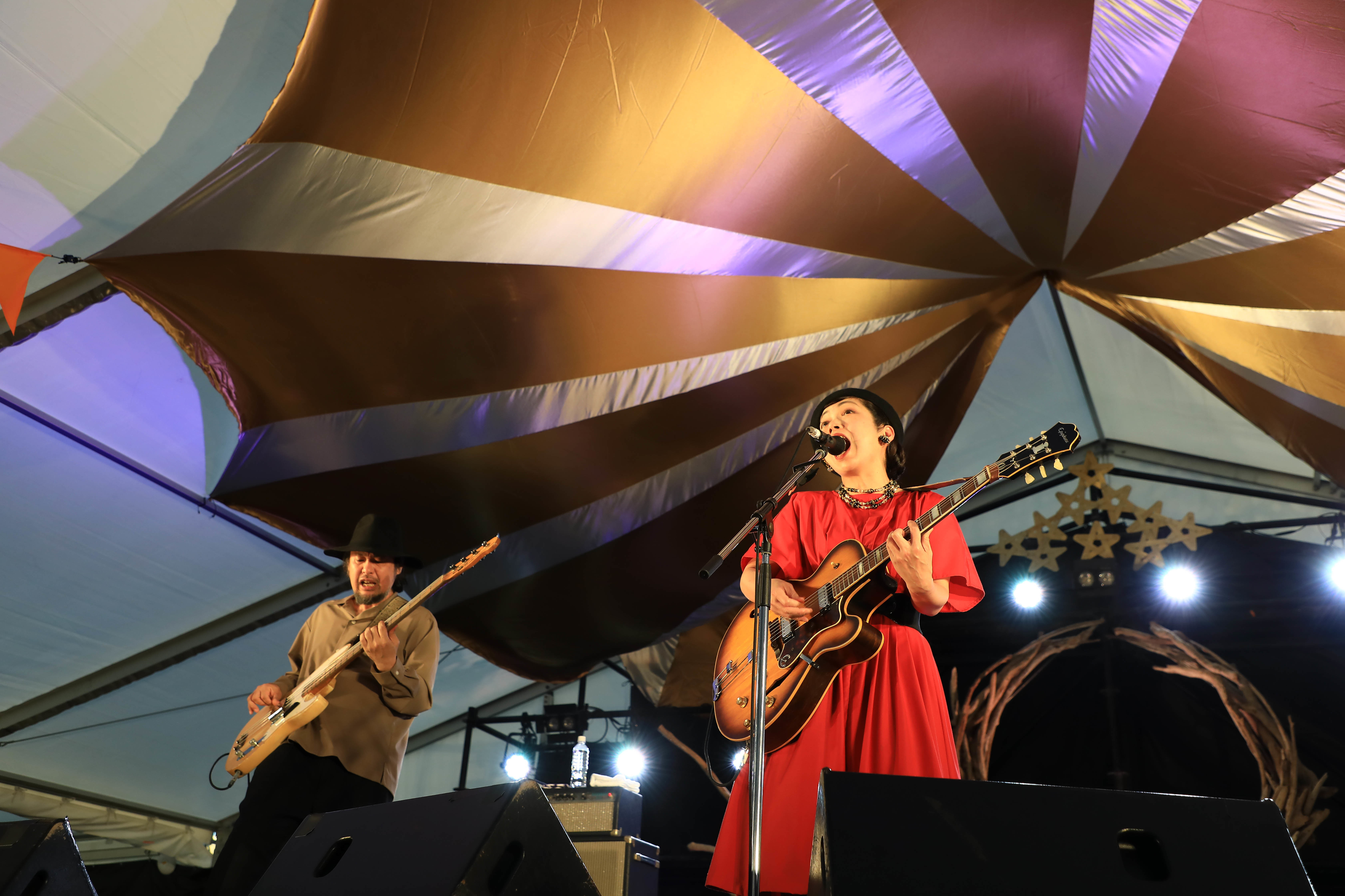 二階堂は、同じく「KOAGARI STAGE」出演のLITTLE CREATURES・青柳拓次、鈴木正人とセッションを披露。その昔、海外ツアーを一緒に回った話などもしていたが、ここだからこそ観られるセッションというのも特有の色である。その名も、なぎら健壱×高田漣もそうだ。高田渡の息子である漣を、生まれる前から知っているというなぎらが約40年~50年前の昔話をしながら、和気あいあいと高田渡の歌を歌うのは貴重だった。漣はTwitterでギター漫談と冗談交じりに書いていたが、高田渡は亡くなっても歌は生きていることを届けてもらえたし、これを機会に高田渡の楽曲に触れる若者たちがいたら本当に喜ばしいことだ。