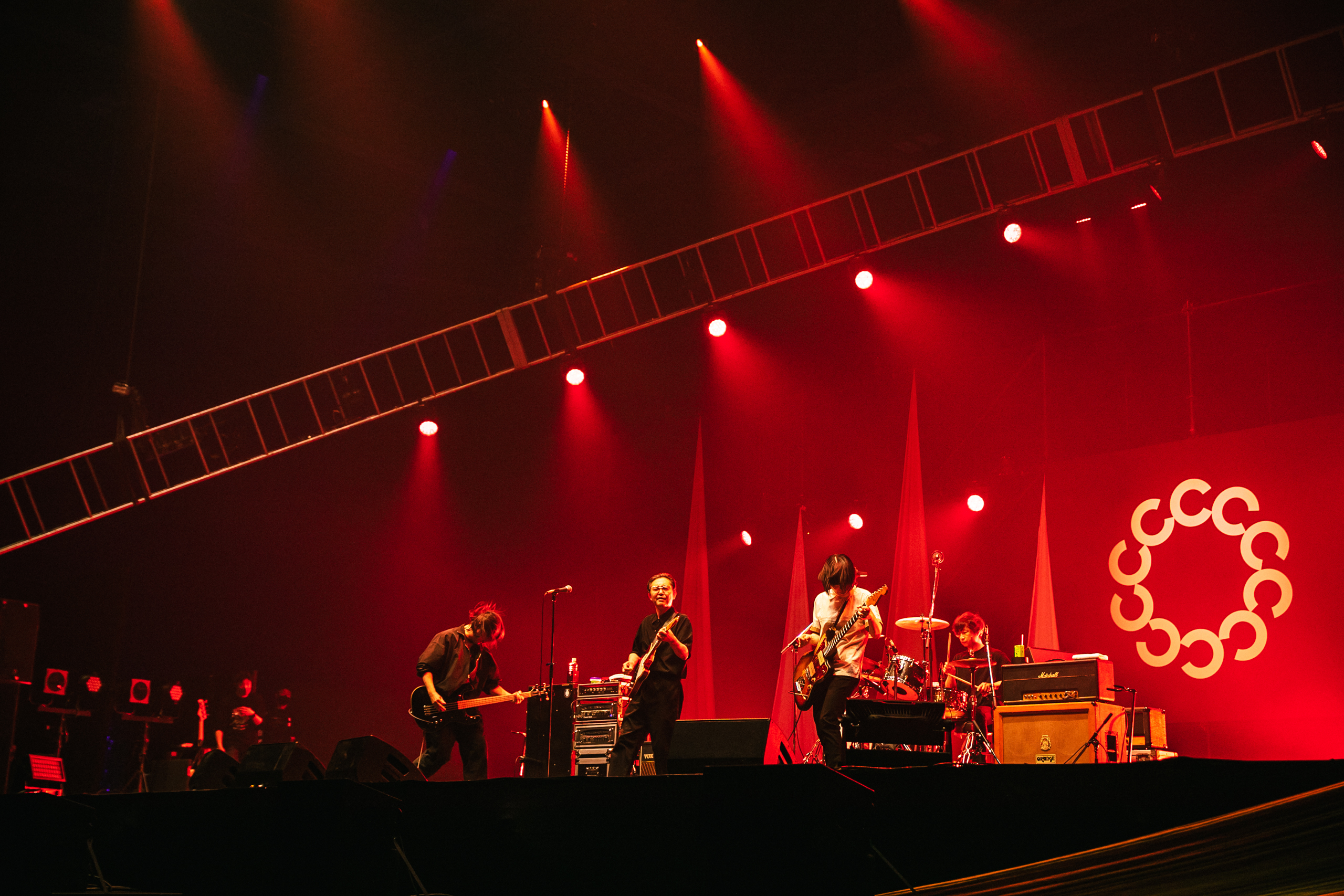 続いて、くるり。2016年リリースの人気曲である「琥珀色の街、上海蟹の朝」で、1曲目から一発で観客の心を掴む。流石である。場内はノリノリな中、畳みかけるかの様に「ばらの花」、「ハイウェイ」を演奏。思わずざわめきも起きる状況で、とても伸びやかで気持ちの良いライブ。全9曲、2000年代初頭の楽曲を中心に、2000年代以降の楽曲で構成されていたが最後は違った。そのラストナンバーをぶちかます前の「いいバンドが出るイベントに呼んで頂き……」という言葉も強い想いを感じた。その肝心のラストは、1999年リリースの「街」。<この街は僕のもの>という魂の叫びから歌われる歌は、当時の情念が真空パックされていて、いま聴いてもリアリティーが凄く背筋が伸びる。強烈に突き刺さった。トリのNUMBER GIRLへの期待が、嫌でも高まる。