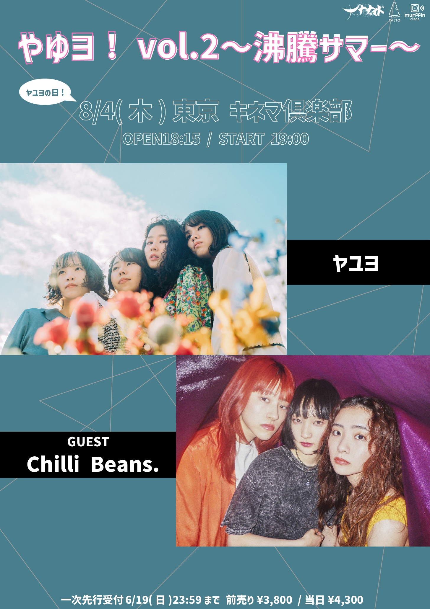 ヤユヨが8月4日(木)に、東京キネマ倶楽部にてChilli Beans.を迎えた2マンライブ『やゆヨ!vol.2〜沸騰サマー〜』を開催する。