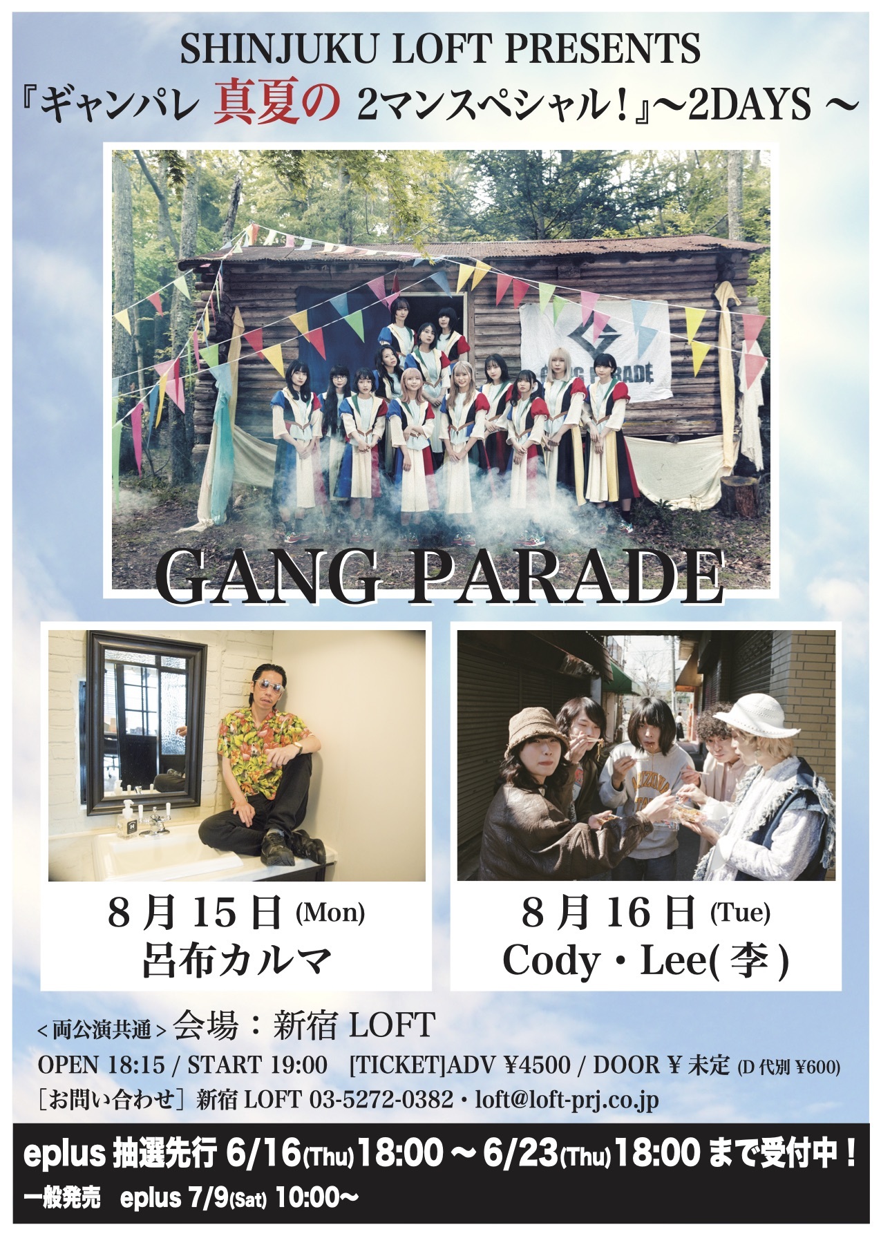 2018年にGANG PARADEが開催した『ギャンパレ真夏の3DAYSスペシャル!』が、4年振りに『ギャンパレ真夏の2マンスペシャル!』〜2DAYS 〜として8月15日(月)〜8月16日(火)に新宿 LOFTで開催する。