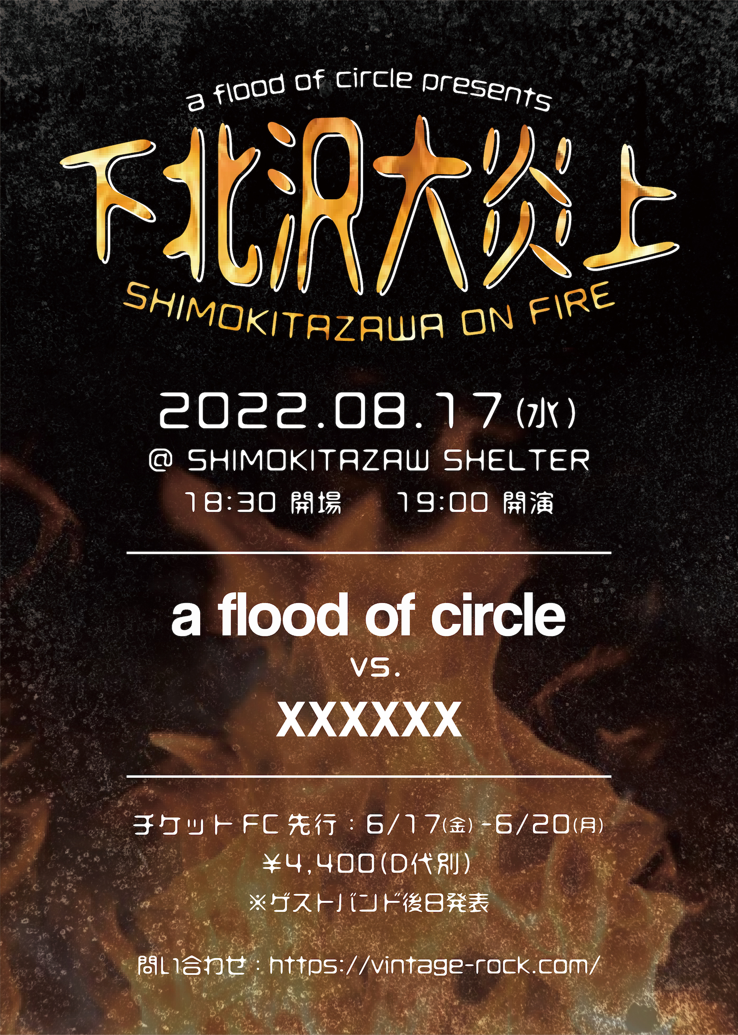 現在ツアー中のa flood of circleが、新しい自主企画『下北沢大炎上』と『KINZOKU Bat NIGHT at なんばHatch』を8月に開催することを発表。