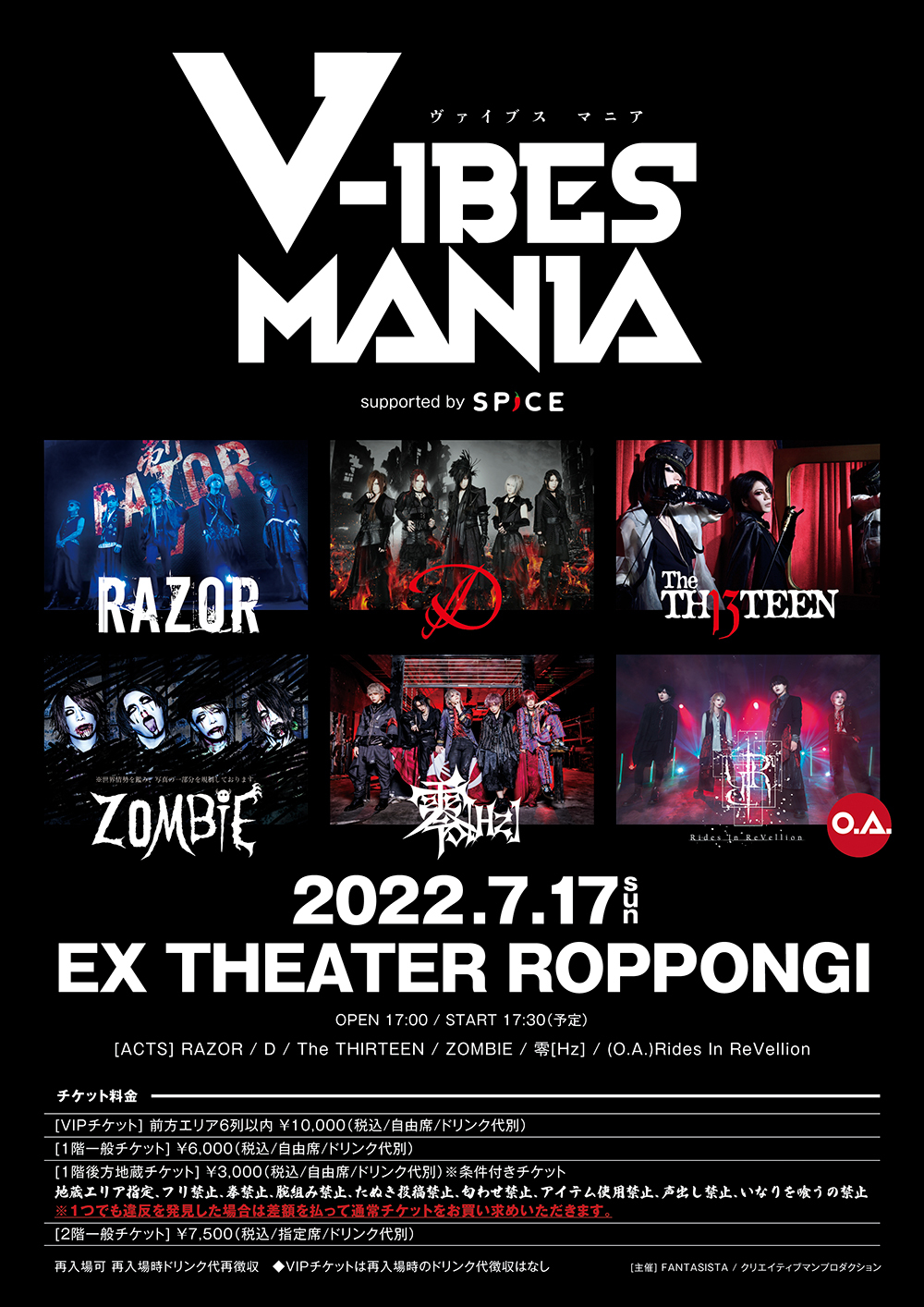 2022年7月17日(日)にEX THEATER ROPPNGIにて、新たなヴィジュアル系イベント『V-IBES MANIA supported by SPICE』が開催されることが発表となった。