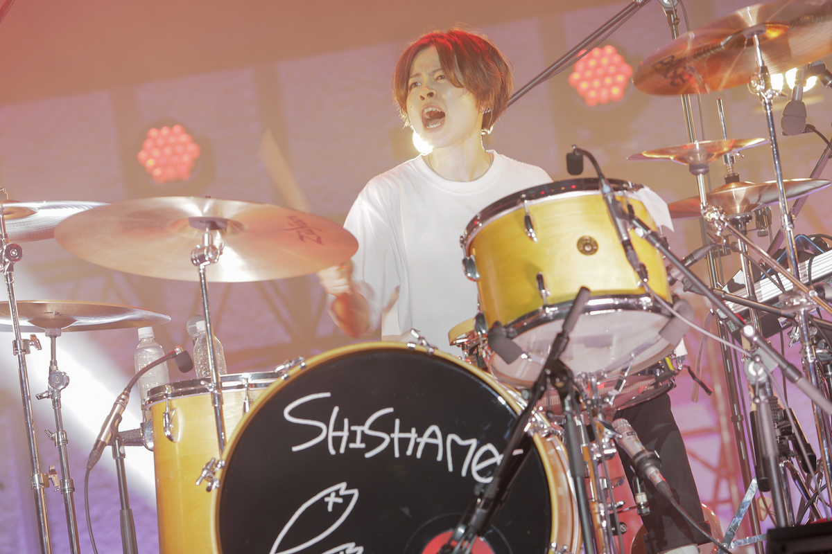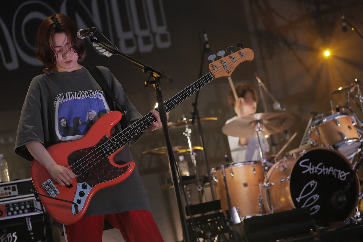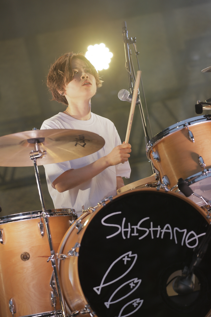 「野音で1年ぶりにできてうれしいです。11月から10周年。私がSHISHAMOに加入してからは8年ですが、その前の2年はファンとして聴いていたので、私もSHISHAMOと出会って10年です。長いようで短いような年月でした。みなさんと一緒に10周年イヤーをお祝いできたらと思っています」(松岡)