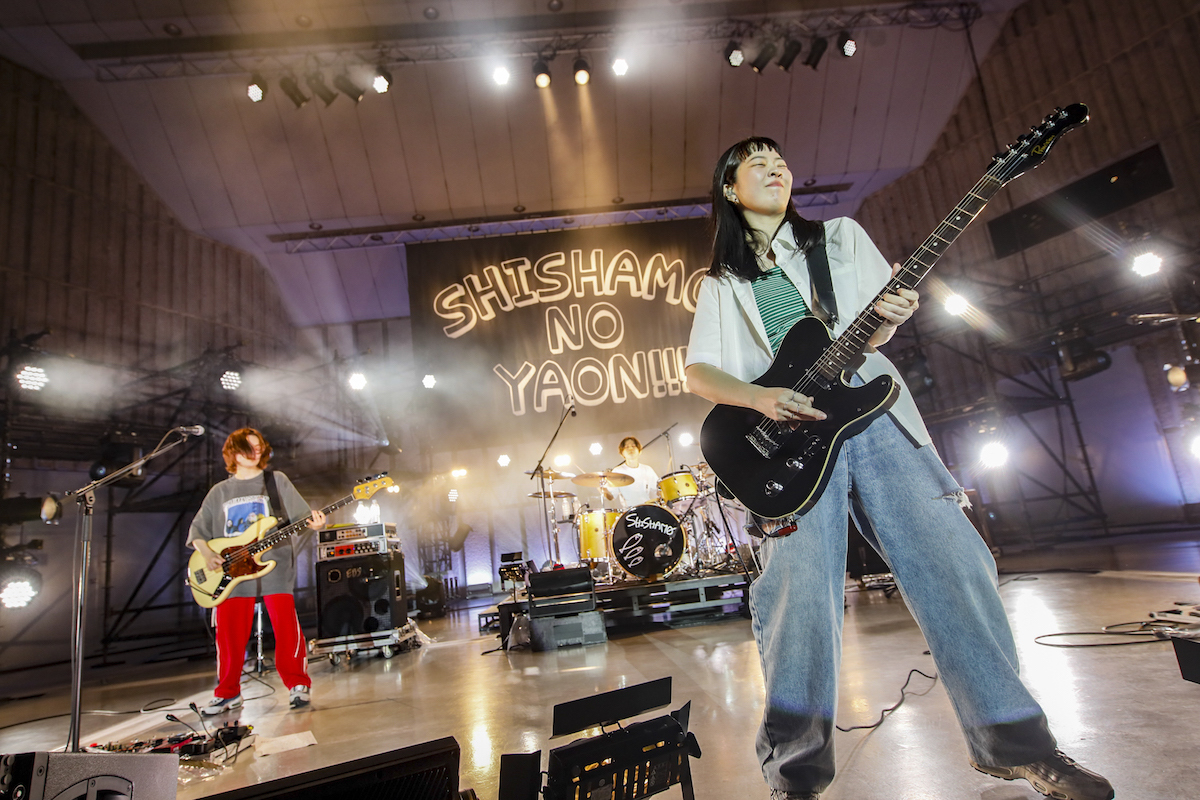 「最近あまりやっていない曲もできるのが『SHISHAMO NO YAON!!!』のいいところです」という宮崎のMCに続いて、「生きるガール」。ダイナミックな演奏に観客のハンドクラップが加わっていく。宮崎のギターの弾き語りで始まった「ごめんね、恋心」は緩急自在の演奏によって、失恋した主人公の揺れる心模様が浮き彫りになっていく。3人のコーラスワークも効果的だ。久々の曲を聴くと、バンドの表現力がさらに豊かになっていることがよくわかる。「恋に落ちる音が聞こえたら」では客席のハンドクラップも参加しての演奏。スケールの大きなグルーヴが爽快だ。