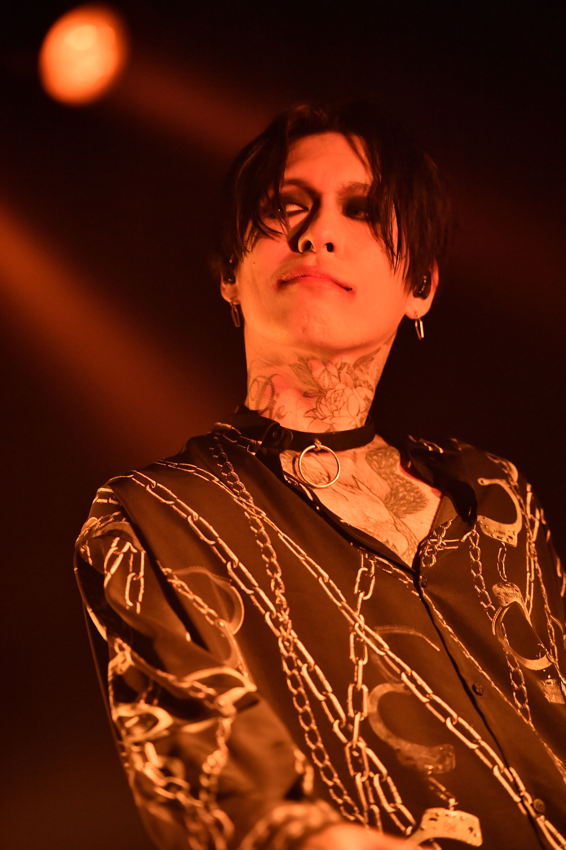 ダークでヘヴィなサウンド、切ないハイトーンボイスと悲痛な咆哮の新曲で闇に誘うと、「ロックバンドのライブじゃないですか、暴れねば!」とHAZUKIが煽り、「+ULTRA」で再び熱狂を生む。激しくラウドな演奏に拳突き上げ、激しく手拍子を合わせるフロアの混沌ぶりは、まさにコロナ禍前のそれ! スウィンギンな「ROMANCE」で踊りまくって、ファストナンバー「A CRUCIFIED FATE」で頭振り乱す中、聴き慣れたイントロにオーディエンスが反応したのは、2020年にリリースしたソロアルバム『葬艶 -FUNERAL-』でセルフカバーした、lynch.の楽曲「PHOENIX」。lynch.の演奏でもない、オーケストラの演奏でもない、現在のHAZUKIバンドで演奏されるこの曲が全く新しい印象と新たな輝きを放つ。