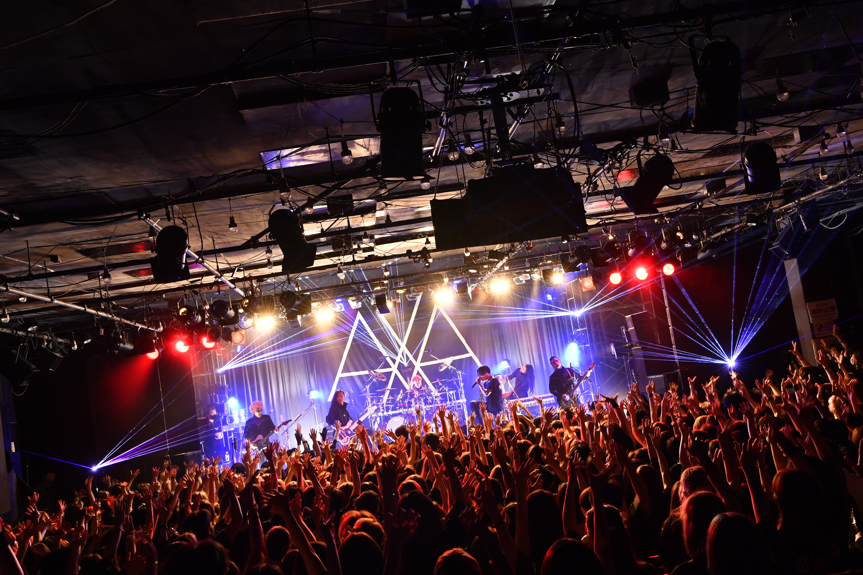 派手やかなレーザーが飛び交う中、気合いと気概に満ち溢れたパワフルな歌と演奏に、オーディエンスが熱い手拍子やジャンプを合わせて応え、異常な熱気に包まれる会場。続いて、HAZUKIがクラップを煽って始まったのは、「XANADU」。バンドの力強く正確な演奏に乗せて、全ての始まりであるこの曲を丁寧にしっかり歌い上げ、夢幻を魅せるHAZUKI。「ようこそ、東京のXANADUへ!」と、オーディエンスを桃源郷へと誘う。初ツアーながらソールドアウト、フロアを埋めつくす満員のオーディエンスの盛り上がりに「コロナ禍の前みたいです、ヤバーッ!」と、思わず喜びの声を上げたHAZUKI。「頭、振りたいよね?」と始まった新曲ではダイナミックなビートに合わせてフロアがヘドバンで波打ち、「七夕乃雷」では激しい四つ打ちビートに会場中がジャンプを合わせて会場を揺らし、前半戦からクライマックス級の盛り上がりを見せる。すげぇ!
