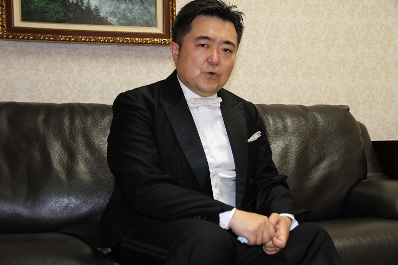 言葉を選びながらロッシーニ音楽の魅力を語る指揮者 園田隆一郎 (C)H.isojima