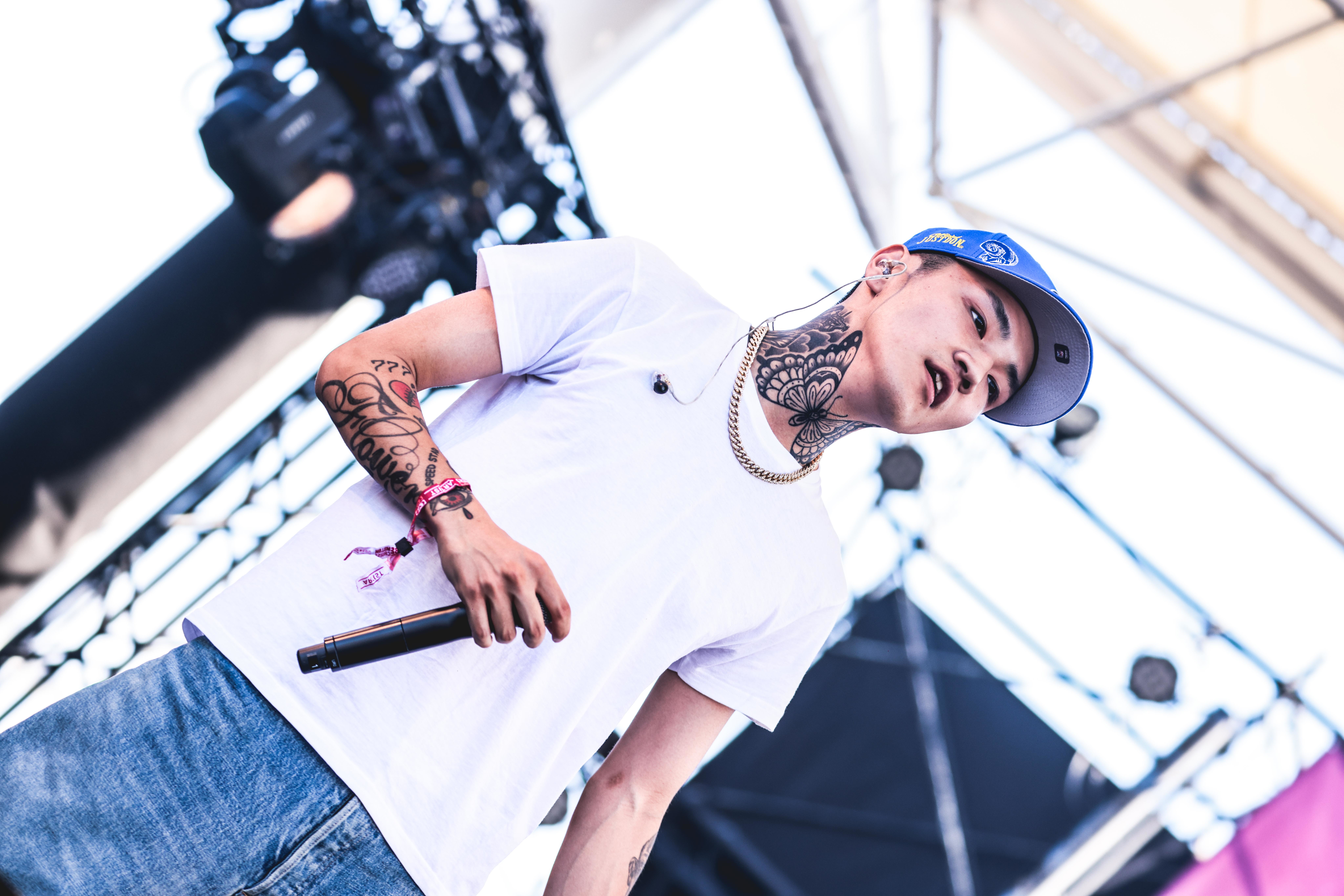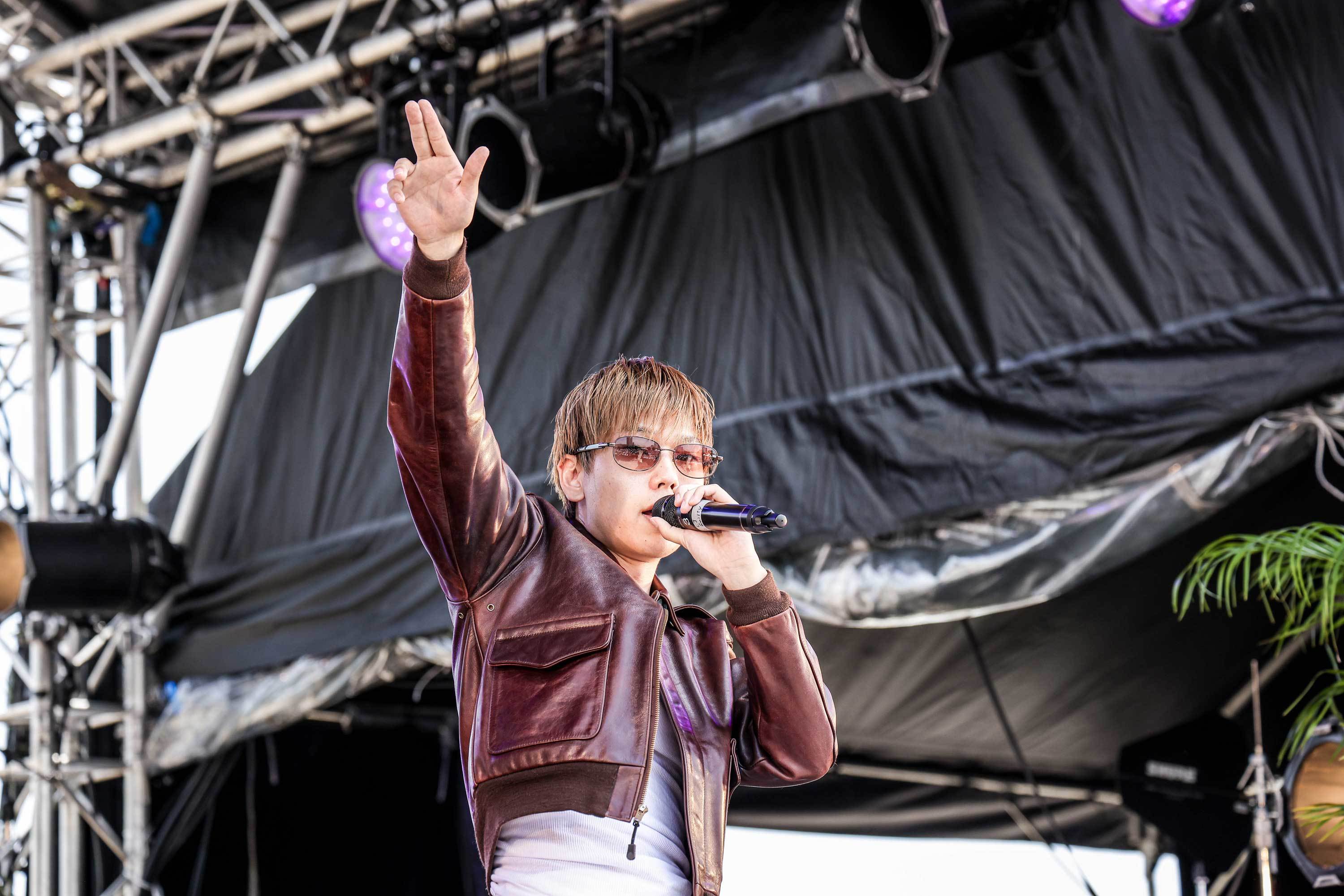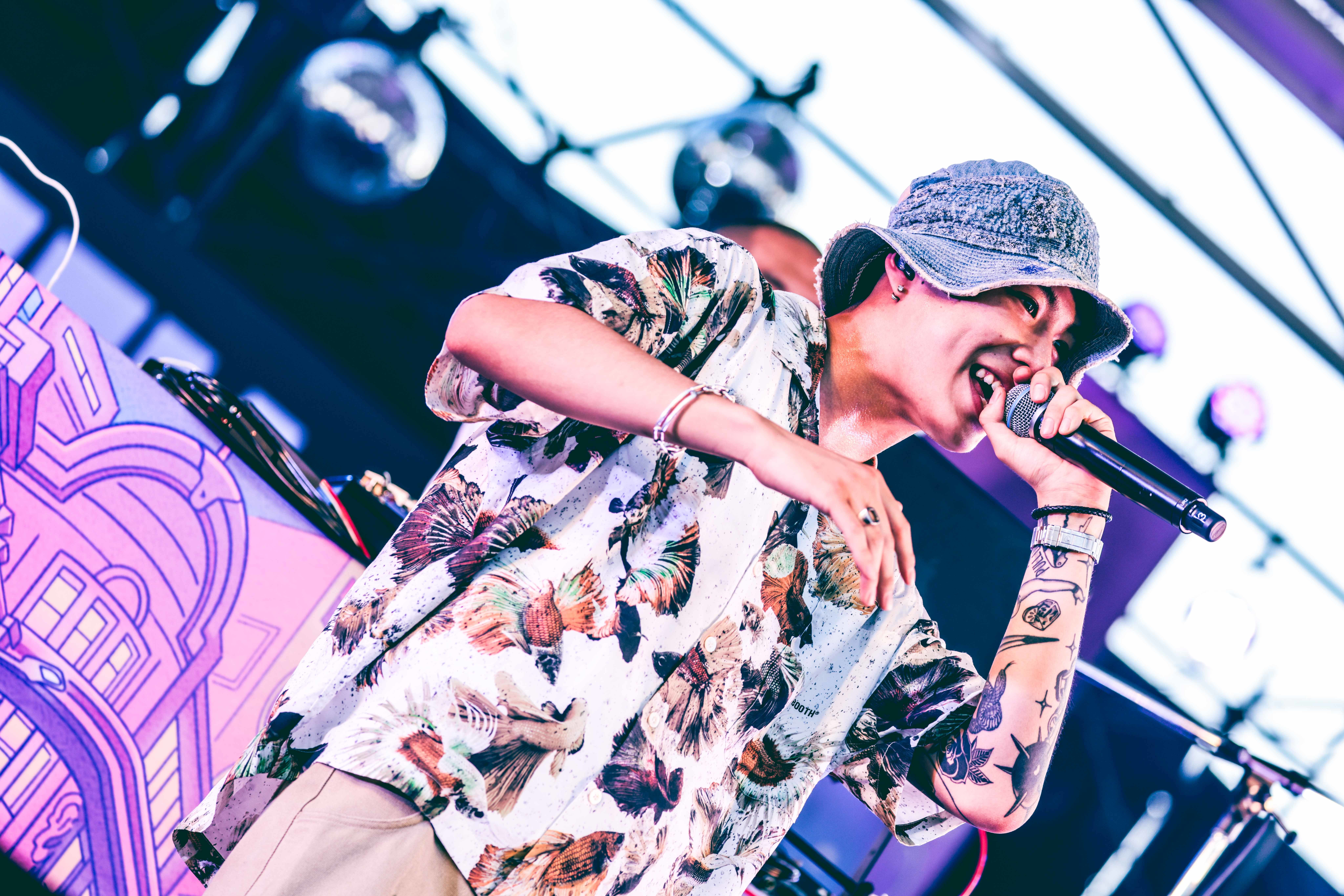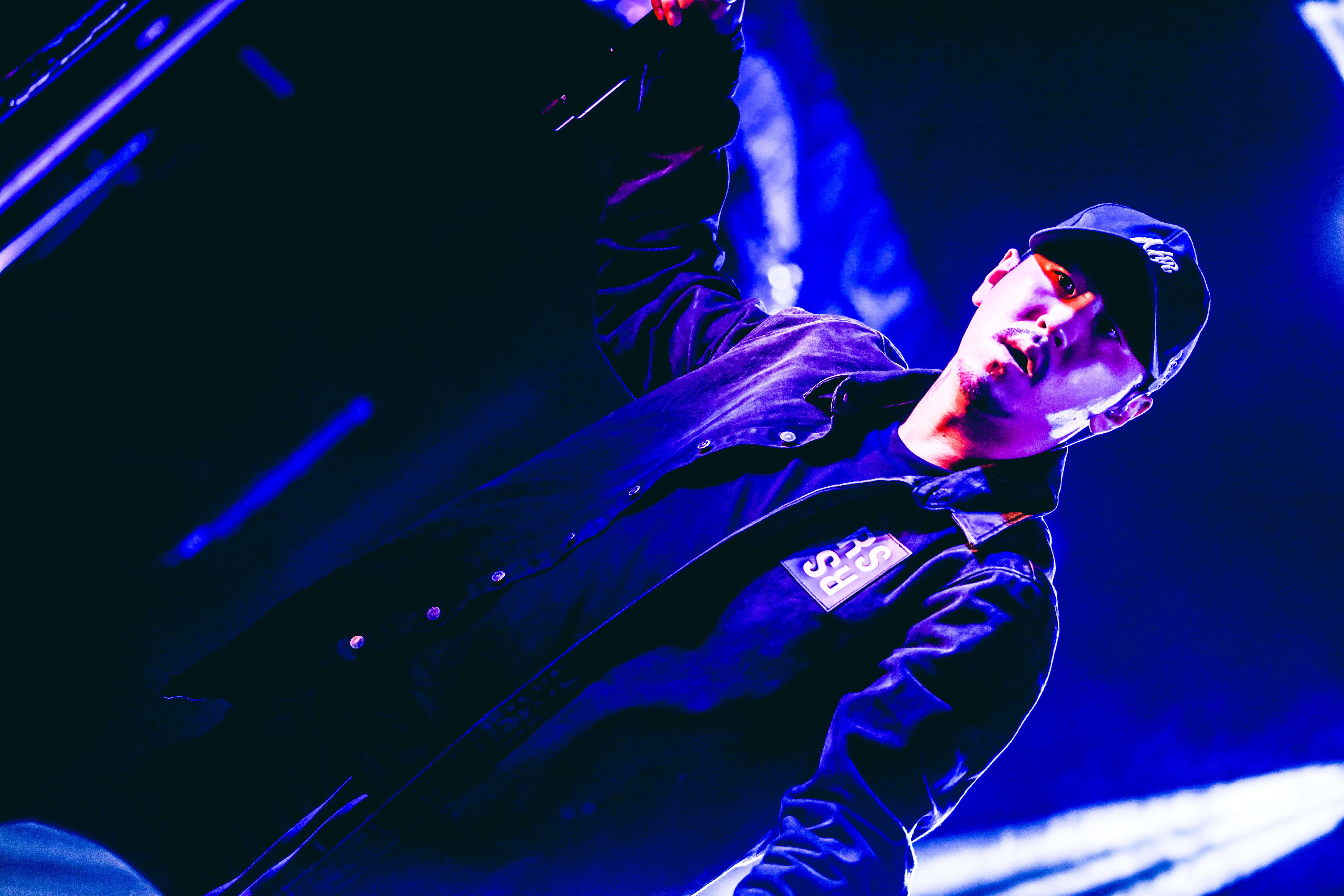 それから打って変わって、kZmは縦揺れで盛り上がり続けるようなロックなライブに。「TEENAGE VIBE」から始まり、そこからメロウなスタートで、お客さんも声が出せない分、3曲目の「27CLUB」ではジャンプで応えて盛り上がるといったアクションも。そのまま終盤の「Aquarius Heaven」に至るまで、グワーッとテンションが上がってきて、ラストの「One Love」「Dream Chaser」でBIMが登場。「One Love」での客演は、新幹線の移動中に「海でいい曲がある」と思い立って、急遽決まったそうです。これだけのラインナップがそろっているからこその魅力ですよね。