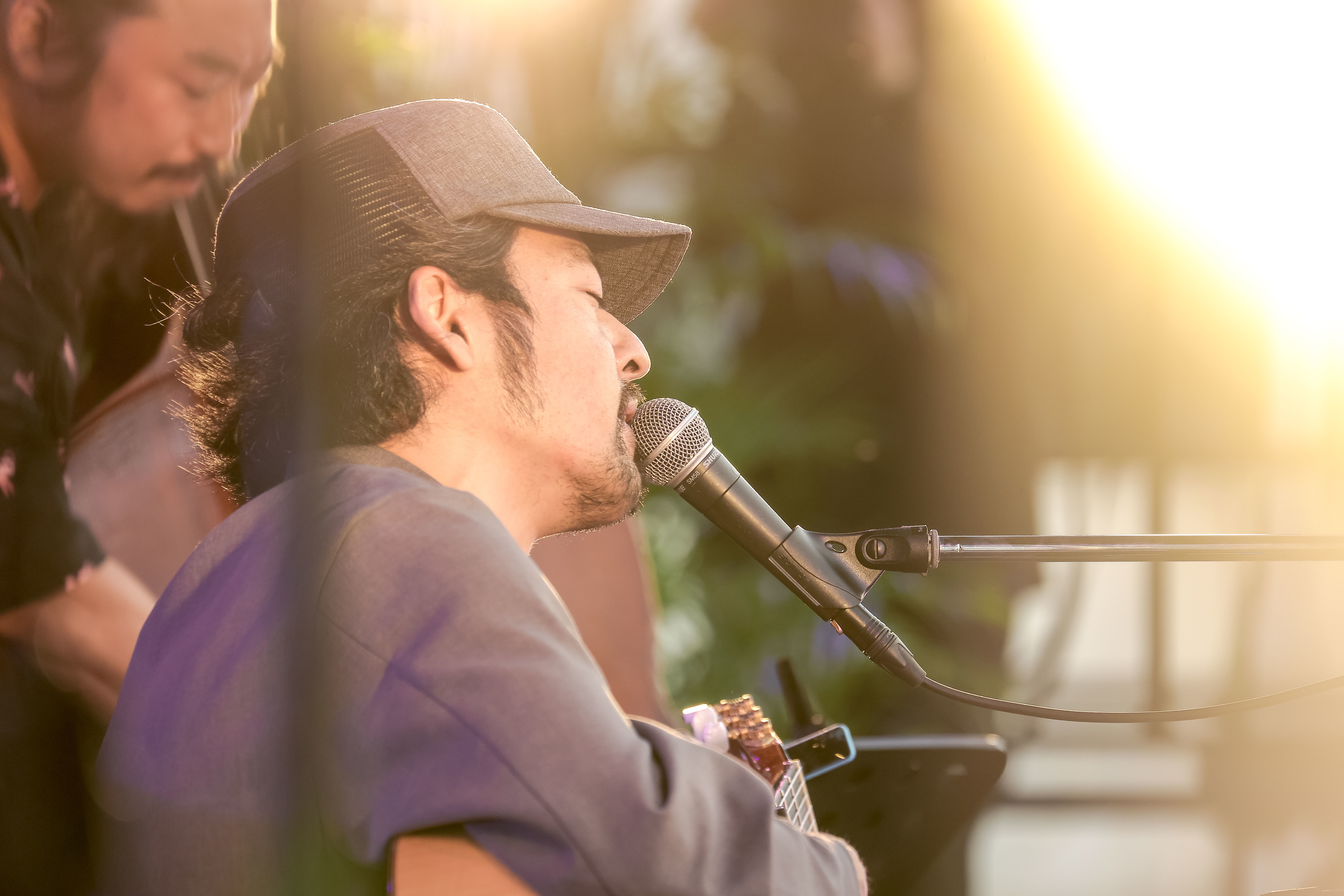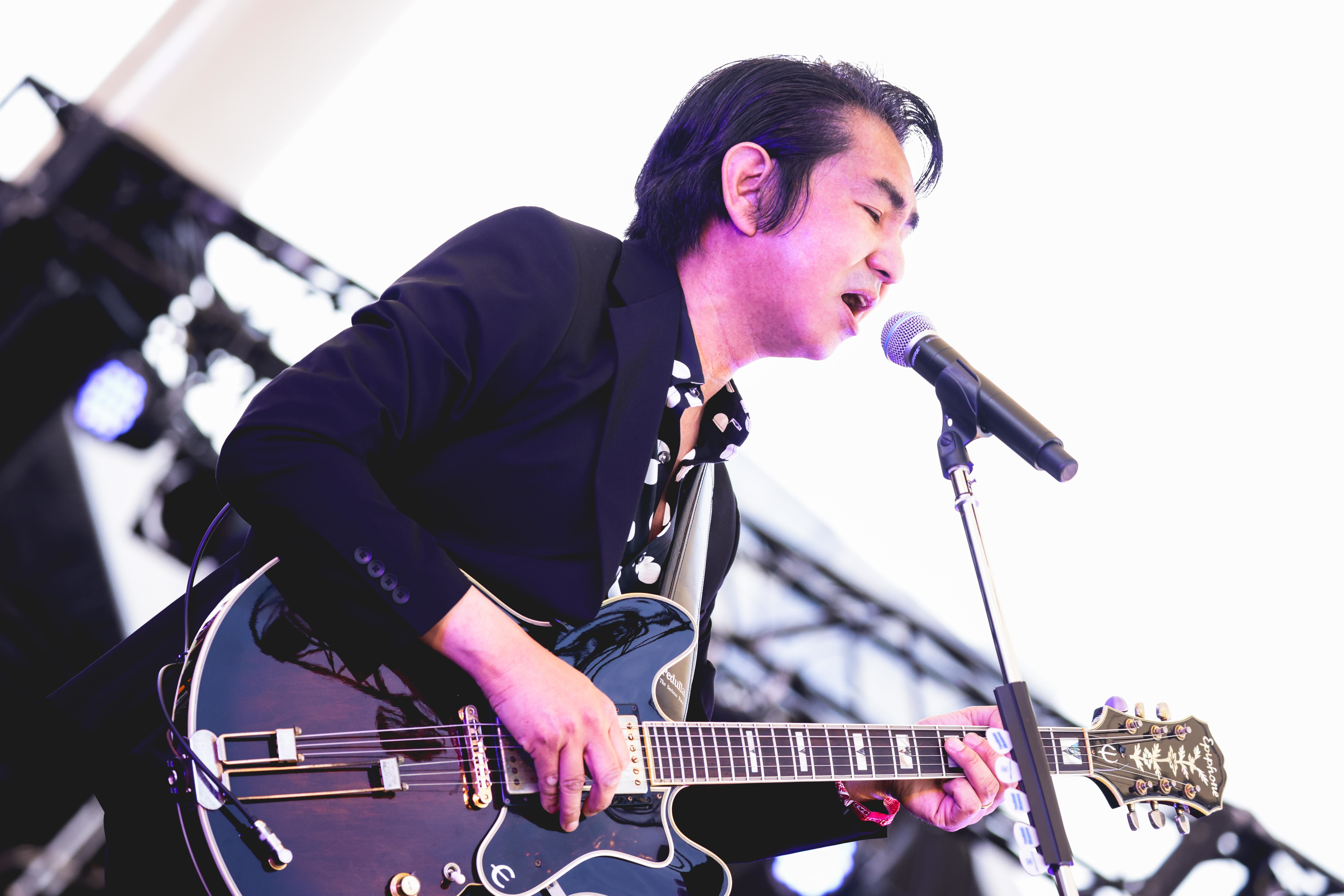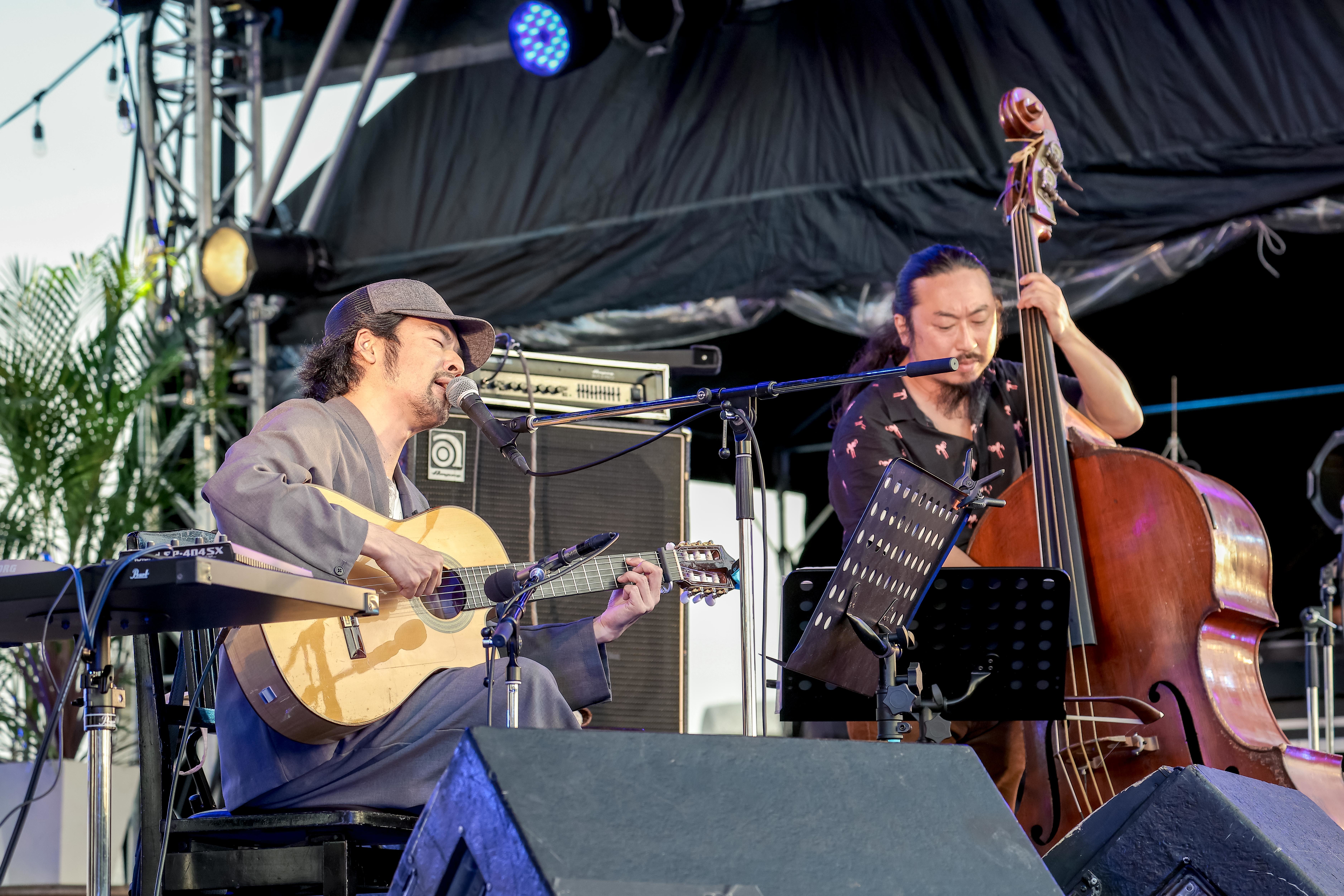 個人的に大好きでずっとライブを観てきている七尾旅人、すごくよかった。本人も「物とか投げられるのかと思っていたけど」と仰っていたぐらい、この日の並びでは異彩を放っていたわけですが、実際はすごくハマっていたんですよね。サウンドチェックをしながら、そのままの流れでライブがスタートして、2曲目の「湘南が遠くなっていく」あたりでサンセットタイムになり、日が落ちてきて気温もいい感じになる、時間帯も雰囲気もステージにぴったりの展開に。入管管理局の問題を歌った「入管の歌 (ニッポンの檻)」あたりでお客さんもグッと身構えるシーンがあり、そこから「きみはうつくしい」「Rollin’ Rollin’」「サーカスナイト」の合唱したくなる緩急は素晴らしかった。今まで観てきたライブの中でも、本当にいいライブでした。