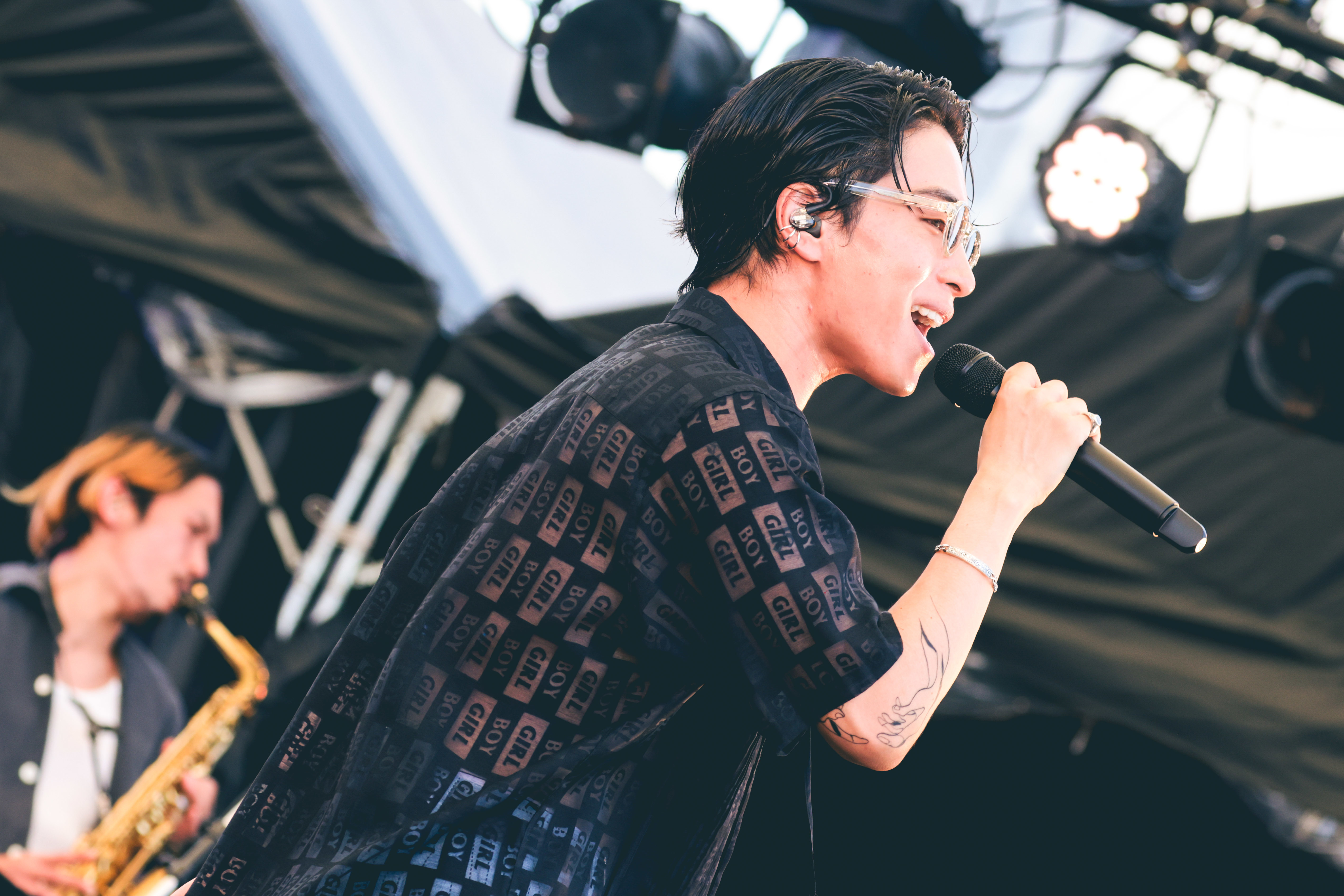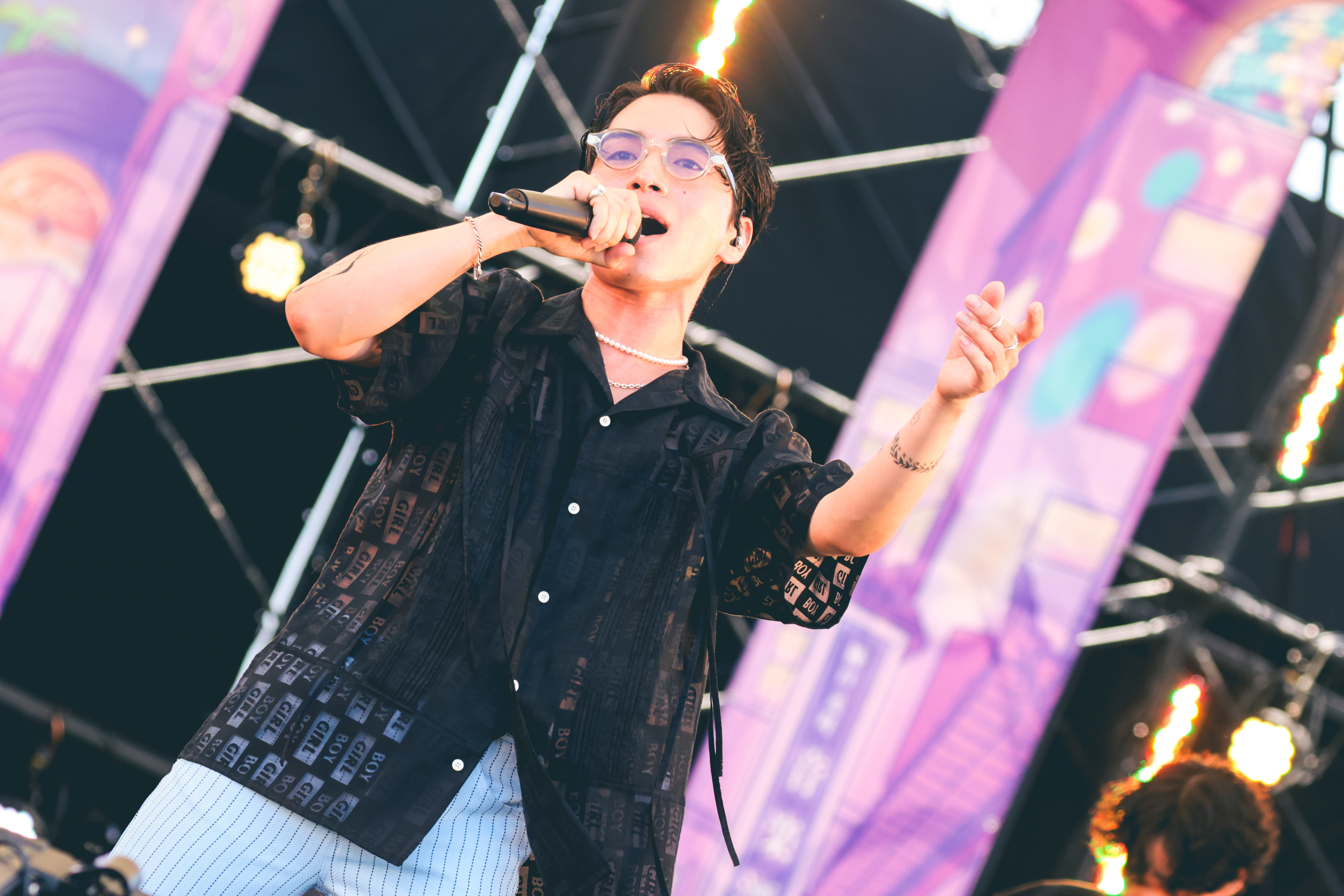 そしてバンドセットで登場した2番手のSIRUPの時点でもう会場はパンパンに。「Pool」にはじまり、「『メロクル』なのでメロウに」と4曲目「LOOP」ではイントロからざわめきが起こる展開に。そのまま「Slow Dance」でBIMが登場。日をまたいでの客演とあってすごくフロアも湧いてました。A.G.Oプロデュースの「Superpower」も畳み掛けて、披露されてハンズアップせずにはいられない流れから、会場がダンスフロアに変えてフィニッシュ。バンドがそこまで多くない日に、バンドセットで魅せるステージでしたね。