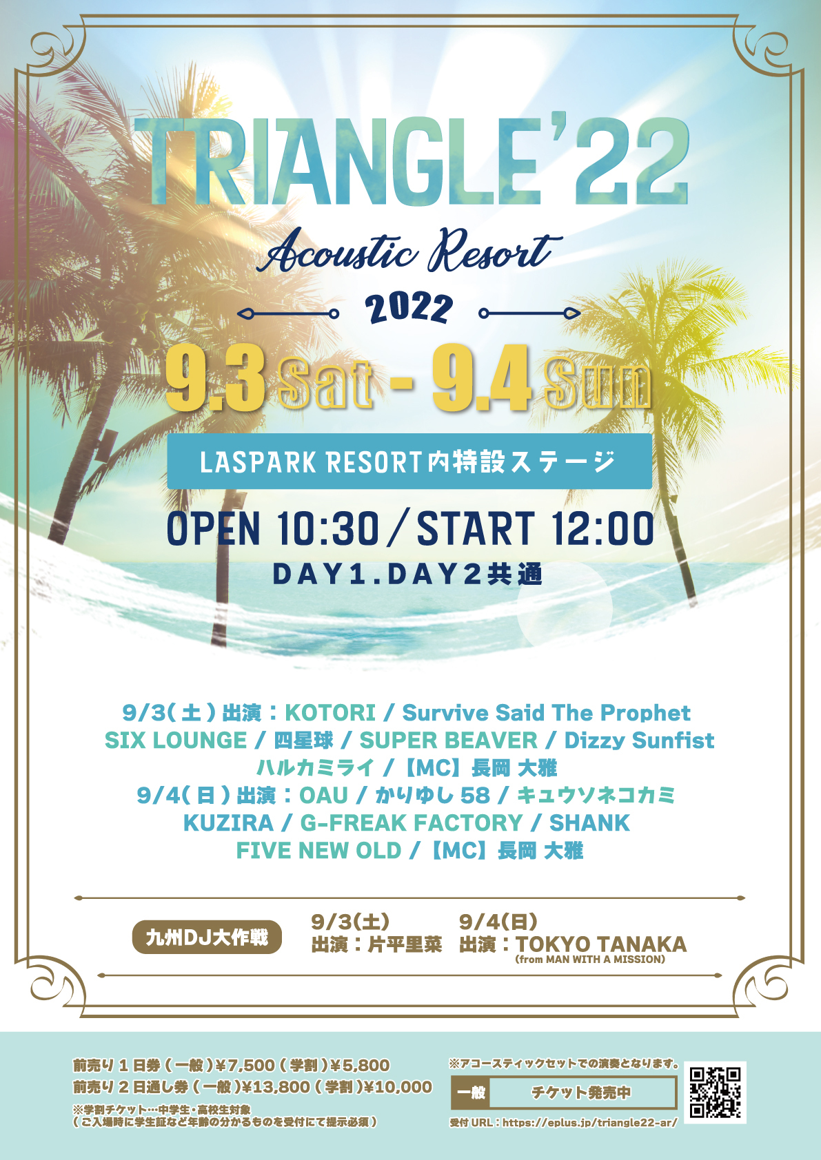 2022年9月3日(土)、9月4日(日)に開催される『TRIANGLE'22 Acoustic Resort』のコラボ企画『九州DJ大作戦』と出演者が発表された。