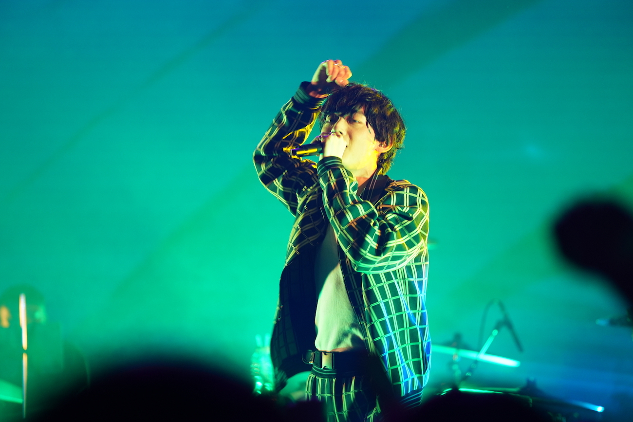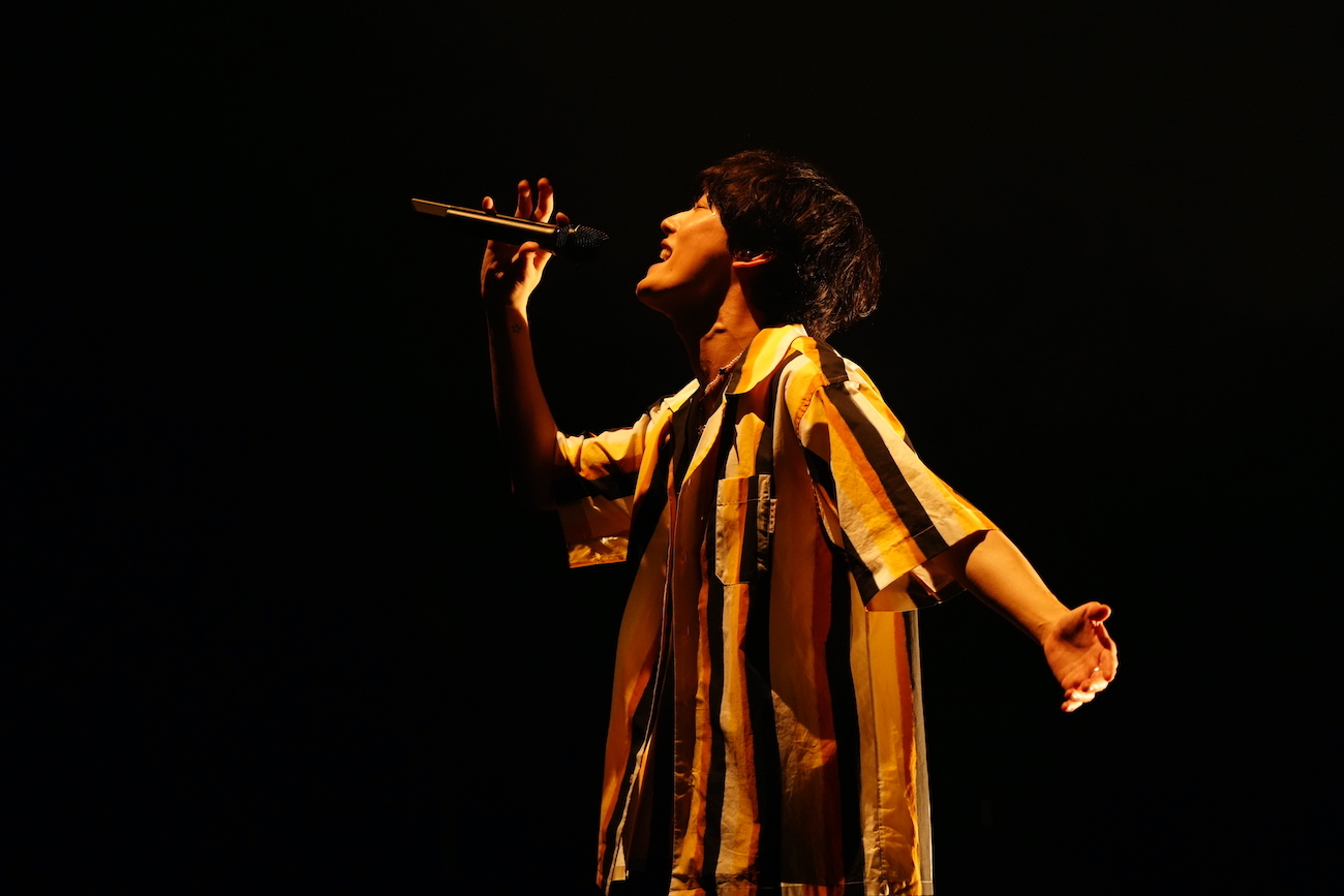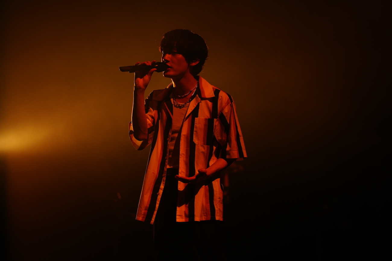 喜びを噛み締めるように話した後に届けられたのは、「デビューしてから初めて壁にぶち当たって、曲が書けなくなったときに、その思いをぶつけた」という「Blue」。薄灯りの中、ピンスポットを浴びながら、胸に湧き上がる悔しさを吐き出すように、その悔しさを前に進む力に変えていくように綴られた言葉達を、一際エモーショナルに届けていた。