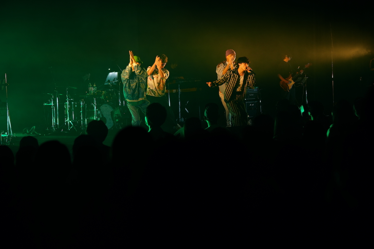 残すところあと1曲となった場面で、向井はアルバム『ANTIDOTE』に込めた思いについて、客席に語りかけた。それは、前述した会場がひとつになって盛り上がれるものを目指したということと、もうひとつ。ここ数年は、コロナ禍で感じる悔しさや憤り、やりきれなさを作品から切り離すことが難しく、そこに気持ちを引っ張られながら楽曲を制作することが多かったが、今回のアルバムは「みんなが未来を見れるような作品にしたかった」とのこと。そのために、たとえば「99'」で描いているような、数年前は当たり前だったけれど、「いまの世界では叩かれてしまうようなこと」──つまり現実では叶えることが難しいファンタジーも、「近い将来への希望になれば」と思い、あえて綴ったそうだ。