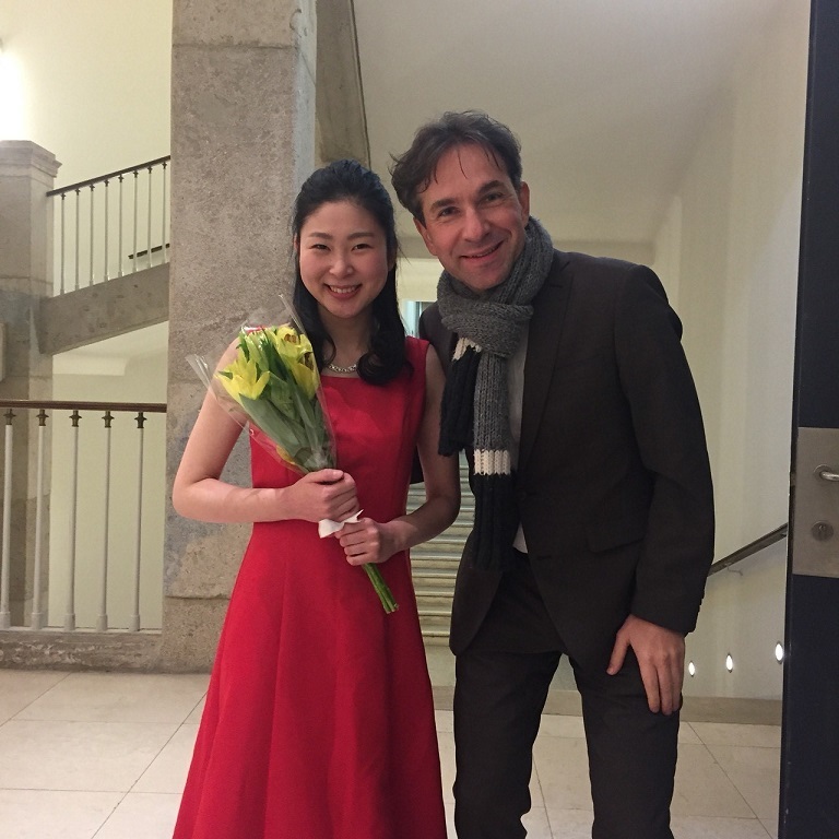 大学院修了試験演奏後、大好きなヒンターフーバー先生と。