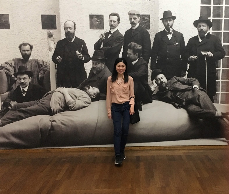 ウィーンのレオポルト美術館、分離派メンバーパネルの前で