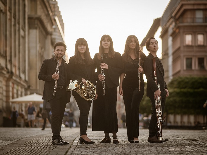 ベルリンを拠点に活躍する木管五重奏のグループ=パシフィック・クインテット。2017年に札幌で出会った5人、アリヤ・ヴォドヴォゾワ(フルート・ロシア)、フェルナンド・マルティネス(オーボエ・ホンジュラス)、リアーナ・リスマン(クラリネット・ドイツ)、ヘリ・ユー(ホルン・韓国)、古谷拳一(ファゴット・日本)により結成された本グループは、2022年7月に東京(16日(土))・京都(18日(月祝))で初来日公演を予定している。