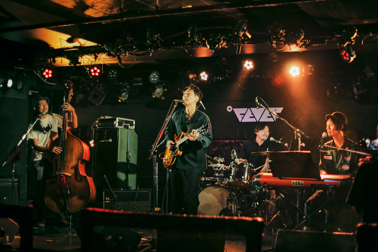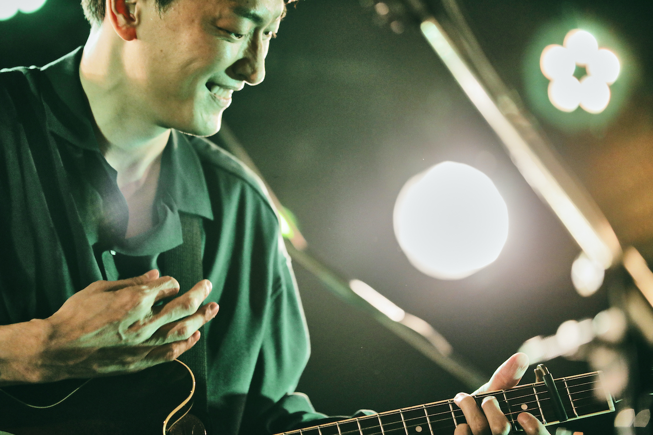 最初にステージに登場したのは、シンガーソングライター・YOSHITO。ウッドベース、ドラムス、キーボードを従えて自身はギターを担当するバンド編成でのライブを披露した。まず驚かされたのは、バンドとアレンジの完成度の高さ。1曲目の「Night Time Surfing」では、ソウル、ポップスをベースにゆったりしたメロディからギターソロパートでは一転ジャズに移行するなど、生きたグルーヴが心地良かった。次に目を見張ったのは、日本語の乗せ方だ。2曲目「なんで」では、“なんで”という語感から発展させてメロディを紡いでいくような実験的な試みが見られるなど、言葉一つひとつの発音そのものが音楽として成立していた。おそらくそこはある程度意識的にトライしていないとできないことなのではないかと思う。