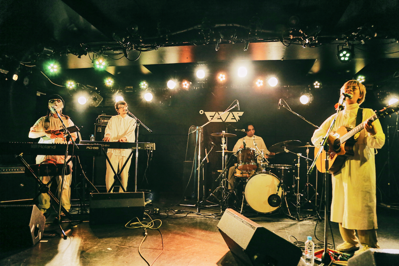 弾き語りをしながら即興で挨拶の言葉を乗せていく、“ノープランMC”に思わず山口竜生(Syn)が「怖かったー(笑)」と本音を漏らす場面も。何が飛び出すかわからないこの感じ、ようやくライブの現場が戻ってきたなと感じられる。ここからは7月に発売予定のEPに収録される新曲を2曲続けて披露した。まずは浮遊感のあるメロディに思わず一緒に口ずさみたくなってしまう「ルーズ」。そして「意外と静かな街」はシリアスなメロディラインに魅きつけられる。