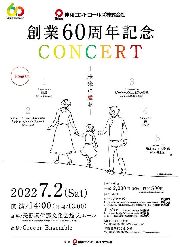 チェリストの三宅依子がプロデュースする「Crecer Ensemble(クレセールアンサンブル)」が2022年7月2日(土)、長野県伊那文化会館(長野県伊那市)にて、最先端のものづくり技術の開発に努める「伸和コントロールズ株式会社」(本社:神奈川県川崎市)の創業60周年を記念するコンサートに出演する。会社の節目を盛り上げるステージでは、ラフマニノフなどのクラシック曲のほか、英国の音楽グループ「ザ・ビートルズ」など幅広い楽曲を演奏。三宅と、ギタリストの鈴木大介、伸和コントロールズの経営企画本部の向山優樹氏に意気込みを聞いた。