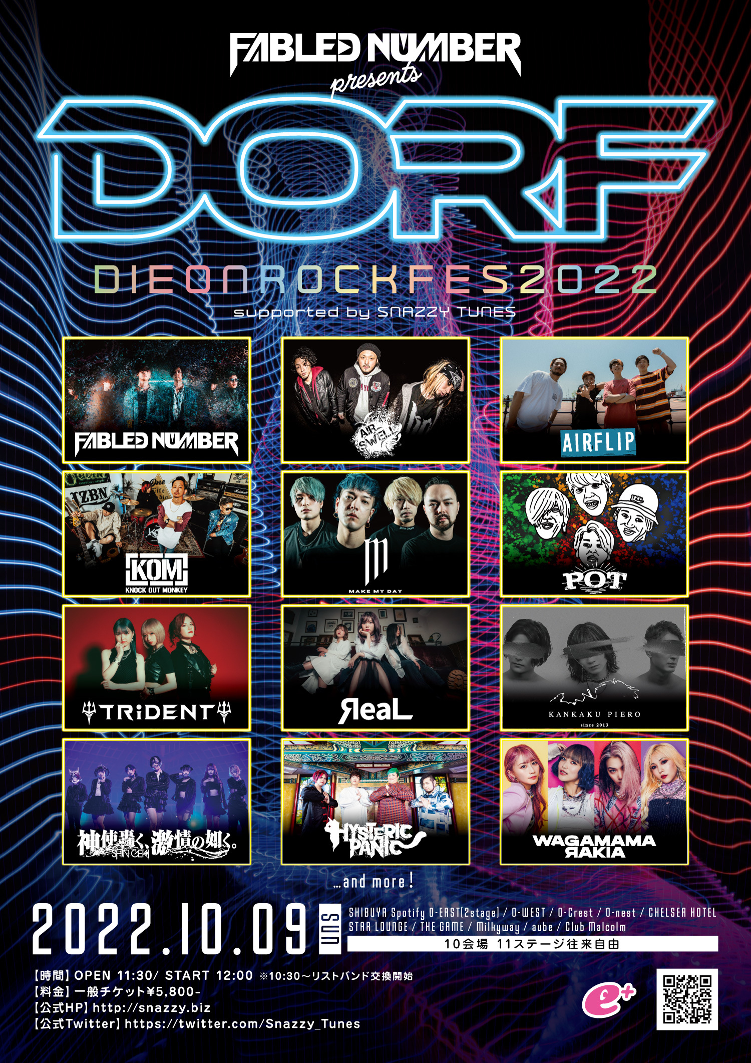 合わせて第1弾出演者も発表され、AIR SWELL / AIRFLIP / KNOCK OUT MONKEY / MAKE MY DAY / POT / TRiDENT / ЯeaL / 感覚ピエロ / 神使轟く、激情の如く。/ ヒステリックパニック / 我儘ラキア、の11組の出演が解禁された。開催会場拡大については、先日の先行チケット受付の応募数が想定を遥かに上回る数字だったため、当選予定数を増やし、会場を拡大するという決断になったそうだ。FABLED NUMBERはこのイベントに関連して名古屋、大阪でもイベントを開催する事を発表しており、大阪は8月12日(金)にアメリカ村DROPにてXmas Eileenとツーマン、名古屋は9月30日(金)に名古屋CLUBQUATTROにてBACK LIFTともう1バンド(後日解禁)にてスリーマンを開催する。