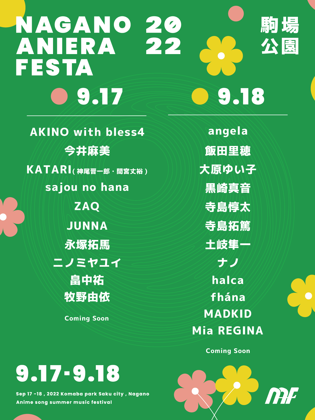 2022年9月17-18日に開催されるアニソン野外フェス『ナガノアニエラフェスタ2022』のオフィシャル二次先行が開始となった。7月10日(日)23時59分までのイープラスにて独占先行発売中だ。