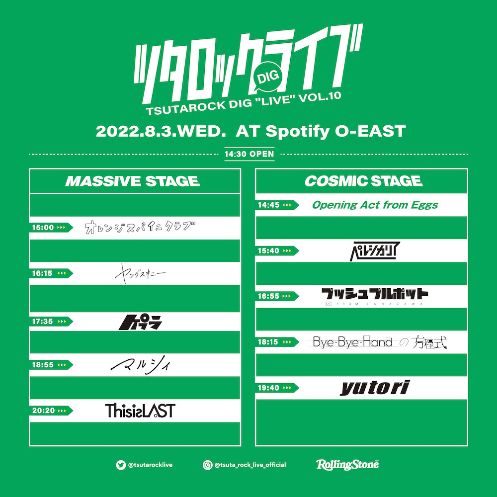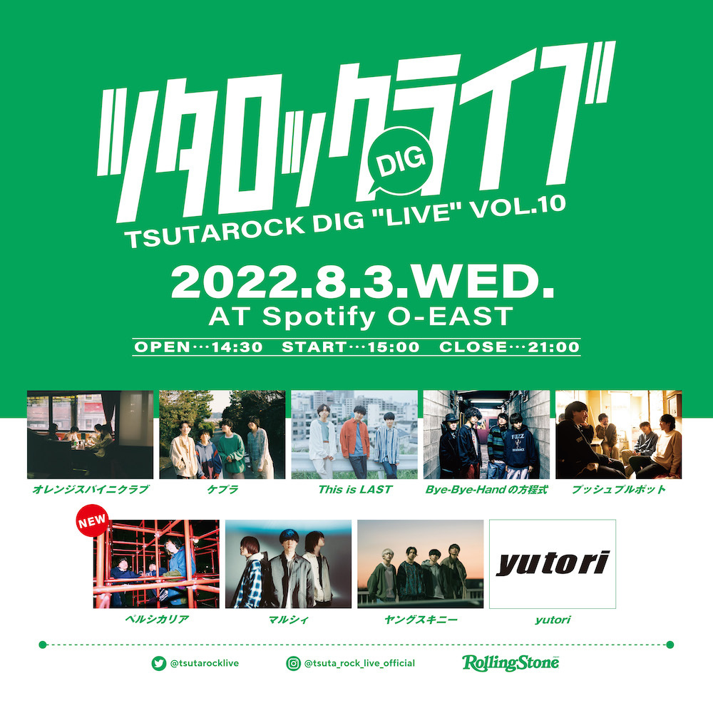 2022年8月3日(水)にSpotify O-EASTにて開催される『ツタロックDIG LIVE Vol.10』の最終出演アーティストとタイムテーブルが発表された。