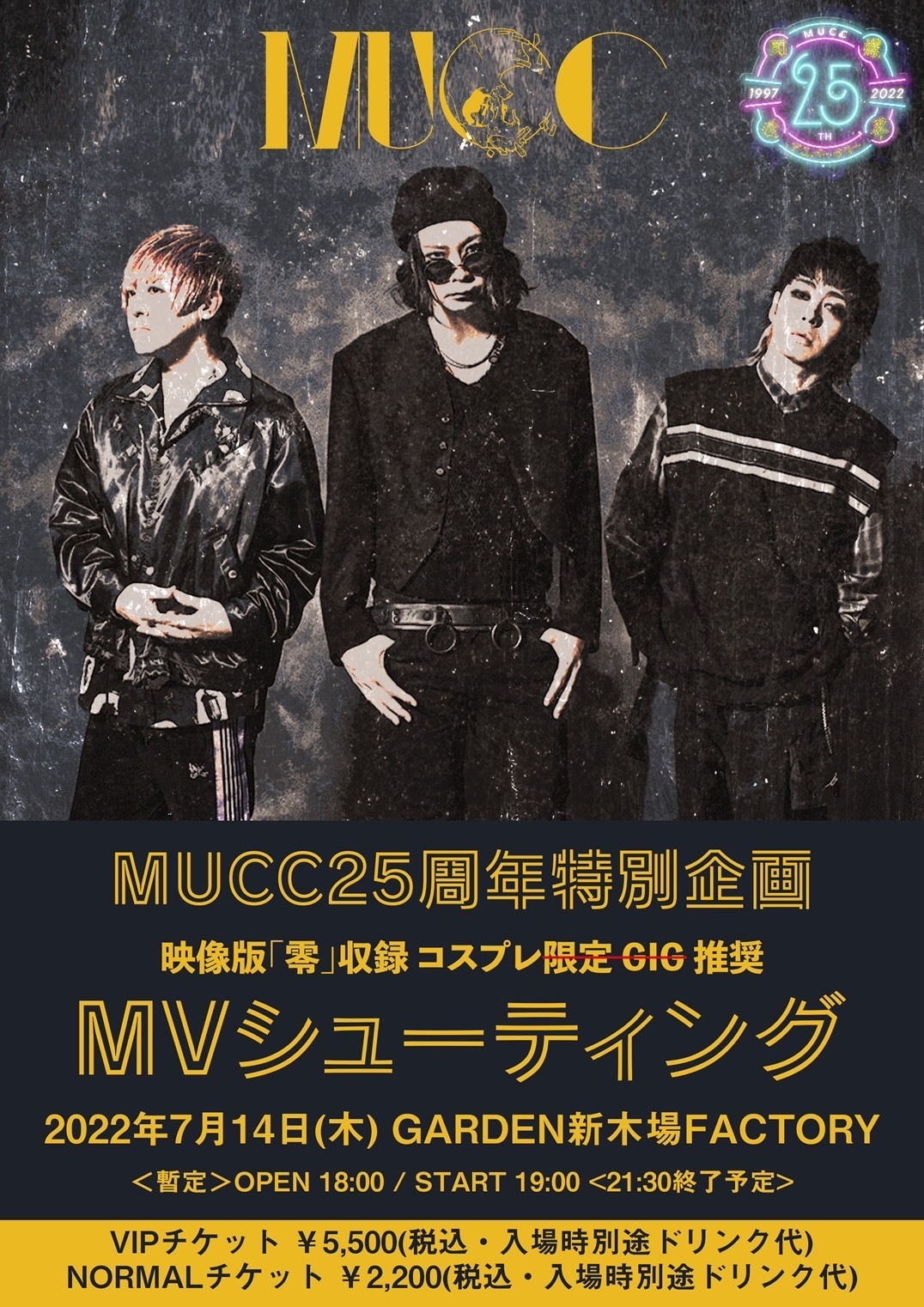 MUCCが、ニューアルバム『新世界』の収録曲である「零」のミュージックビデオのシューティングイベントを7月14日にGARDEN 新木場 FACTORYで開催することを発表した。