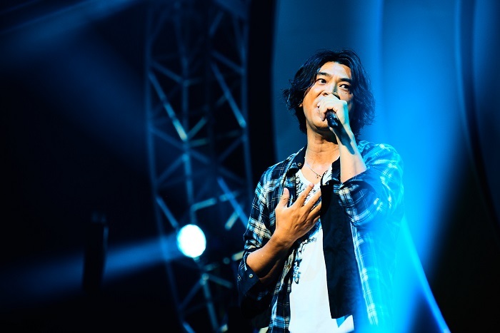 続いて、本ライブの発案者でもある許斐先⽣が登場。「暑い夏をもっとアツくしましょう︕」と煽り、「Adventure Hero」を熱唱。MC ではコロナ禍でも次元やジャンルを超えて作品を応援してくれたファンに感謝を伝え、「最⾼の夢の祭典を⾏なっていきたい」と公演への意気込みを述べた。