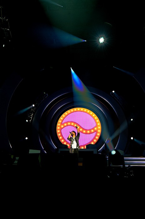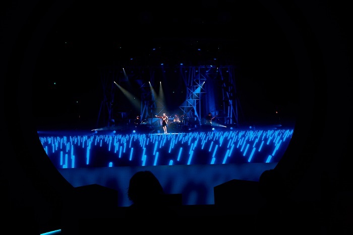 テニスボールを模した丸型のメインモニターにテニプリ☆ソニックのテーマソングを使⽤したOP 映像が映し出されると、客席は総⽴ちに。KIMERUによるアニメ『テニスの王⼦様』第⼀期ED テーマ「You got game?」でライブがスタートし、会場は⼀気に盛り上がる。