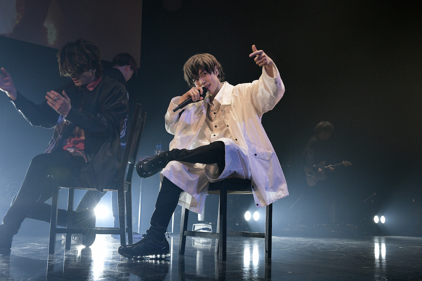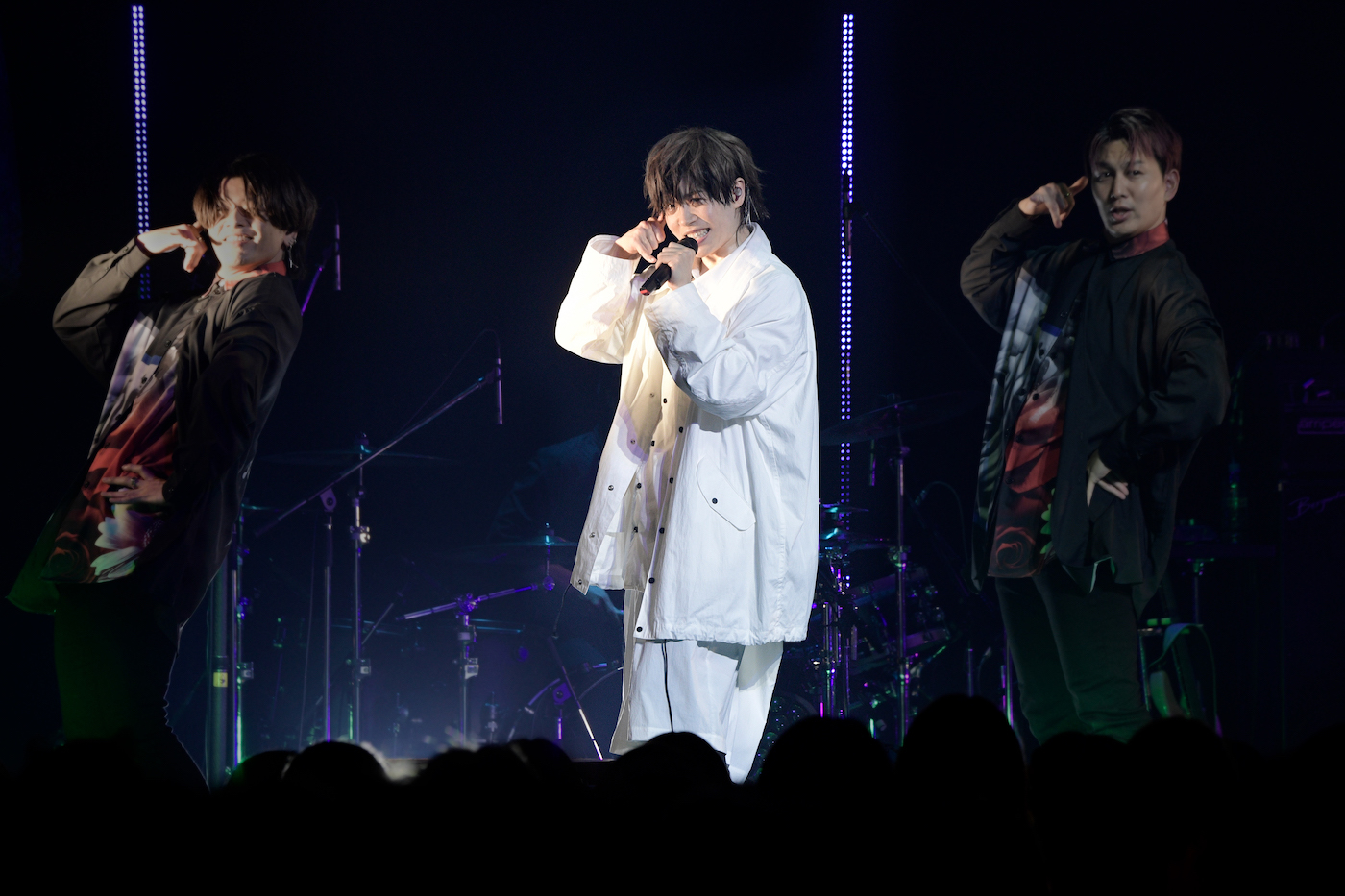 しかも、ここからは男性ダンサー2人を従えてのダイナミックな見せ方が映えた「迷図」や、女性ダンサーを迎えてのオトナっぽいステージングが粋だった「Remelt」、実は『Steal your heart』の中で唯一のバラードである美旋律曲「Mary」、一転してのアッパーなトーンが場内を沸かせた「RED HOPE」、アルバム冒頭を飾っていただけあってそもそも楽曲としての存在感が強い「チェック・ナイト」と、新譜を中心にした歌・演出の両面で凝った曲たちが目白押し状態で披露されていくことにもなり、オーディエンス側は終始それに圧倒されることになった。