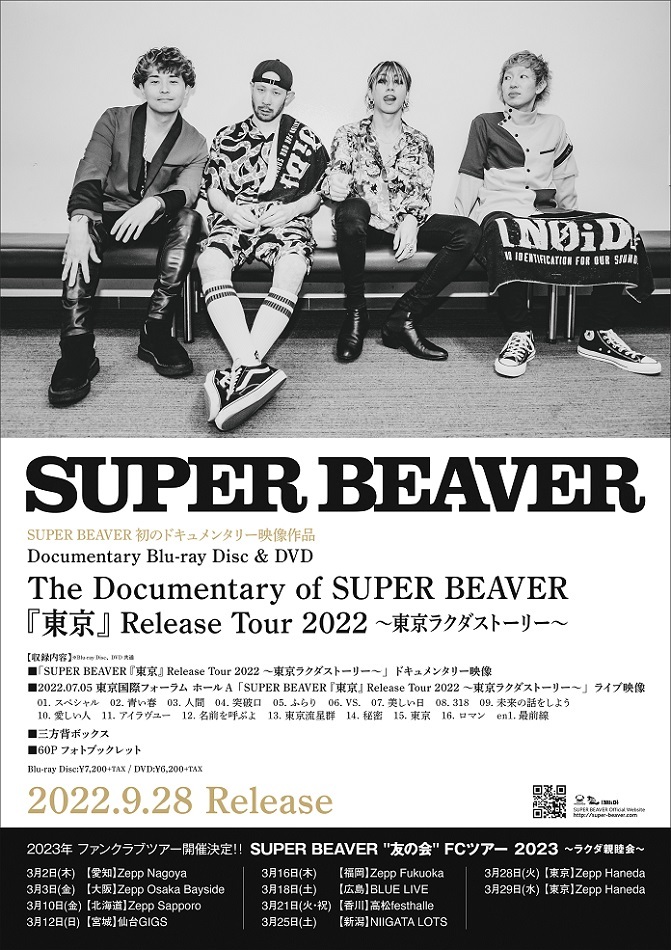 SUPER BEAVERが、3月から開催した全21公演の全国ホールツアーに密着したドキュメンタリー映像作品「The Documentary of SUPER BEAVER 『東京』 ReleaseTour 2022 ~東京ラクダストーリー~」をBlu-ray DiscとDVDにて9月28日(水)にリリースすることが決定した。