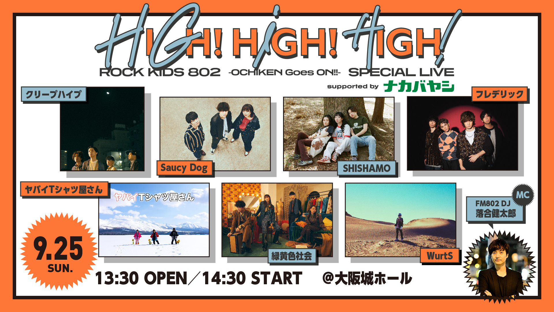 9月25日(日)大阪城ホールにて、インドアロックイベント『ROCK KIDS 802-OCHIKEN Goes ON!!-SPECIAL LIVE HIGH!HIGH!HIGH! supported by ナカバヤシ』が開催される。