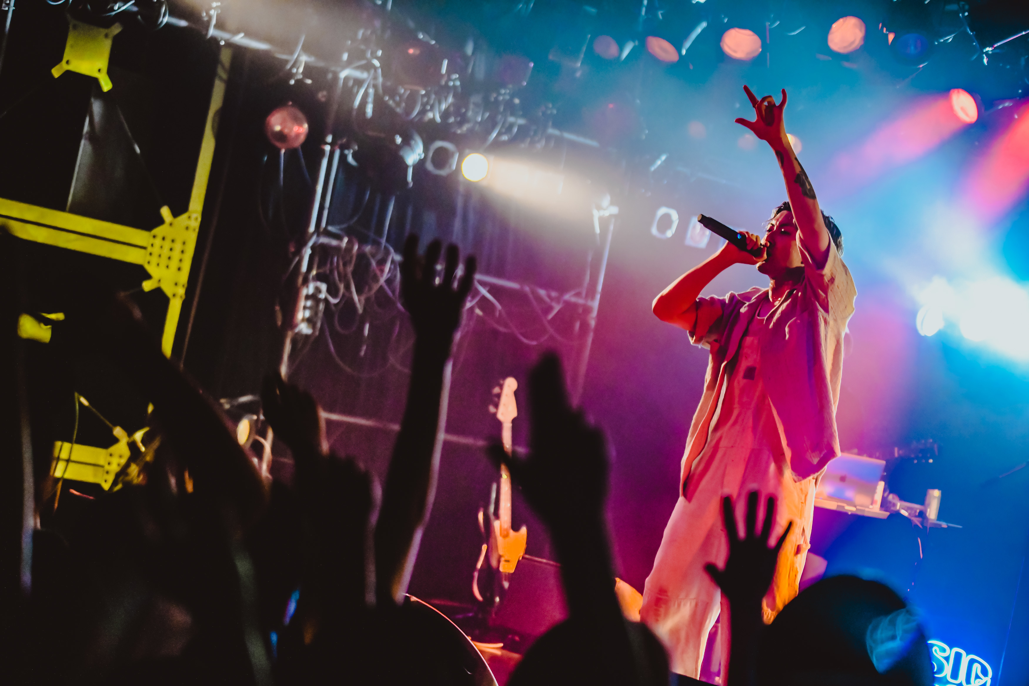「俺は今日ここにいる全員に愛を持って接しようと思います。そんぐらい音楽は最高だから」と語り、丁寧に歌い上げた「拝啓」、会場が手をあげひとつになった「crayon」、そしてBASIをフューチャリングした「相棒」では、Broth Worksへのリスペクトと愛情が爆発する。存在を示すかのように「BASIC MUSIC」のネオンの前に近づいた空音の姿が印象的だった。魂の込められた彼の歌声と、ニューリーの演奏を確かに支える4人のチームワーク。ドラマティックな照明の演出が、さらに楽曲を引き立て、コーナーの最後にはニューリーと肩を組んでピース。とてもあたたかく平和な空間だった。
