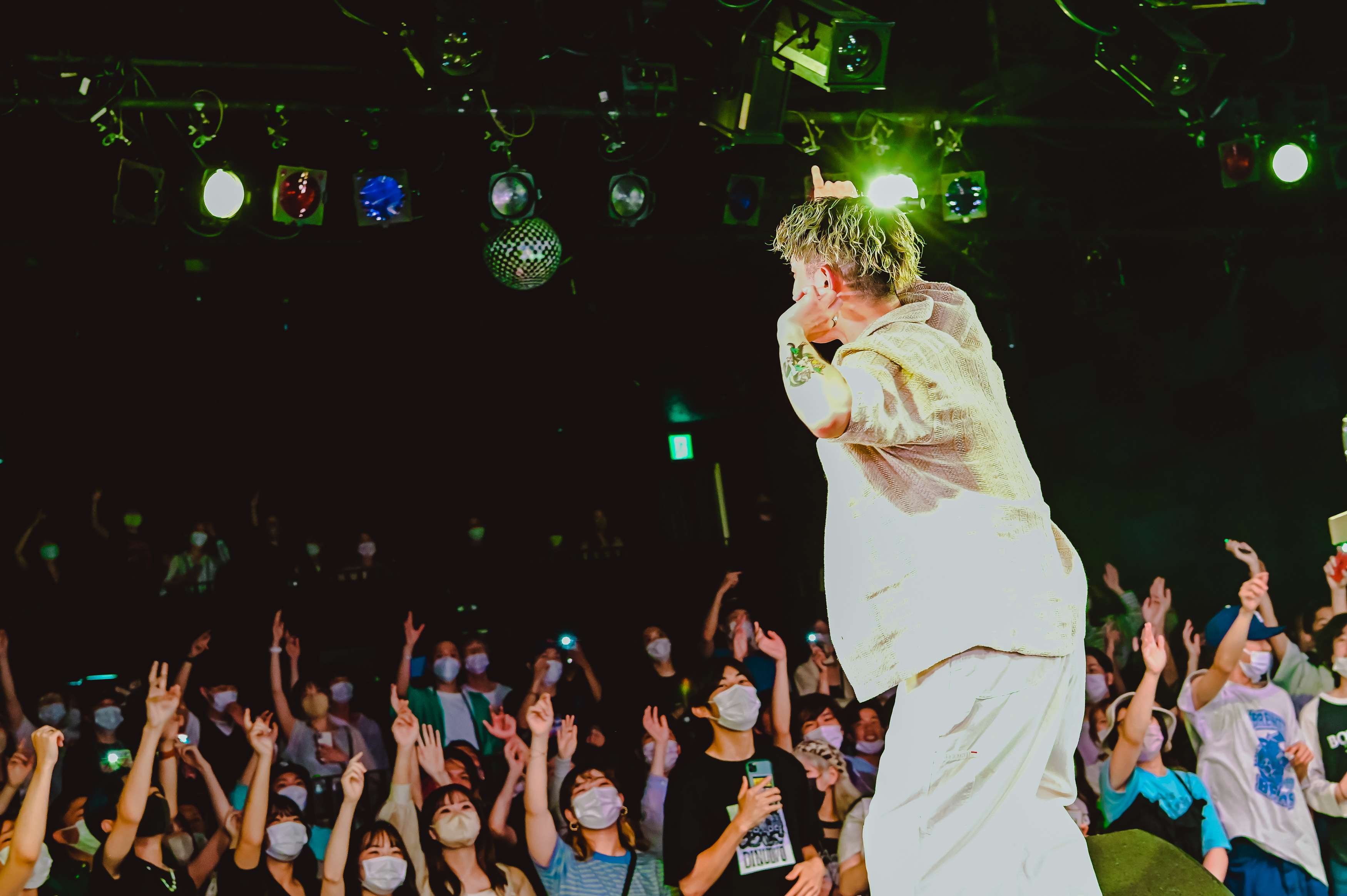 「僕らのモットーは自由。自由の中の不自由を乗り越えて、皆ここに辿り着いてくれていると思うんで、だからこそ今日は自由に遊びたいと思います。行こう!」と、ニューリーとのフリースタイルから、ライブは終盤戦へ。軽快かつ熱量を込めてライムしていく。「次のアルバム、マジで俺がジャンルになるから、今年は絶対見逃すことなく追ってください、このチームを」と、次回作とチームのクリエイティブへの自信を滲ませた。