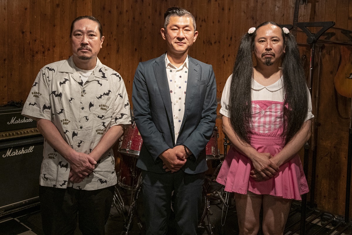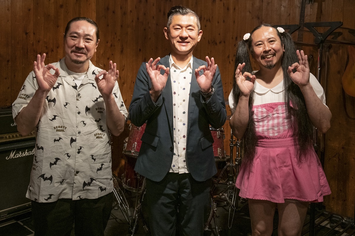 ロフトグループの音楽ライブハウス4店舗(新宿LOFT、下北沢SHELTER、渋谷LOFT HEAVEN、下北沢FLOWERS LOFT)が今春、16日間にわたり開催した2マンシリーズイベント『ATTACK FROM LIVEHOUSE』。コロナ禍で大打撃を受けるライブハウスの現状でも、ライブハウスからもっと音楽を発信していきたいという強い想いを抱え、世代やジャンルを超えたバラエティーに溢れるアーティスト達の組み合わせを実現した。その出演陣のなかでもひときわ話題になったのが、笑い飯と好き好きロンちゃんの共演だ。イベント当日、笑い飯は長尺の漫才を、ロンちゃんは音楽ライブを披露、さらにセッションも行ない異色の共演を果たした両者に改めて集まってもらい、当日の感想から双方の印象、今後の野望までを語り合ってもらった。
