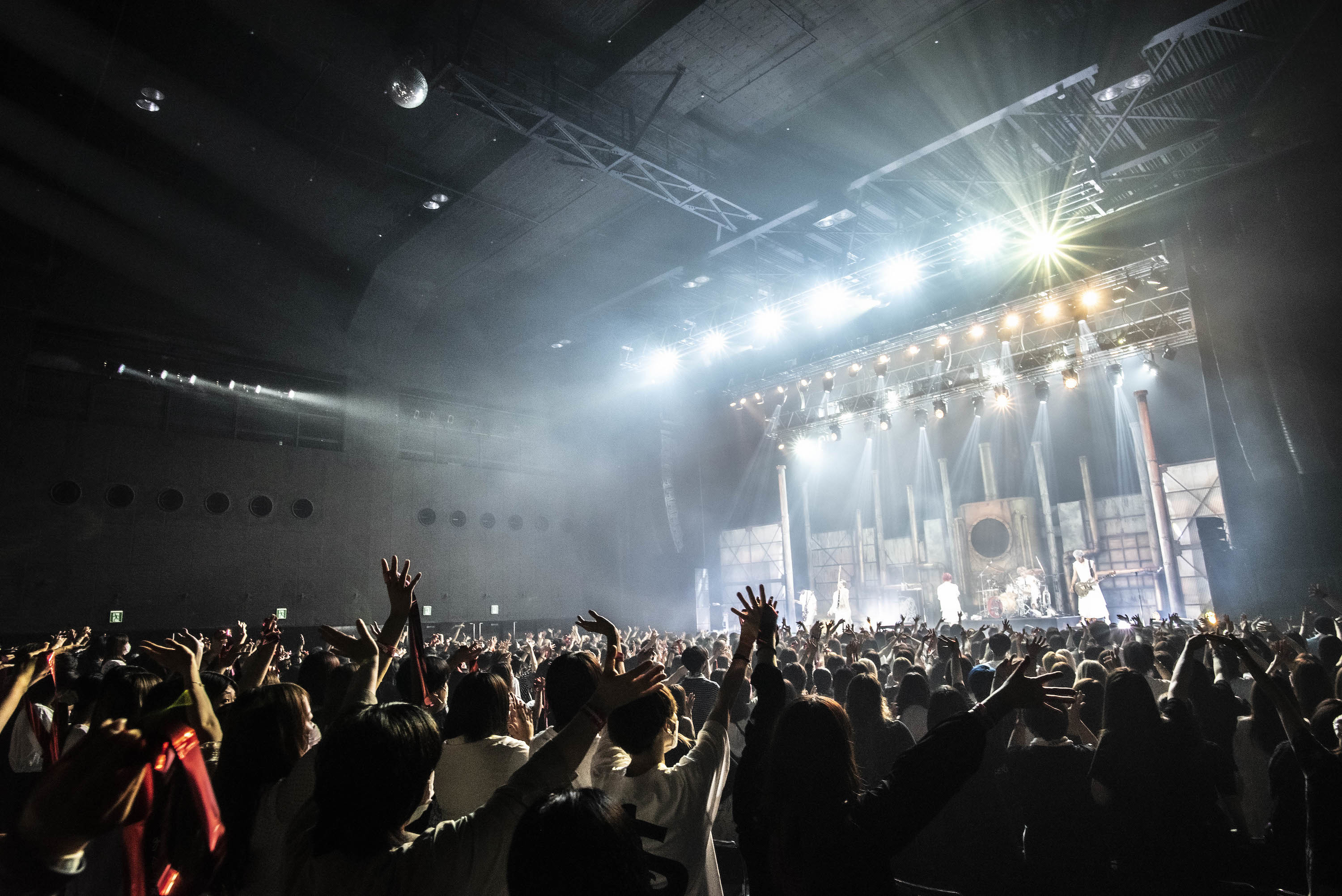 毎年七夕はZepp Tokyoでライブを行っていたvistlipだが、2022年始にZepp Tokyoが閉館したため、今年は初のZepp Divercityに河岸を変えての開催となった。Zepp Divercityの長方形のステージ上には、インダストリアルな雰囲気にパイプが入り組んだステージセット。白い衣装に身を包んだメンバー5人がステージに現れると、会場を独特の雰囲気に染めていく。