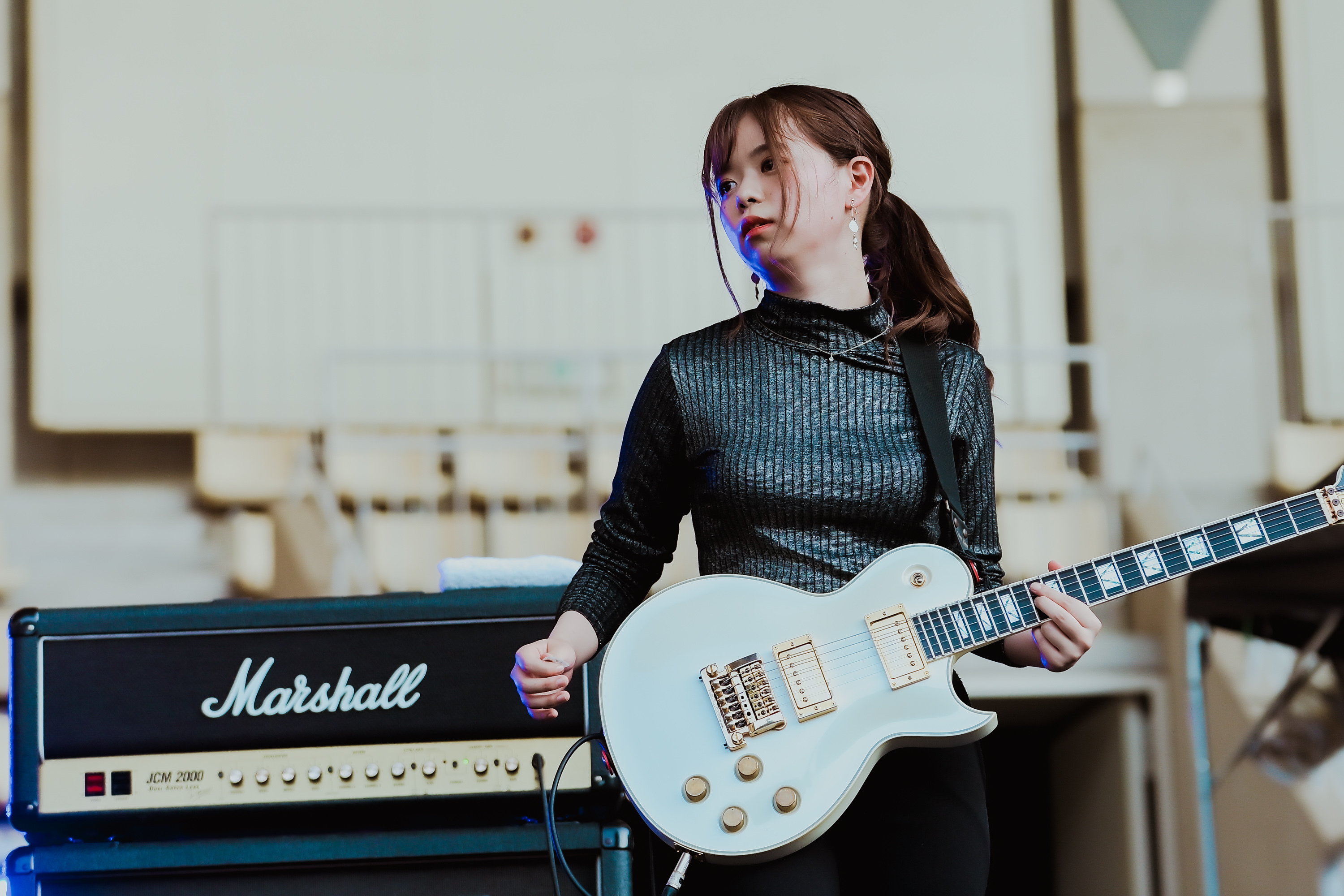 「今日気になったバンドがいたら、次はライブハウスで会いましょう。この日の続きをやりましょうね」と語ったMCの樋口。最後にコールしたのは、全8組の大トリを担うステレオガールだ。「最後まで残ってくれてありがとう」とあいさつした毛利安寿(Vo)は、そのクールな面持ちとは打って変わり、歌い始めるや鋭い眼光で観客をロックオンしていく。