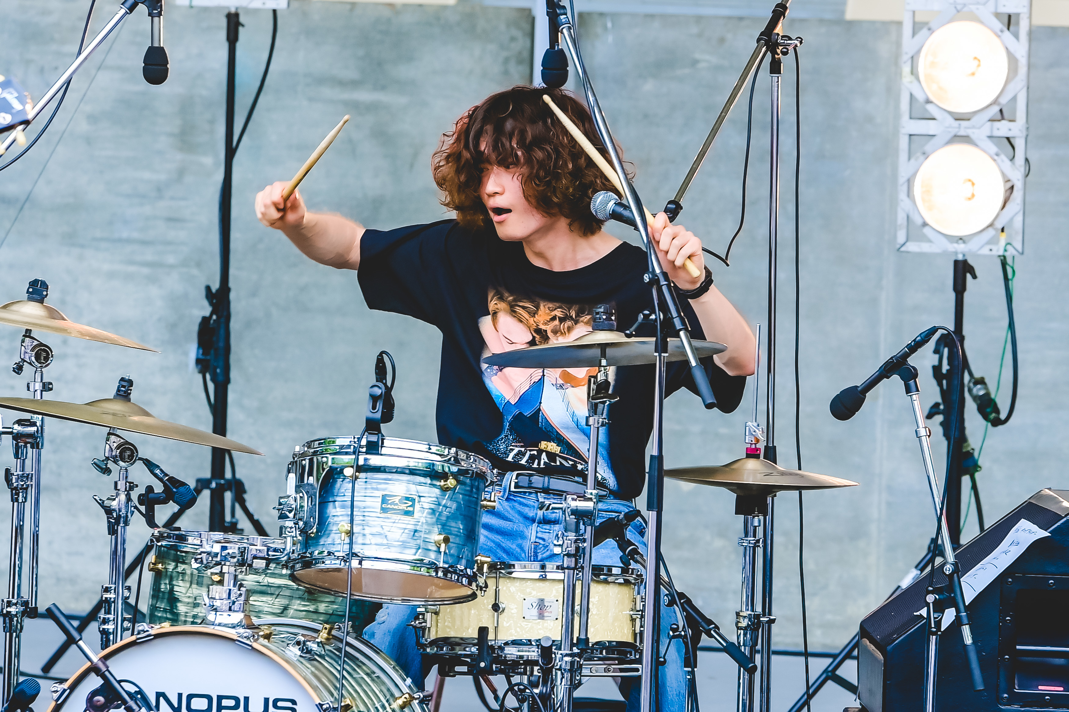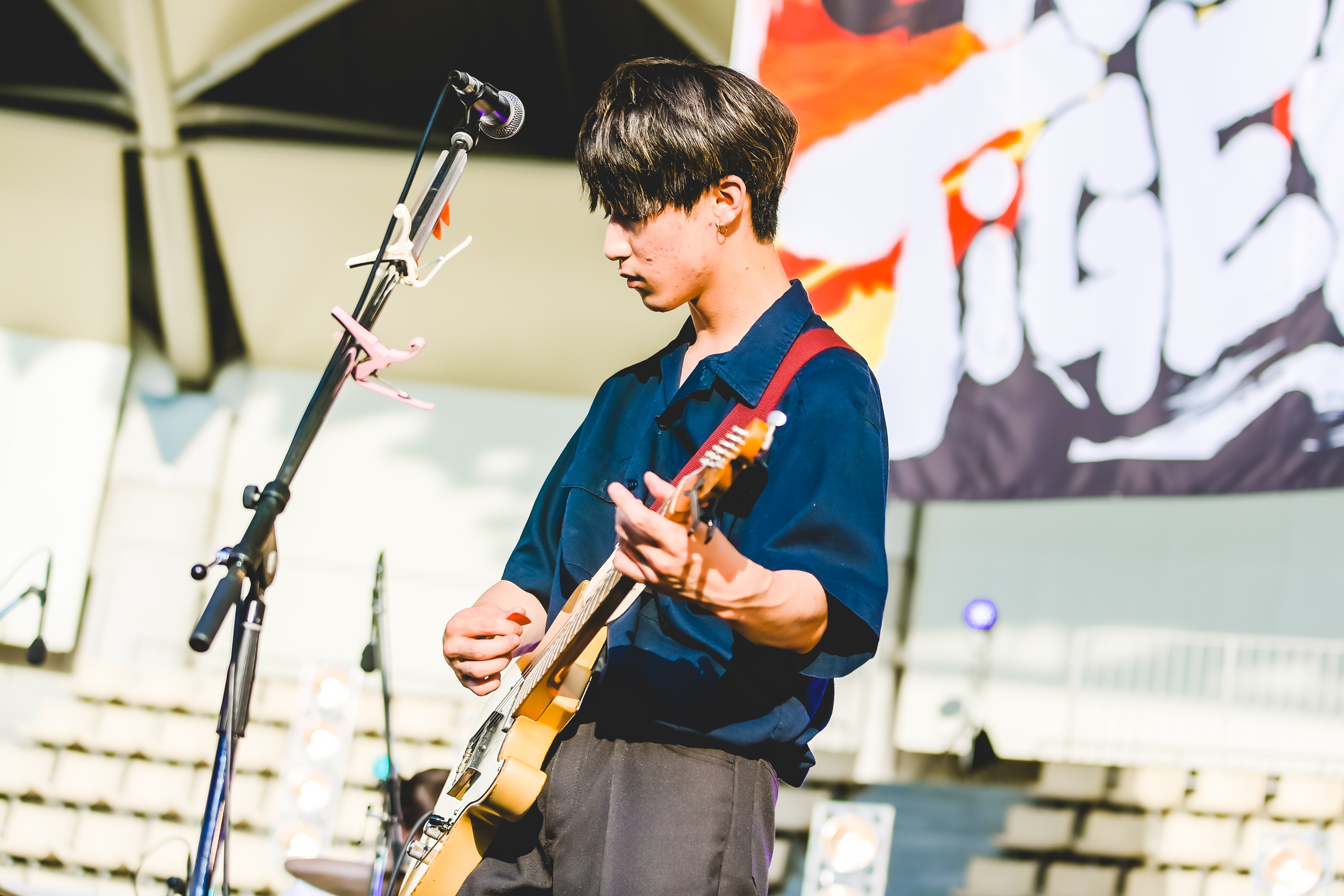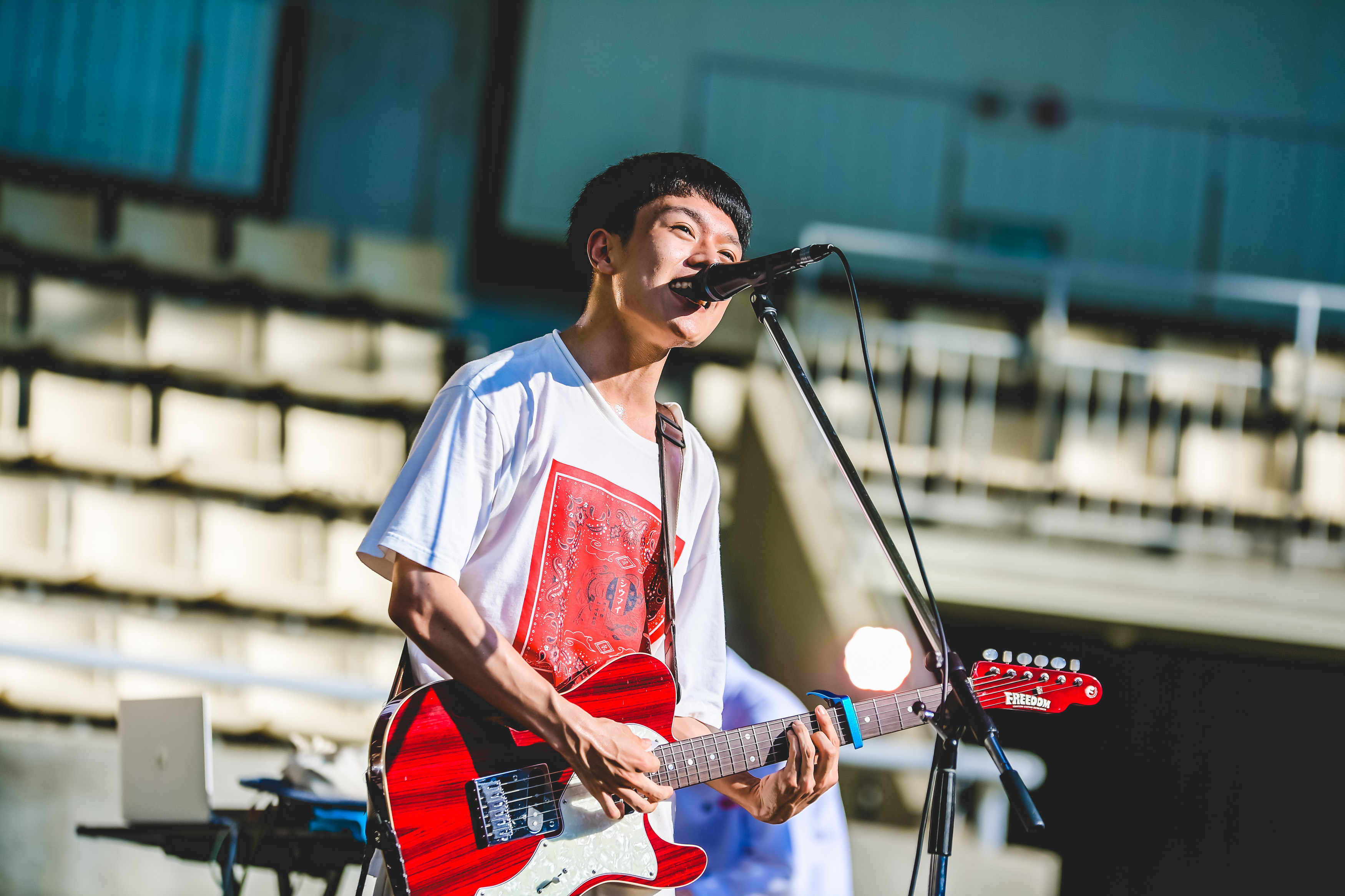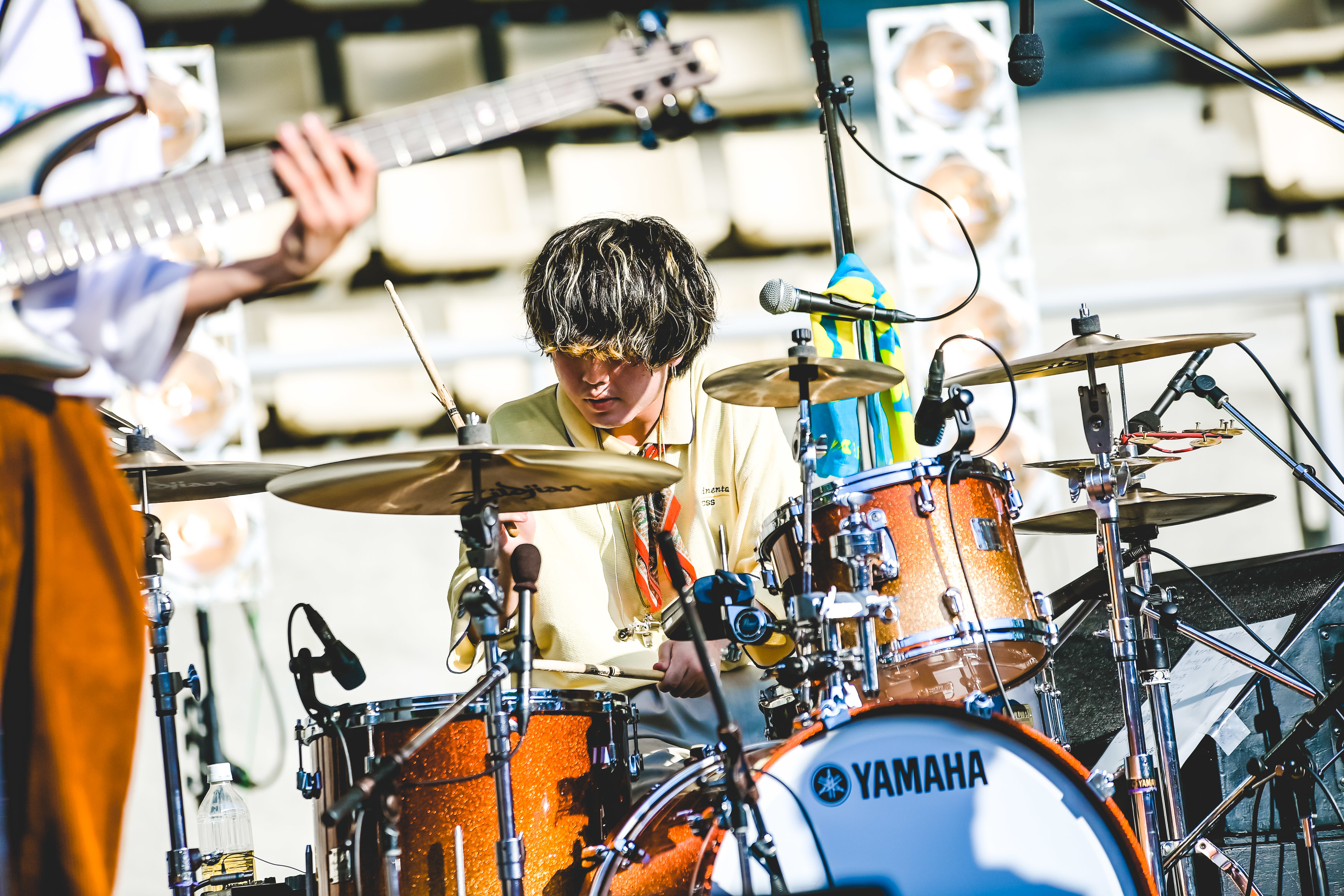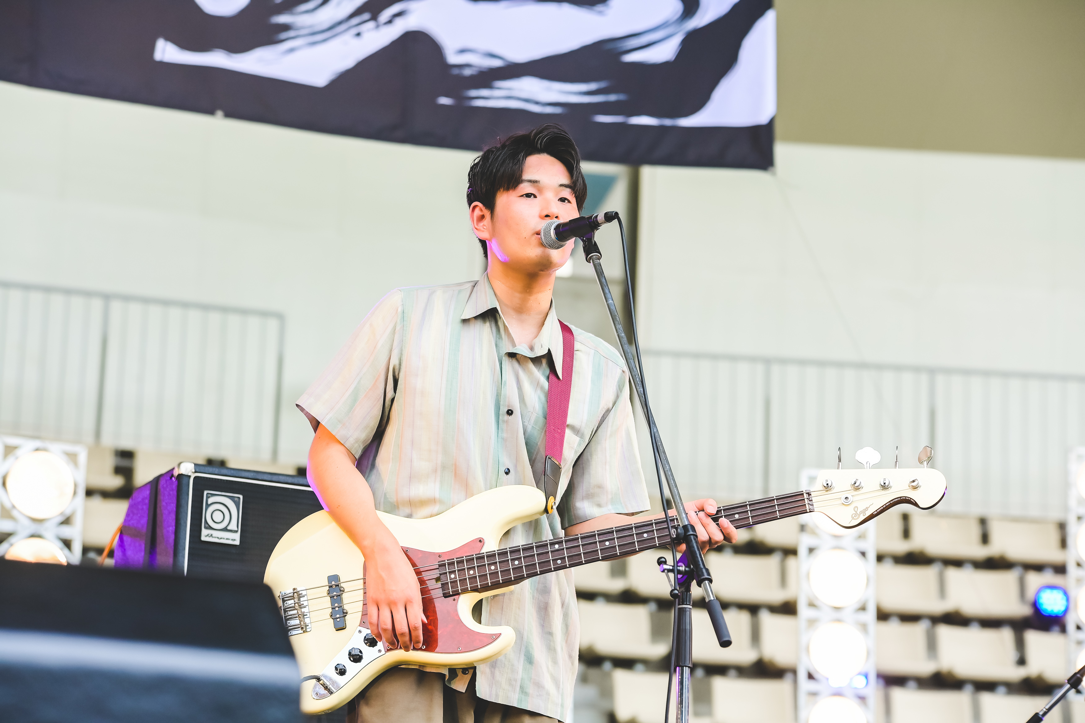 「ハイライト」はギターのカッティングからして、より音に抜けがあり、拓けていく感触もワクワクする。東京のバンドであり、2週間前から大阪の天気図を気にしていたり、芝生エリアでむっちゃ踊る観客たちに「最高です!」と言ったり、とても愛嬌があるのも音とのギャップで好印象だった。