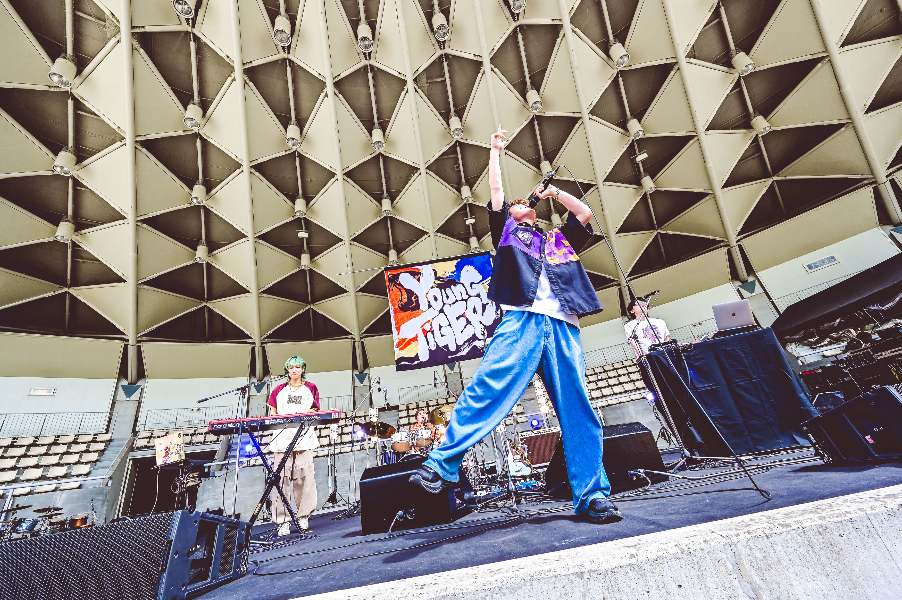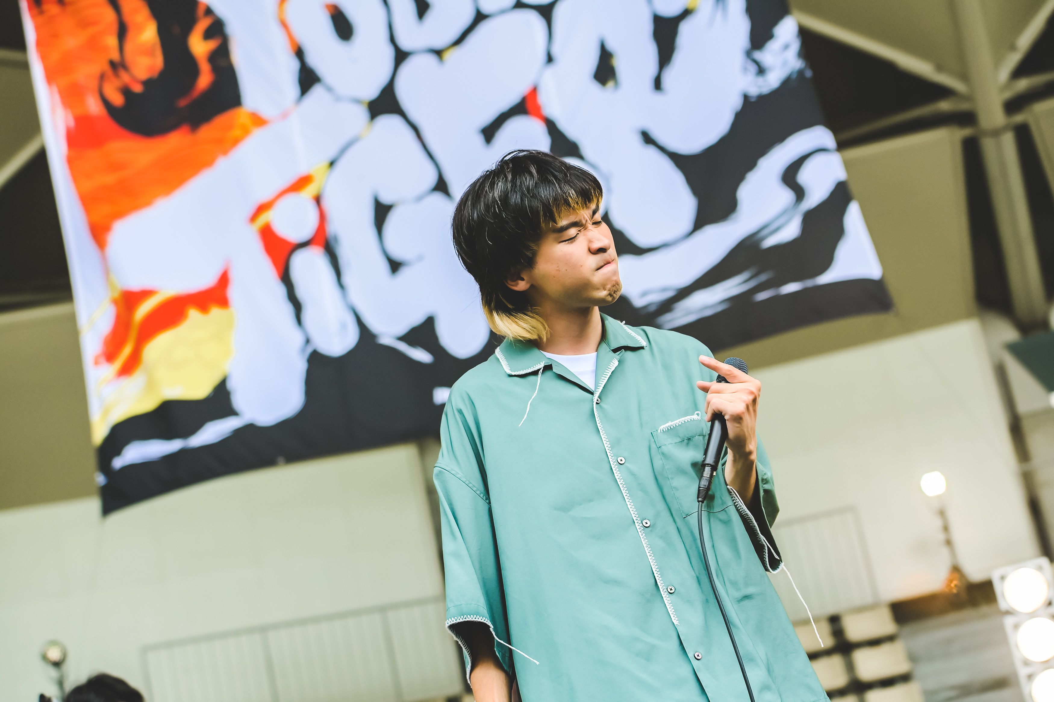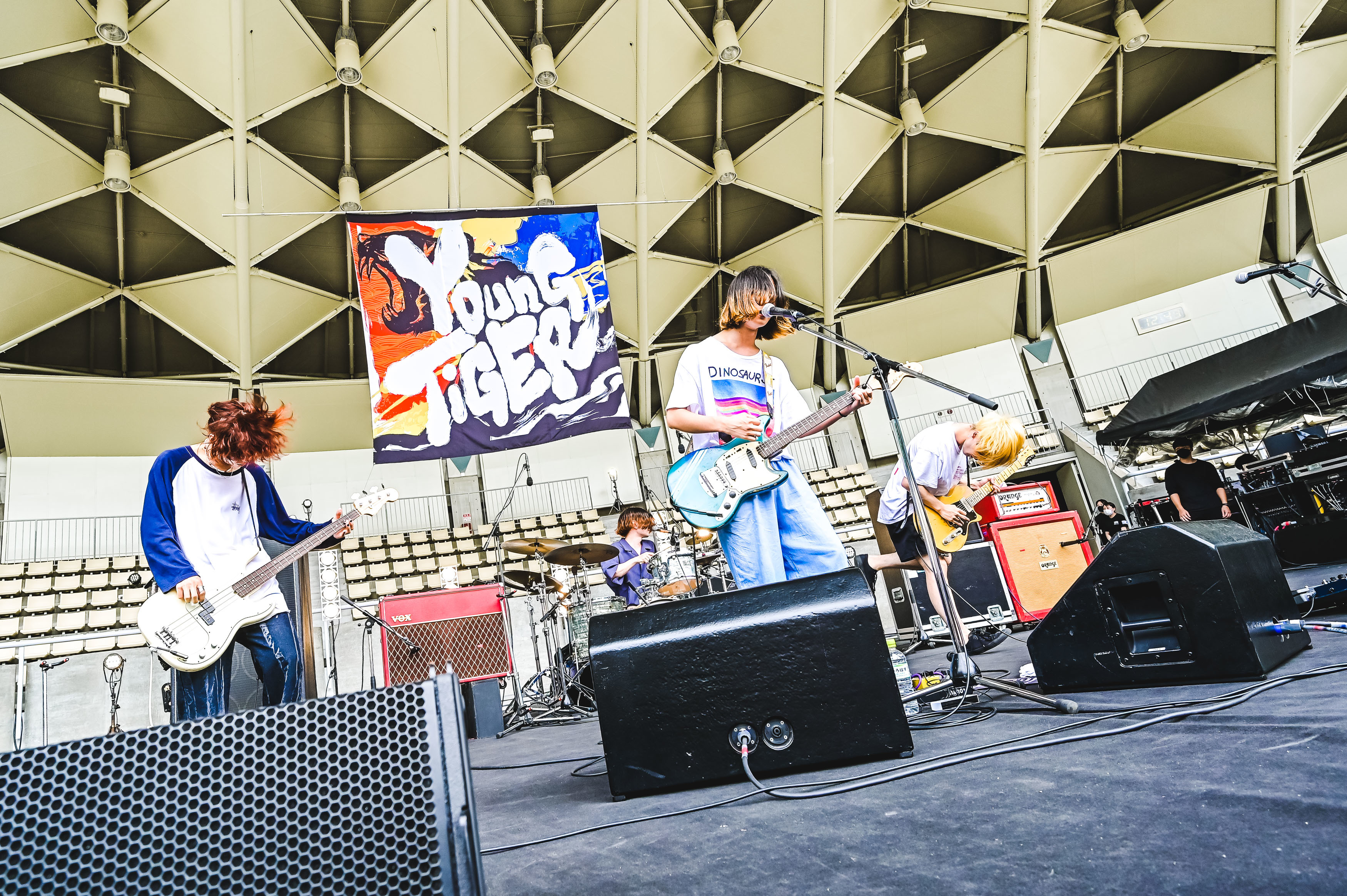 ステージ後方に「YounGTiGER」とデザインされた大きなバッグドロップが掲げられ、ザ・タイガースの主演映画「世界はボクらを待っている」のサントラが会場BGMとして流れている。観客たちは、開場中や転換中には出演バンドの物販を手に取ったり、飲食出店されたDOCO RICEのタコライスを食べたりと自由に満喫していた。11時30分、MCのFM802 DJ・樋口大喜の挨拶によりスタート。