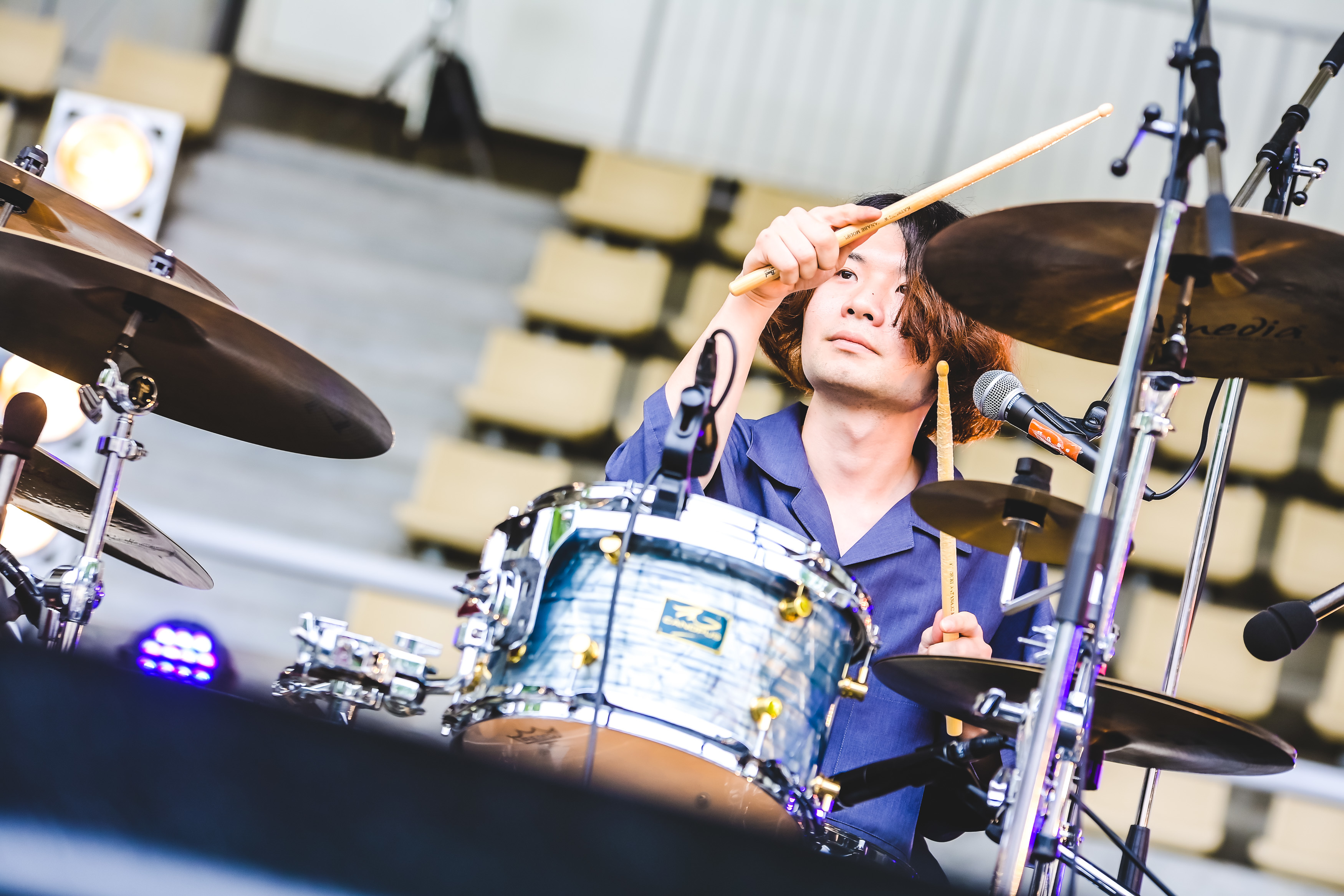 「来年も出たいです! まだ終わってないですけど(笑)」と、メンバーもこの時間を心底楽しんでいるようで、特大のアンセム「あばよ大泥棒」ではその歌世界が目に浮かぶような見事なストーリーテリングで魅了。怒涛のドラムソロであおる「夜間飛行」から強靭なステージングでの「夜間飛行少年」へと続き、クライマックスの頂点は更新するばかりだ。